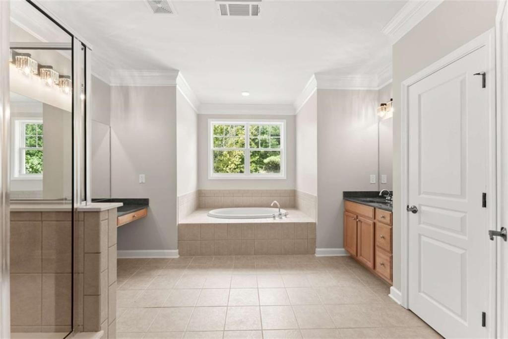 - Bookcases, Crown Molding, Pull Down Attic Stairs, Double Vanity, Entrance Foyer, High Ceilings, His and Hers Closets, Tray Ceiling(s), Walk-In Closet(s), Dual Pane Window(s), Attic, Family Room, Laundry Facility, Other Room(s)