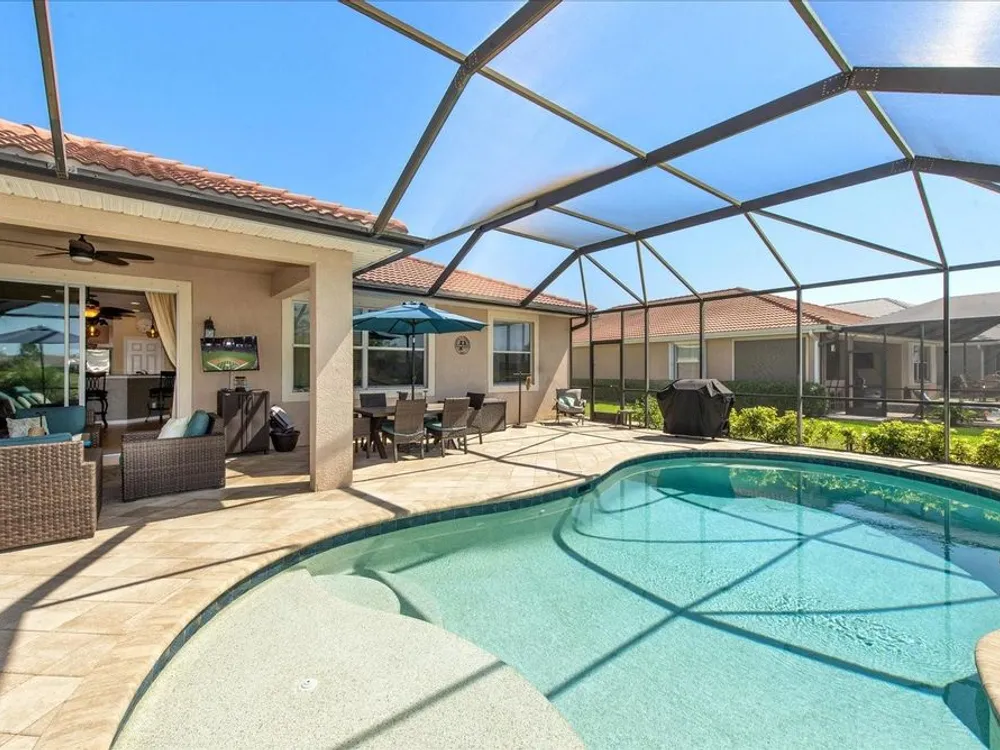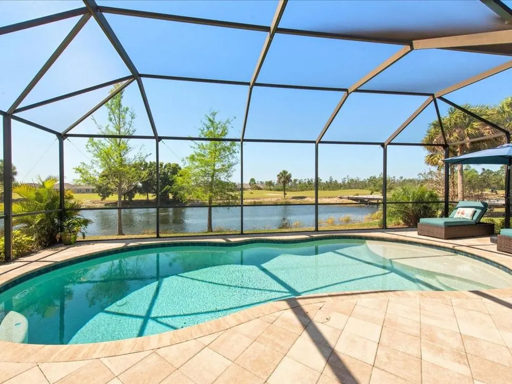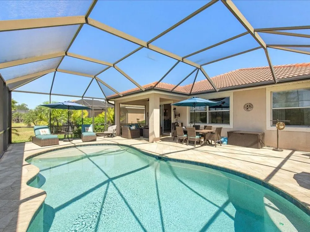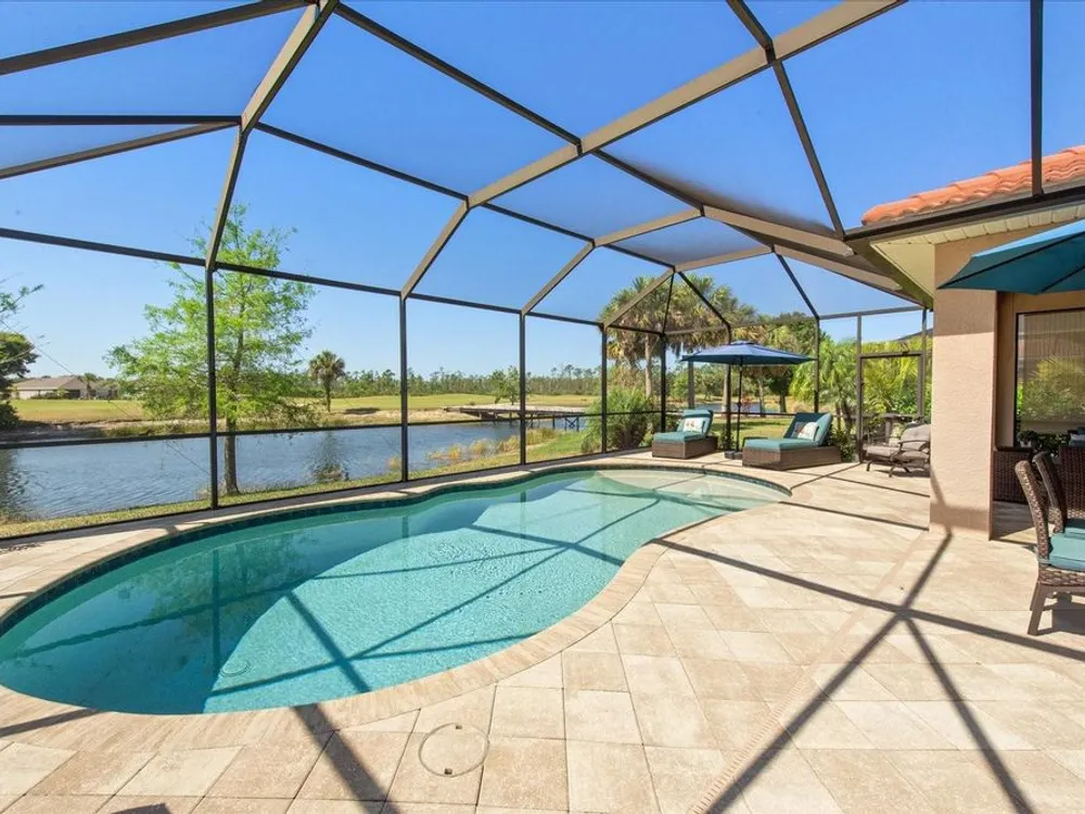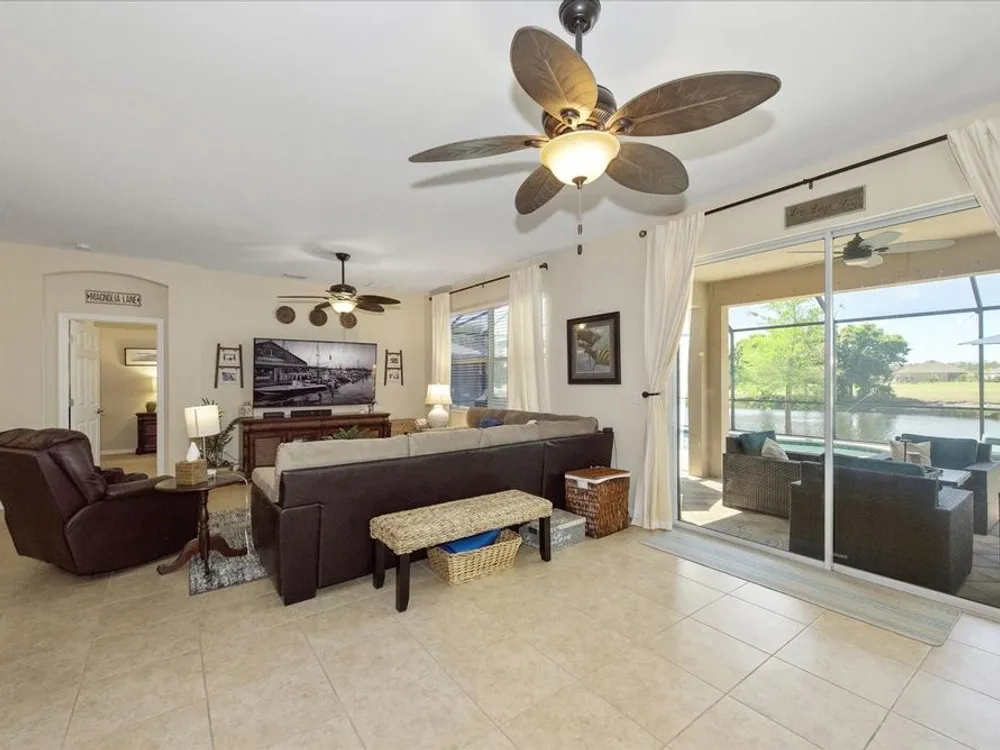 This home has the perfect blend of both comfort and convenience for seasonal or year round living. From the welcoming tasteful decor, to the primary suite with separate shower and soaking tub to the pool overlooking the water... relaxation is a breeze. If you're up for entertaining, then the sizable kitchen w/granite counters open to the family room and dining area would be perfect for inside gatherings, while the refreshing pool encompassed by the beautifully tiled lanai with spacious sitting areas would be ideal for outdoor events! In any case, this one is a must see! The location within the community is perfectly situated between the main amenities near the entrance and the golf course to the far back. Magnolia Landing itself offers resort-style living with multiple pools, a fitness center, pickleball, bocce ball, shuffleboard, and a calendar full of activities!
