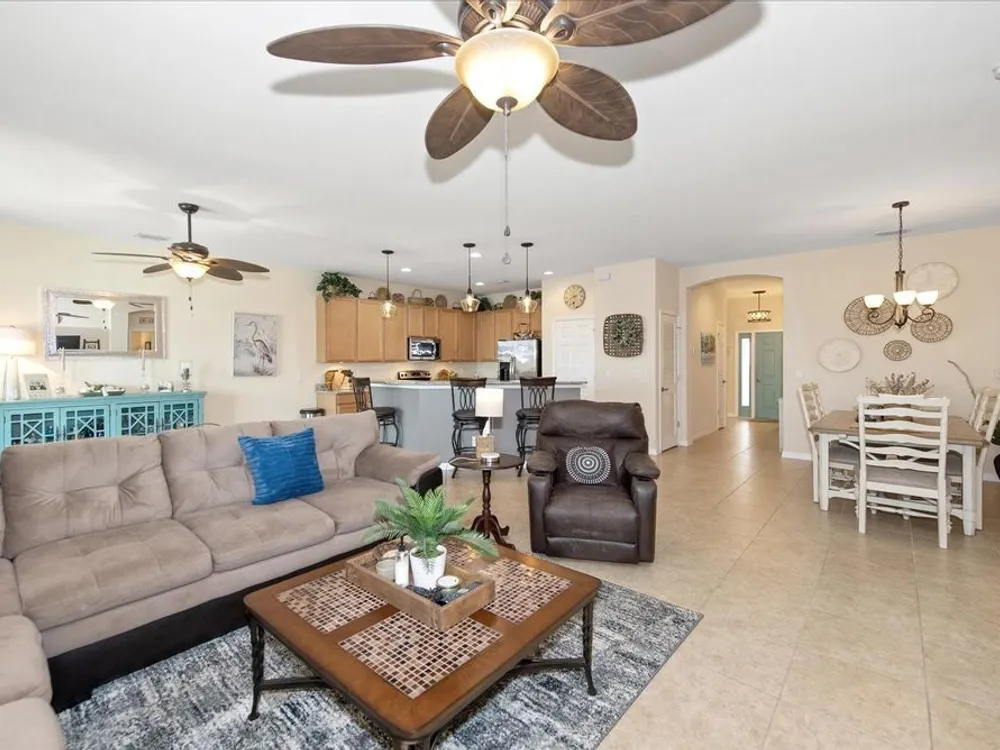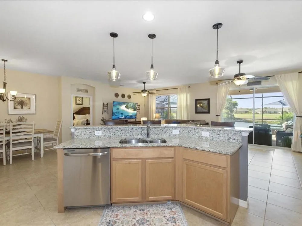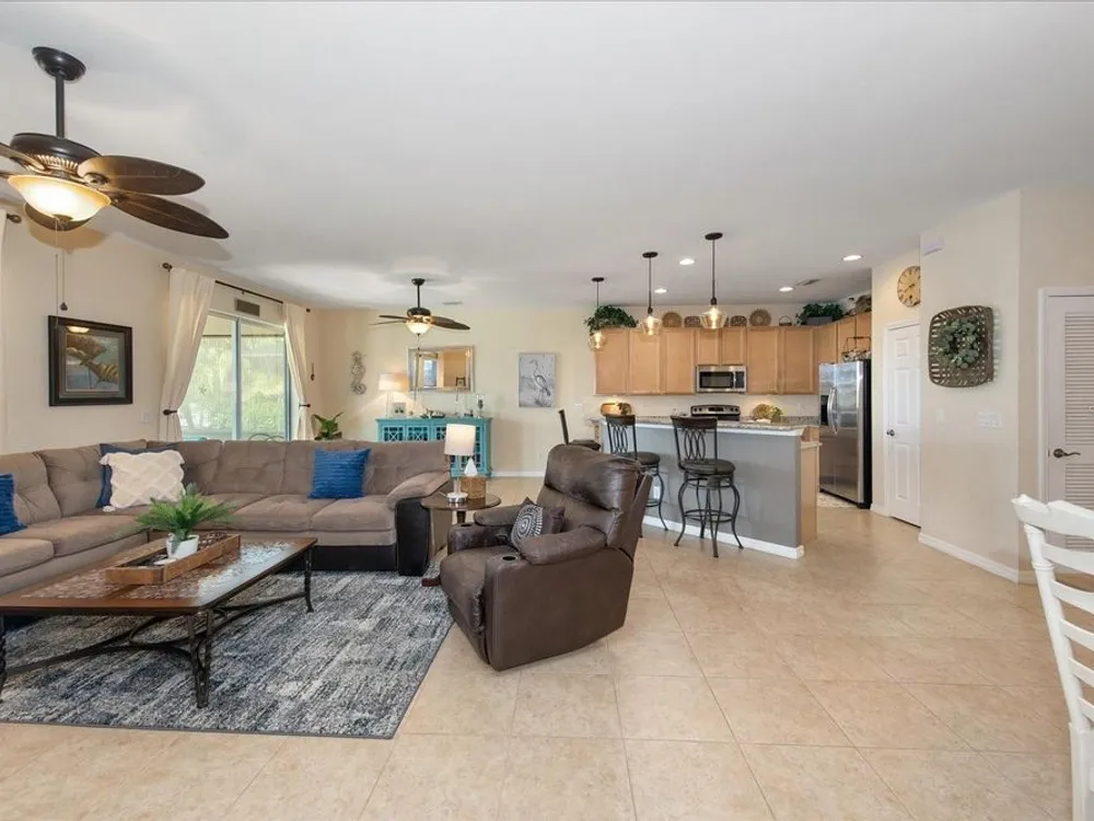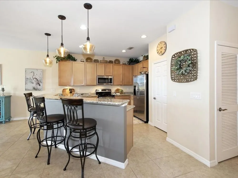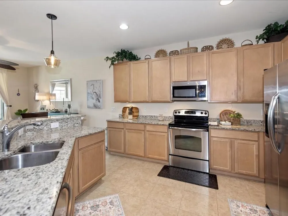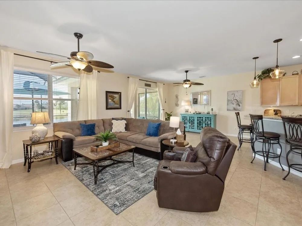 This home has the perfect blend of both comfort and convenience for seasonal or year round living. From the welcoming tasteful decor, to the primary suite with separate shower and soaking tub to the pool overlooking the water... relaxation is a breeze. If you're up for entertaining, then the sizable kitchen w/granite counters open to the family room and dining area would be perfect for inside gatherings, while the refreshing pool encompassed by the beautifully tiled lanai with spacious sitting areas would be ideal for outdoor events! In any case, this one is a must see! The location within the community is perfectly situated between the main amenities near the entrance and the golf course to the far back. Magnolia Landing itself offers resort-style living with multiple pools, a fitness center, pickleball, bocce ball, shuffleboard, and a calendar full of activities!