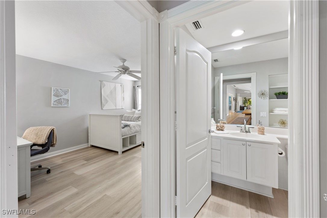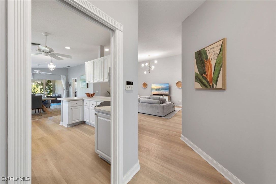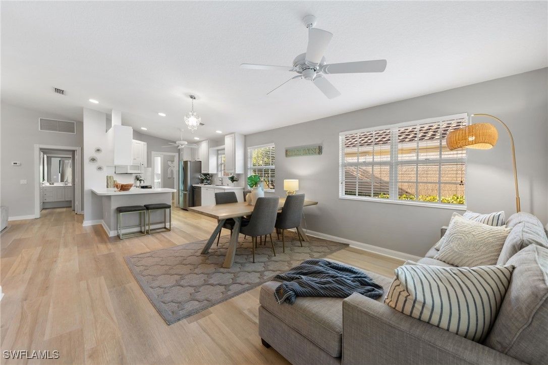 Offered furnished and move-in ready, this elegant 2-bedroom + open den, 2-bath villa in the highly desirable, gated community of Island Walk in Naples invites you to experience refined, low-maintenance living with a resort-style flair. Thoughtfully designed with soaring ceilings, abundant natural light, and a seamless open-concept layout, the home features a timeless white island kitchen that connects effortlessly to the main living and dining areas—perfect for both everyday comfort and easy entertaining. The owner’s suite is a peaceful retreat with two spacious closets and a spa-like ensuite bath featuring a dual vanity and walk-in shower. A split-bedroom design ensures privacy for guests, while the open den area provides a flexible space for reading, relaxing, or casual work. An oversized laundry room with generous cabinetry and counter space enhances daily functionality with style. Step outside to a beautifully landscaped backyard with wide, open views—ideal for morning coffee, evening breezes, or dining al fresco. Beyond the home, Island Walk offers an exceptional lifestyle defined by scenic Venetian-style bridges, peaceful waterways, and an impressive lineup of amenities including a resort-style pool, state-of-the-art fitness center, tennis and pickleball courts, on-site dining, a salon, post office, and even a gas station. With a full-time activities director and countless opportunities for connection, recreation, and relaxation, Island Walk blends vibrant community living with everyday convenience. All this, just minutes from Naples' world-renowned beaches, golf, dining, and shopping, makes this furnished villa a rare opportunity to enjoy the very best of Southwest Florida. Roof 2019
