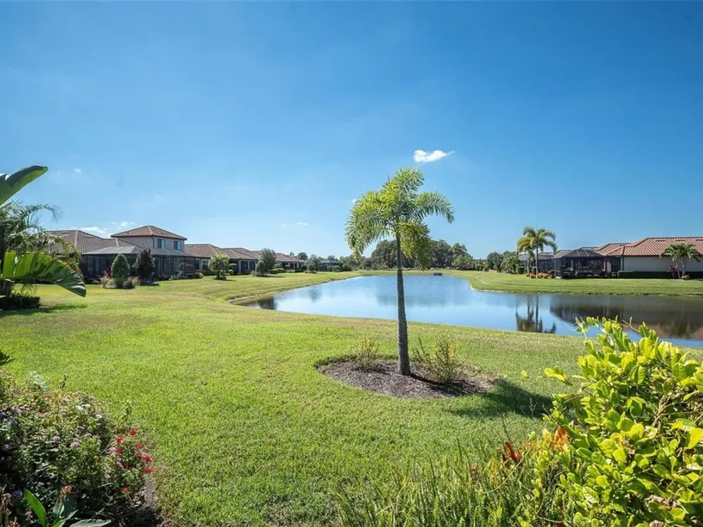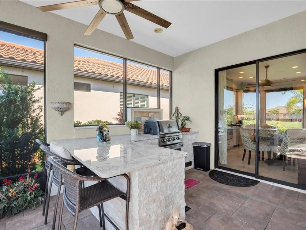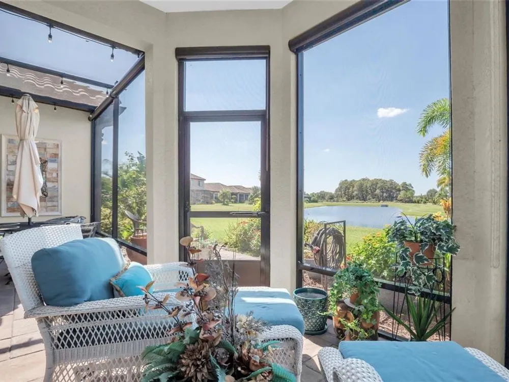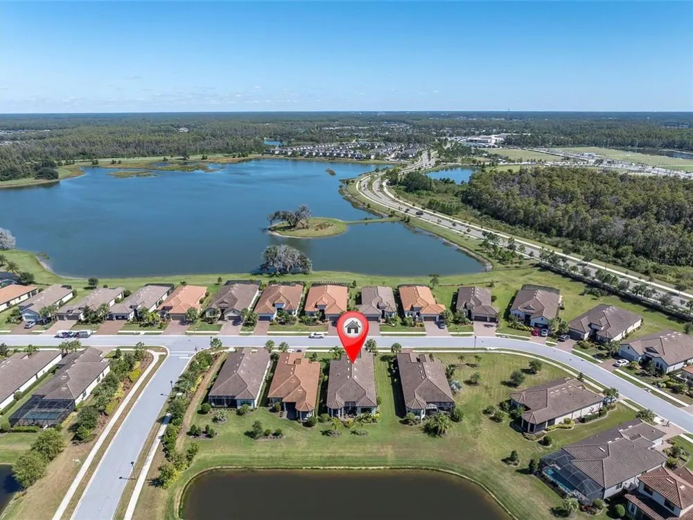 UPGRADED TAYLOR MORRISON LAZIO, WITH CUSTOM DESIGNED OUTDOOR KITCHEN ON A PREMIUM POND LOT. Turnkey Taylor Morrison Lazio spanning 2368 sqft on one story offers 3brs, 3 ba + office w/ 3 car Tandem garage, on a private POND lot in the gated Esplanade at Starkey Ranch. Spending time relaxing in your screened Lanai, overlooking the peaceful pond and grilling in the custom outdoor kitchen and dining in the evening hours makes the end of any day a pleasure or having a beautiful breakfast makes the beginning of each day have positive affects on the day. This home boast over $155K in builder upgrades & $100K after market upgrades in this pristine home offers noteworthy upgrades including 8-ft doors, 10' Ceilings, Level 4 Porcelain tile in main living areas + office, wood look laminate in Owners suite and additional FLEX room, crown molding, freshly painted exterior w/Sherwin Williams Fresh Rain Essence paint in 2023. Inviting Mediterranean elevation, barrel tile roof, lush landscaping w/ lighting & paver driveway + walkway. Front door w/ etched glass & sidelights greets guests. Setting the tone is a tray ceiling w/ statement chandelier for the level of upgrades within. To the right of the entry foyer is a full bath w/ tub shower combo & adjacent 2nd Bedroom (currenly used as an office) Porcelain tile floors, ceiling fan, double 8' door closet open up to additional space for storing items and 2 windows. The 3rd bedroom w/ an ensuite full bath featuring upgraded after market granite, full seamless glass shower enclosure will impress any guest that might grace your beautiful home. The main gathering area as the floor plan unfolds feature a One of a Kind, custom designed entertainment wall, with Venitian Plaster finish, glass shelving for your collectibles and glass designer enclosed cabinetry, for add'l items. This wall features a built in electric heated fireplace, large area for TV (currently 77" it could be a bigger one), can lights, ceiling fan, Crown molding, flooded by natural light & a view of the pond, makes it just about perfect. The designer GOURMET kitchen will impress w/abundance of 42’ solid wood Level 5 Creme w/Chocolate Glaze Cabinets with upgraded hardware, lightrail, crown, designer Backsplash, SS Apron Sink w/hands free faucet, upgraded SS appliances, built in Microwave & Oven, Dishwasher, Café Range Gas cooktop, designer Hood , Wine Frig. Walk in pantry offers addtl storage. Massive Island illuminated by 2 pendant lights will be a place to gather & entertain inclds seating for 4. Owners suite is complimented by 3 windows frame the pond, motorized shade & fan. Spa-like Master Ensuite includes fine details like his & hers sink w/ Granite counters, cabinet & drawers, oversized car-wash shower, spacious walk-in closet, w/built in-organizer. Watch the awesome sunsets from your extended, covered lanai overlooking the pond. The luxurious outdoor kitchen features Broil King Grill, dine rain or shine under covered, shaded lanai. Laundry room has built-in cabinetry w/sink. Plantation shutters through out. Fresh air intake & electronic filter to A/C. Enjoy a maintenance-free lifestyle at Esplanade featuring, fitness center, Resort Style & Resistance Pool, Tennis Courts, Pickleball Courts, dog Park, Playground & social activities. Lawn & weed care included. Zoned for Magnet Starkey K8. Close to Restaurants, shopping, Golf Courses, Beaches & Tampa Airport. Enjoy an lifestyle everyone deserves in this custom designed and maintained home!