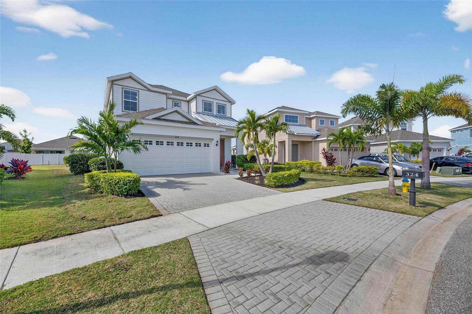 324 BLACKROCK LANE | 4 Bedrooms | 3 Bathrooms | Bonus Room | 2,273 Sq Ft | Built 2022 | MiraBay Community Welcome to 324 Blackrock Lane, located in the highly sought-after waterfront community of MiraBay in Apollo Beach. Built in 2022 by Park Square Homes, this beautiful two-story coastal-style residence offers 4 bedrooms, 3 full bathrooms, and a versatile bonus room across 2,273 square feet of thoughtfully designed living space. The first floor showcases an open-concept layout filled with natural light, featuring high ceilings, tile floors laid in a stylish brick pattern, and a spacious great room that flows seamlessly into the dining area and kitchen. The kitchen is a true centerpiece with elegant quartz countertops, a large island, two-tone 42” cabinets, stainless steel appliances, and plenty of storage space. A guest bedroom and full bathroom are conveniently located on the main level. Upstairs, the expansive primary suite offers a relaxing retreat with a luxurious en suite bathroom featuring dual vanities, stone counters, a soaking tub, a separate walk-in shower, and both walk-in and linen closets. Two additional bedrooms and a large bonus room complete the upper floor, offering the perfect flex space for an office, playroom, or media area. Step outside to the covered patio—ideal for morning coffee or evening gatherings—and enjoy the quiet setting this property provides. Situated on one of the largest lots on the block, the backyard offers ample space to design your dream outdoor oasis, with plenty of room for a lanai, cage, and pool. The home is already equipped with utilities for a future pool installation, providing a seamless path to expansion. Adding to its charm, this property faces a beautiful garden area filled with vibrant flowers and graceful palm trees instead of neighboring homes, creating a serene and picturesque view right from your doorstep. With a two-car garage, generous storage options, and modern finishes throughout, this home perfectly blends comfort, functionality, and style. MiraBay residents enjoy resort-style amenities, including a 10,000 sq. ft. clubhouse, Olympic-size heated pool, 136-foot waterslide, 24-hour fitness center, tennis and pickleball courts, basketball courts, playgrounds, a café, and miles of scenic trails. Kayaks, canoes, and other watercraft are available for use, creating the ultimate Florida lifestyle experience. Live every day like you’re on vacation in this move-in ready home within one of Apollo Beach’s most desirable communities.