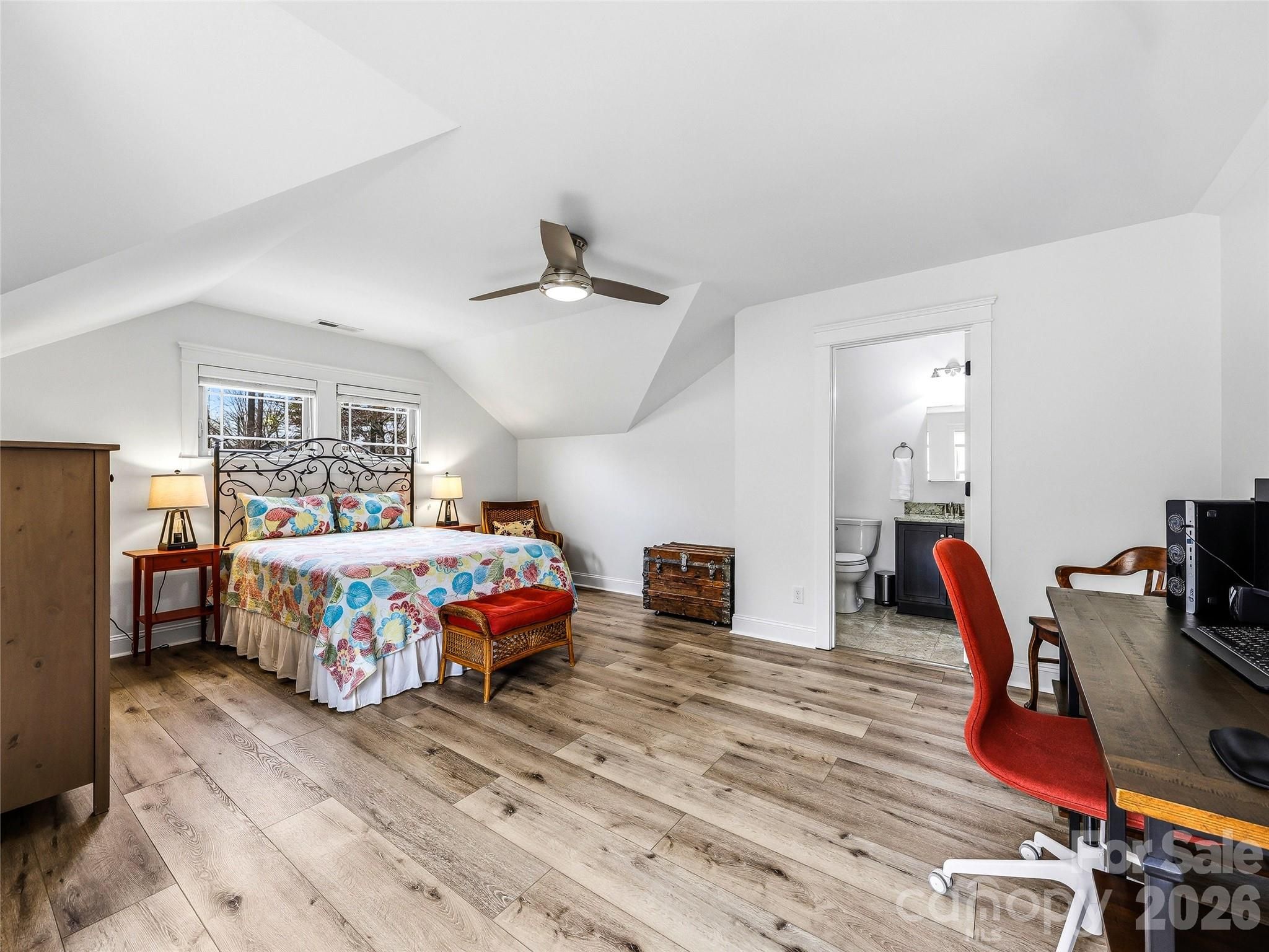 Tucked at the end of a quiet cul-de-sac in sought-after Biltmore Lake, this beautifully maintained 2014 home offers the perfect blend of privacy, comfort, and effortless living. Set on a private lot with a fenced backyard and dedicated garden area, the property invites both relaxation and connection to the outdoors. The main level is designed for ease, featuring a spacious primary suite with two walk-in closets and a well-appointed bath with a walk-in shower and a classic clawfoot tub. Two additional bedrooms on the main floor provide flexibility for guests, an office, or a fitness space. An open-concept floor plan creates a natural flow between the living, dining, and kitchen areas, anchored by a well-appointed kitchen with granite countertops, a farmhouse sink, and stainless GE Café appliances. A light-filled sunroom with a vaulted ceiling extends the living space and opens to a deck overlooking the private backyard—perfect for morning coffee or evening gatherings. Upstairs, a private guest suite offers comfortable separation for visitors. The lower level adds exceptional functionality with a workshop, half bath, and thoughtful upgrades, including a radon mitigation system, whole-house water filtration, and a high, dry crawl space ideal for storage. Step outside to the lower deck and unwind in the hot tub, surrounded by a peaceful, private setting. Enjoy the unmatched lifestyle of Biltmore Lake, with access to the lake, miles of walking trails, tennis and pickleball courts, and a vibrant, amenity-rich community just minutes from Asheville.