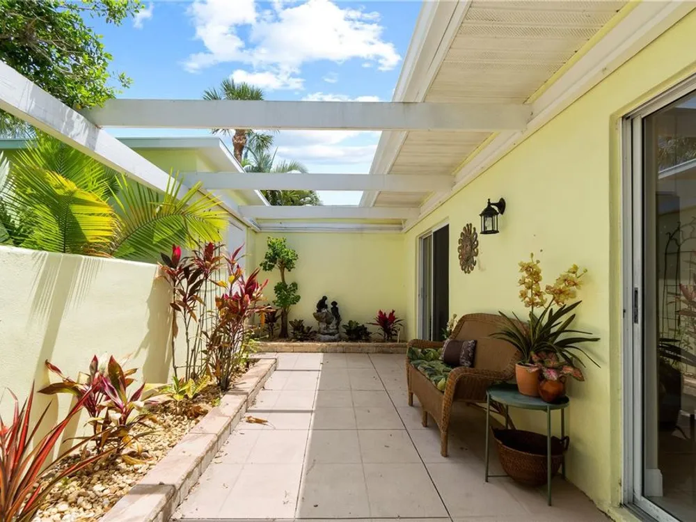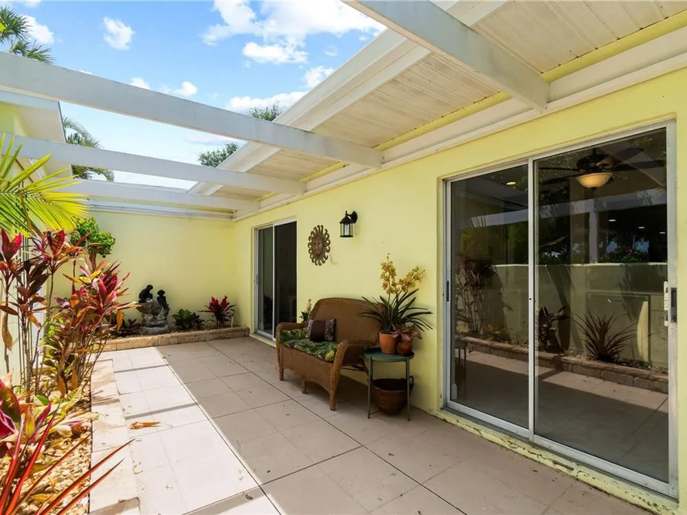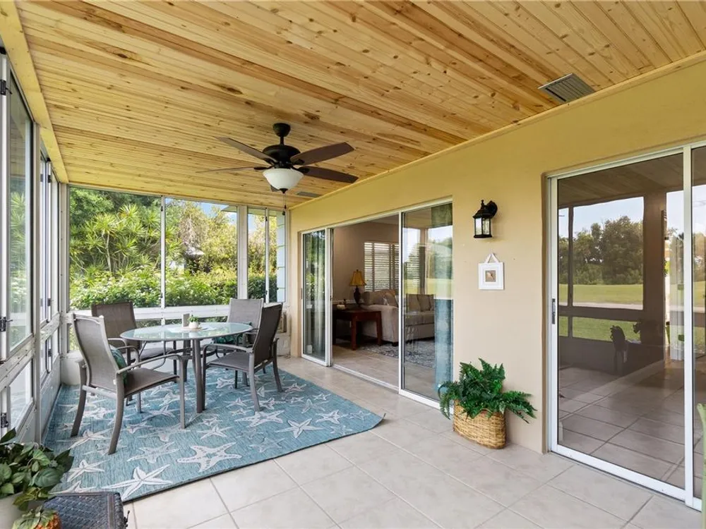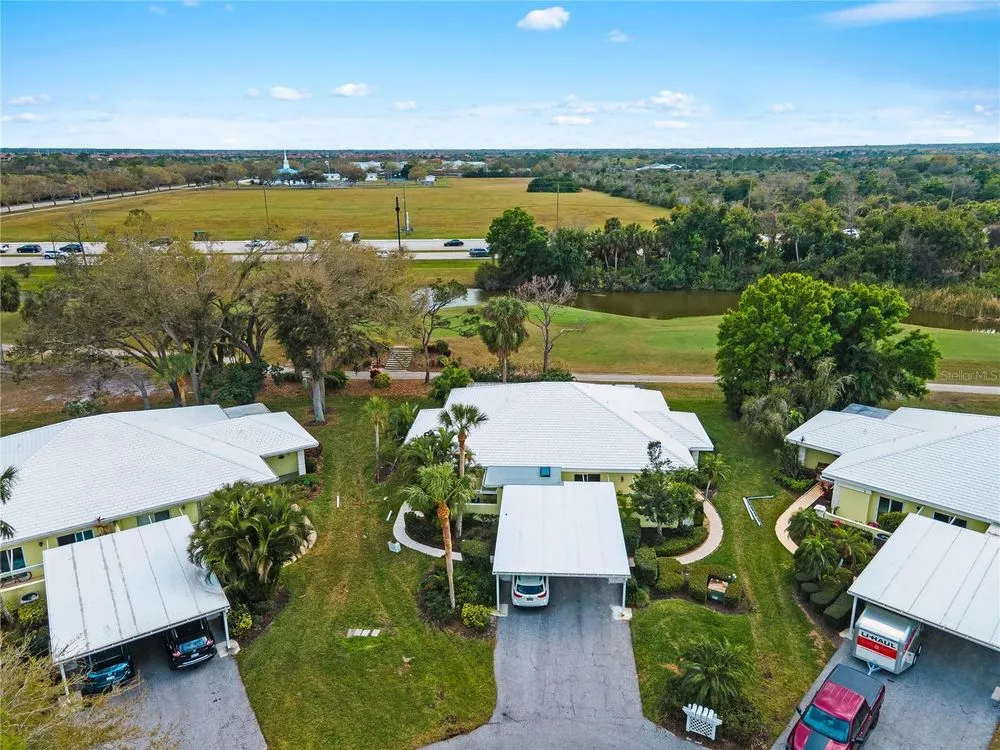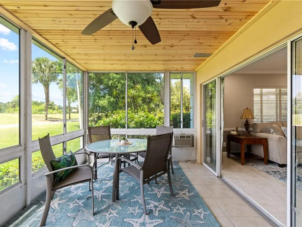 Great price on this Renovated Augusta Villa! Perfectly located just 5 minutes from Wellan Park at the end of the cul-de-sac over looking the golf course. Lots of new, new roof and carport, newer kitchen with all Whirlpool Stainless Steel appliances, cabinets including a pantry cabinet with pull out shelves. Quartz counters and new tile backsplash. The kitchen and master bedroom have sliders that open to a wonderful courtyard perfect for morning coffee, grilling in the evenings or just hanging out with friends. All new plumbing features and water heater. New master shower, new vanity's in both bathrooms, and new light fixtures. Master bathroom has new stylish barn door. New recessed lighting in the living and bedrooms. Crown molding, chair rail and new paint throughout. Florida room with wood ceiling and new fans throughout. Easy to show and move right in as the partial furnishings are included.