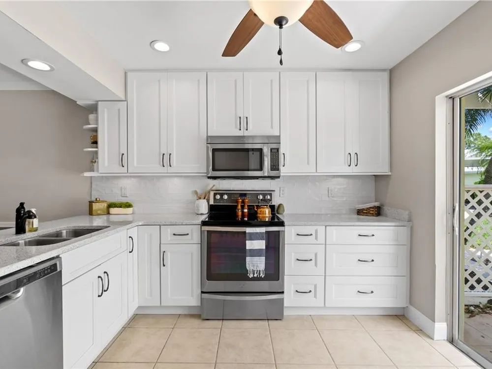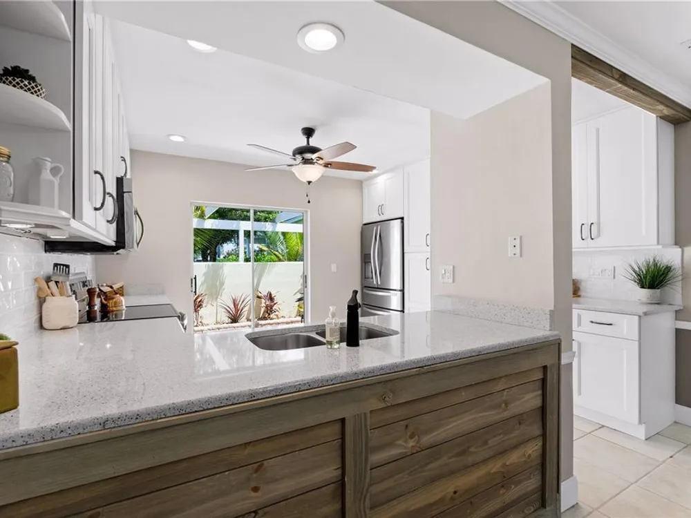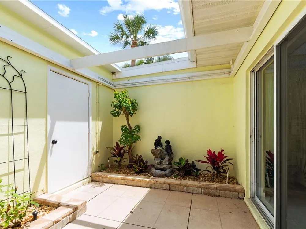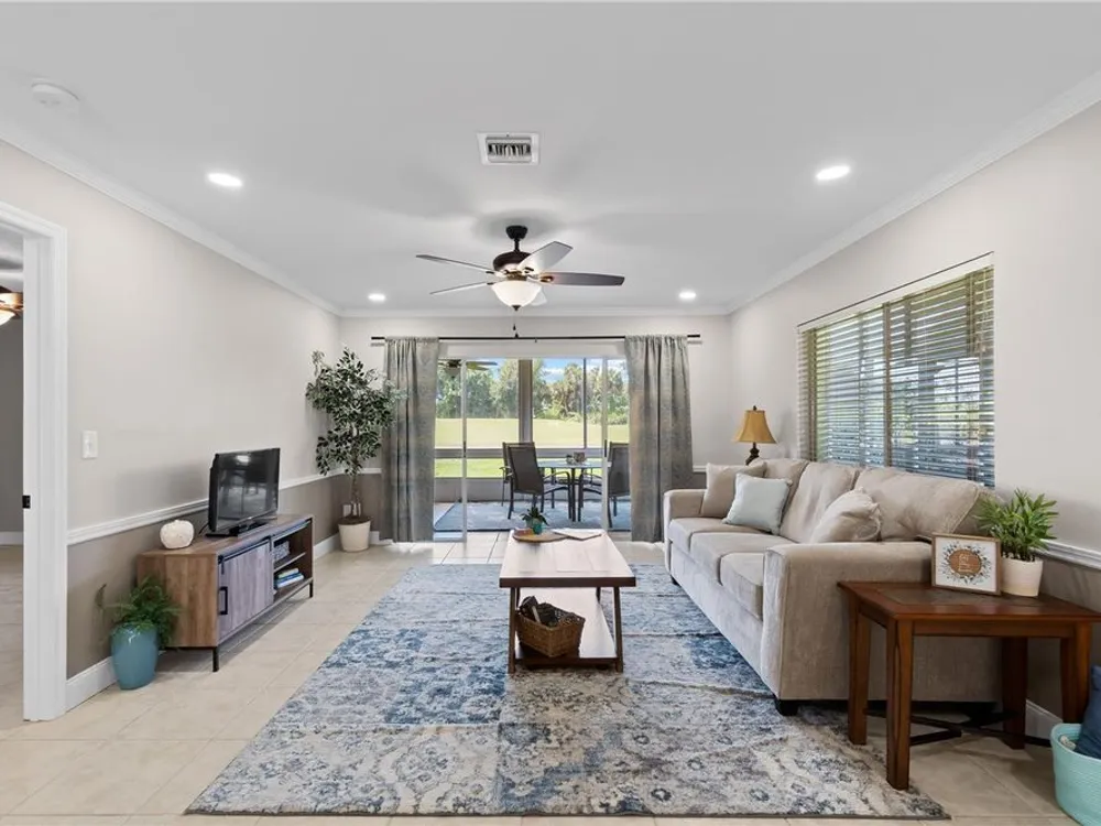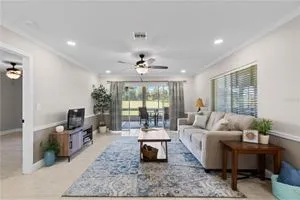 Great price on this Renovated Augusta Villa! Perfectly located just 5 minutes from Wellan Park at the end of the cul-de-sac over looking the golf course. Lots of new, new roof and carport, newer kitchen with all Whirlpool Stainless Steel appliances, cabinets including a pantry cabinet with pull out shelves. Quartz counters and new tile backsplash. The kitchen and master bedroom have sliders that open to a wonderful courtyard perfect for morning coffee, grilling in the evenings or just hanging out with friends. All new plumbing features and water heater. New master shower, new vanity's in both bathrooms, and new light fixtures. Master bathroom has new stylish barn door. New recessed lighting in the living and bedrooms. Crown molding, chair rail and new paint throughout. Florida room with wood ceiling and new fans throughout. Easy to show and move right in as the partial furnishings are included.