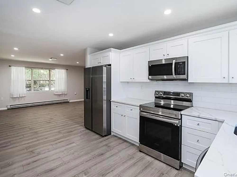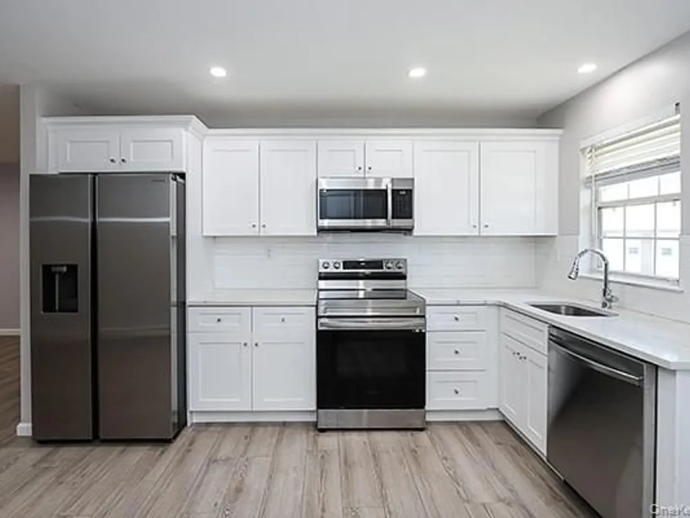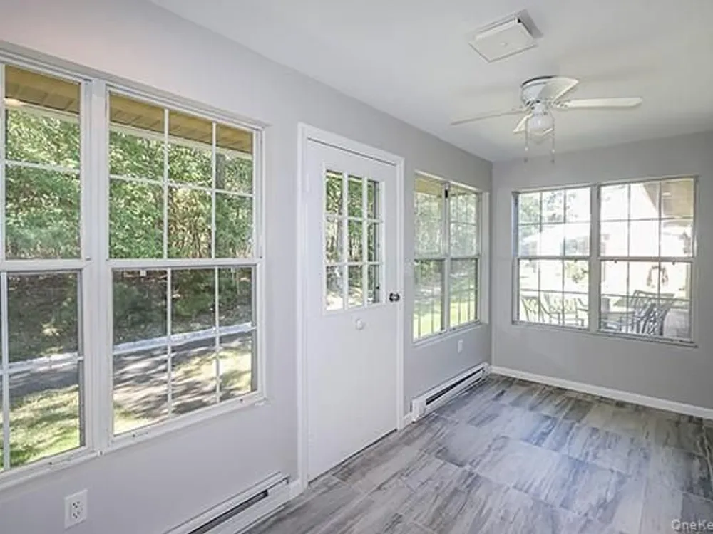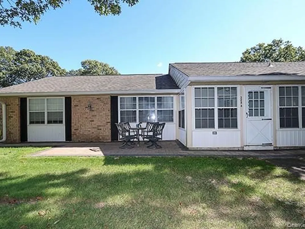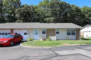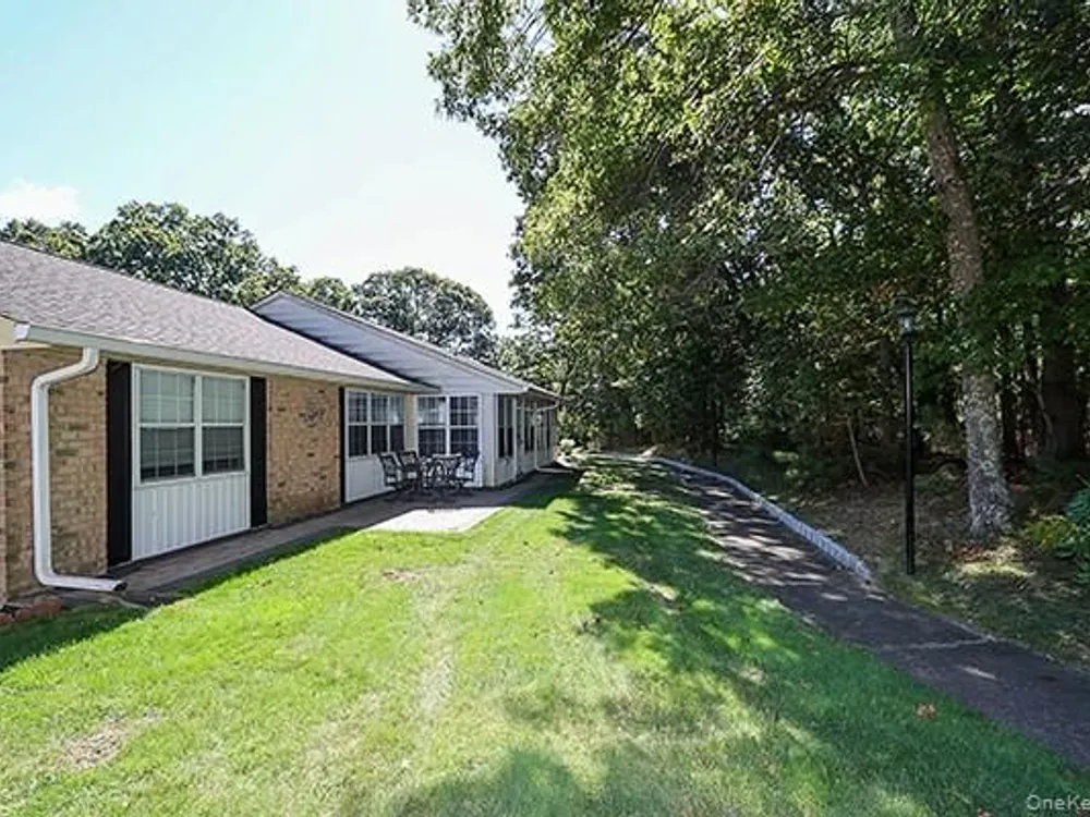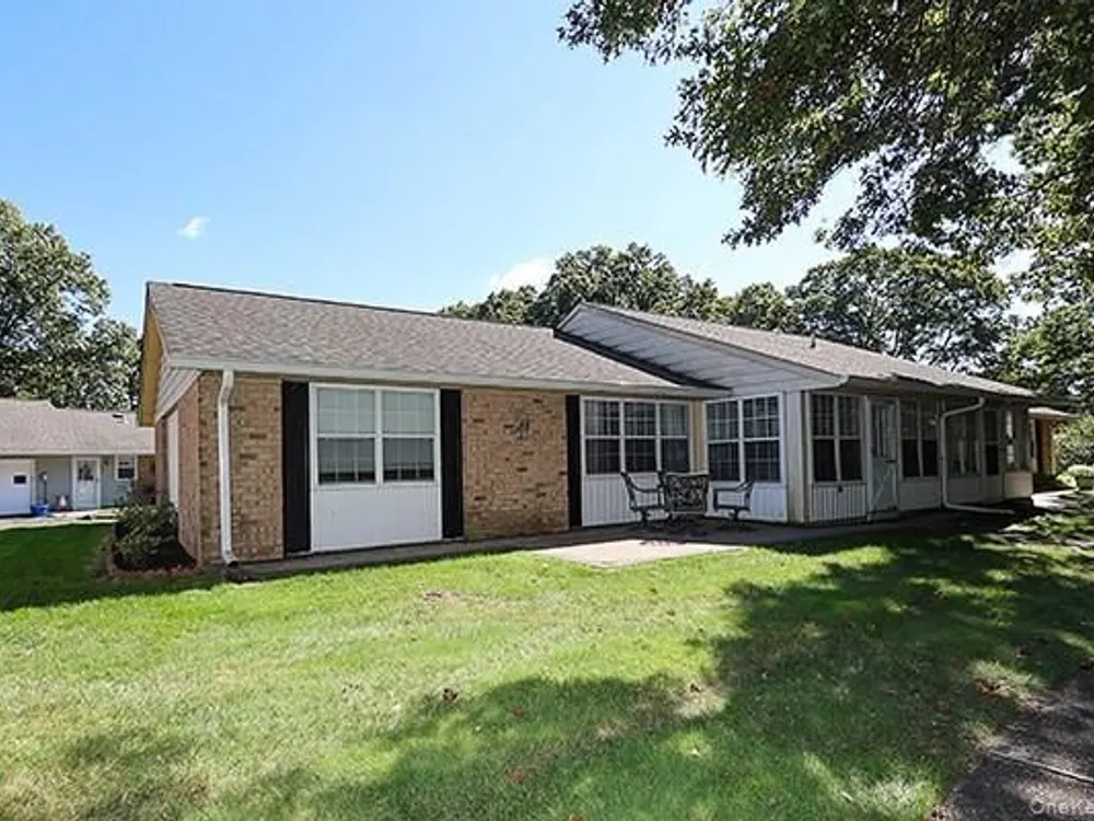 Fully renovated Baronet II end unit backing preserved New York State owned property. The kitchen is completely new in 2023. White shaker cabinets, quartzite counter tops, stainless appliances. Open floor plan between kitchen dinning area and living room. Both bathrooms have been completely redone in 2023. The unit basks preserved land that is owned by New York State. There is New vinyl flooring throughout the entire unit. There is a pull down attic stairs in the garage for extra storage. All exterior maintenance including snow removal and lawn care is covered through the monthly maintenance fee. Beautiful rear pavers patio added in 2024, perfect for outdoor seating and table. Leisure Village is an active community with a substantial clubhouse, pool, golf, tennis, and bocce courts, 24 hour security gate and patrolled 24 hour security.