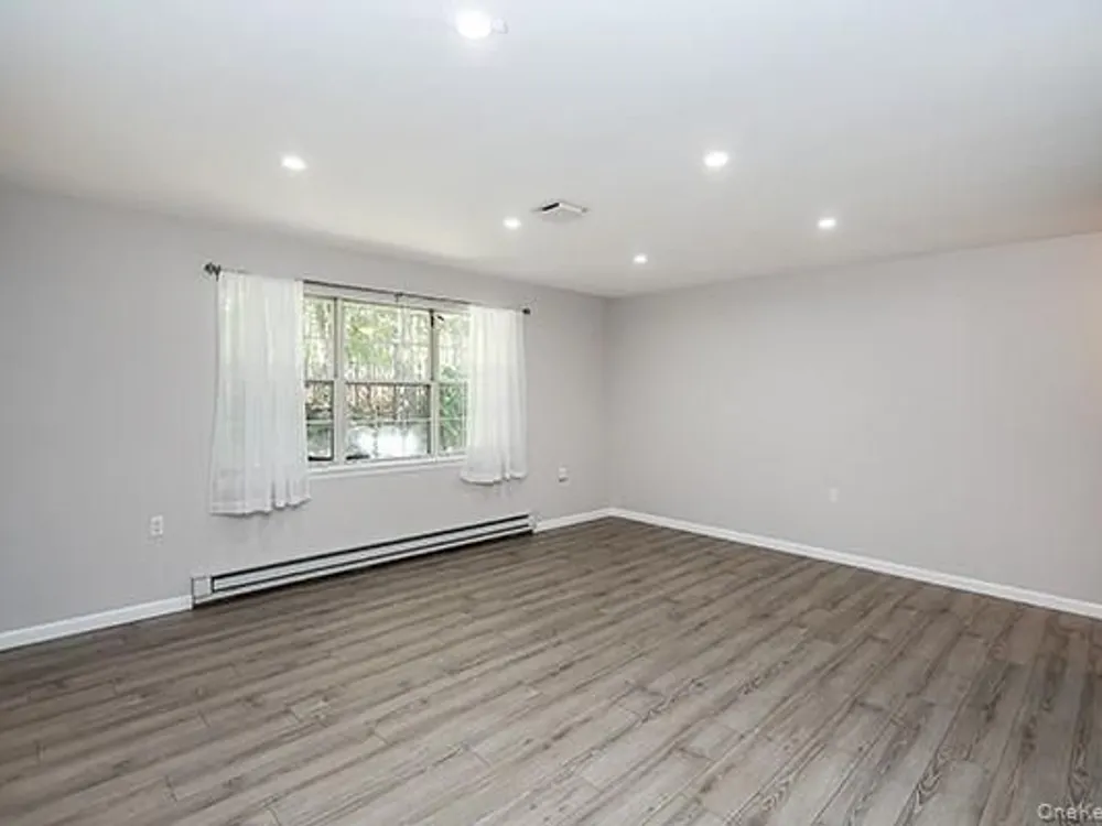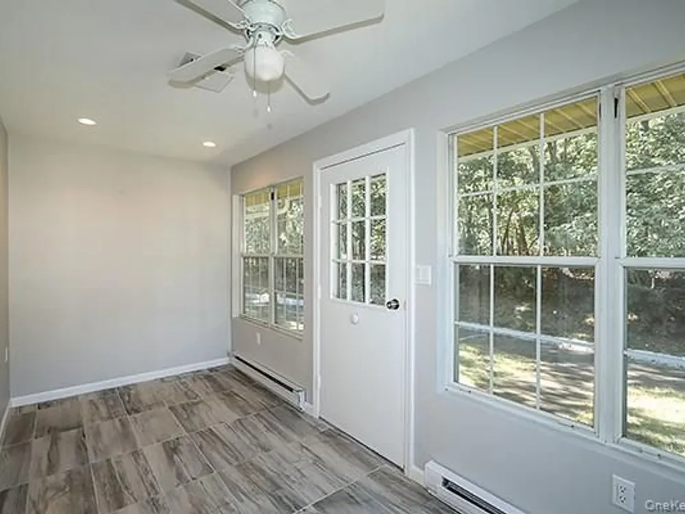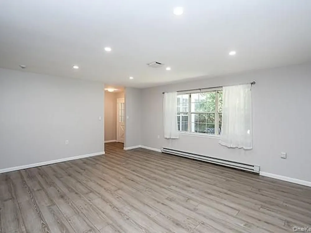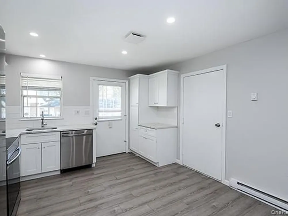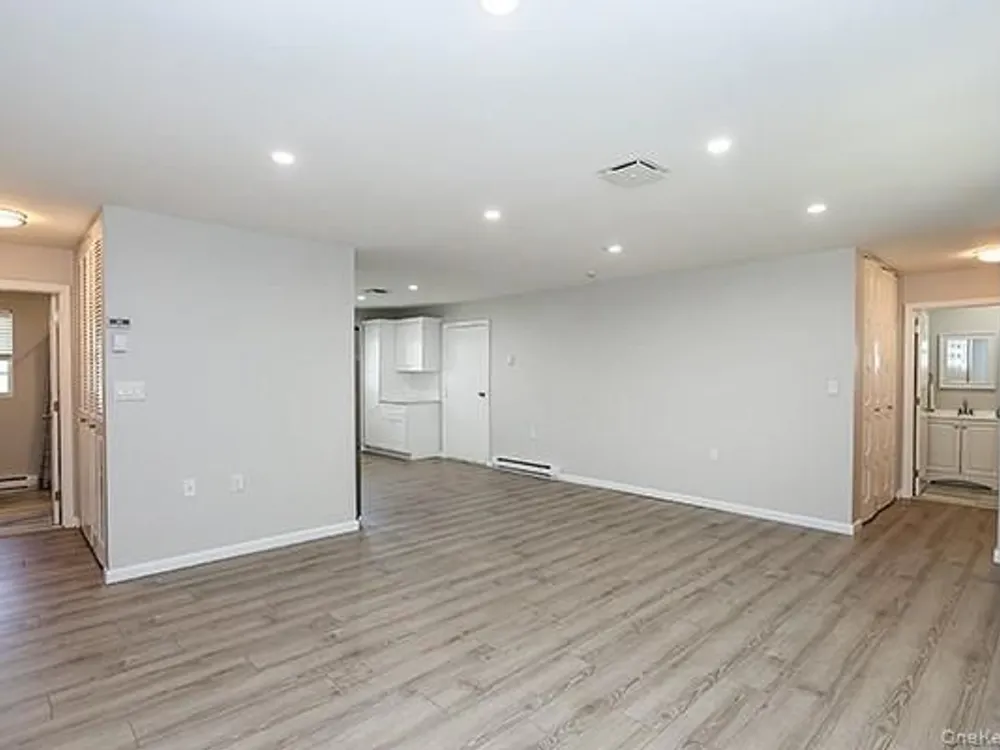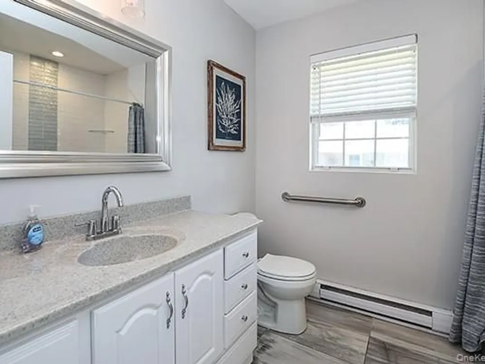 Fully renovated Baronet II end unit backing preserved New York State owned property. The kitchen is completely new in 2023. White shaker cabinets, quartzite counter tops, stainless appliances. Open floor plan between kitchen dinning area and living room. Both bathrooms have been completely redone in 2023. The unit basks preserved land that is owned by New York State. There is New vinyl flooring throughout the entire unit. There is a pull down attic stairs in the garage for extra storage. All exterior maintenance including snow removal and lawn care is covered through the monthly maintenance fee. Beautiful rear pavers patio added in 2024, perfect for outdoor seating and table. Leisure Village is an active community with a substantial clubhouse, pool, golf, tennis, and bocce courts, 24 hour security gate and patrolled 24 hour security.