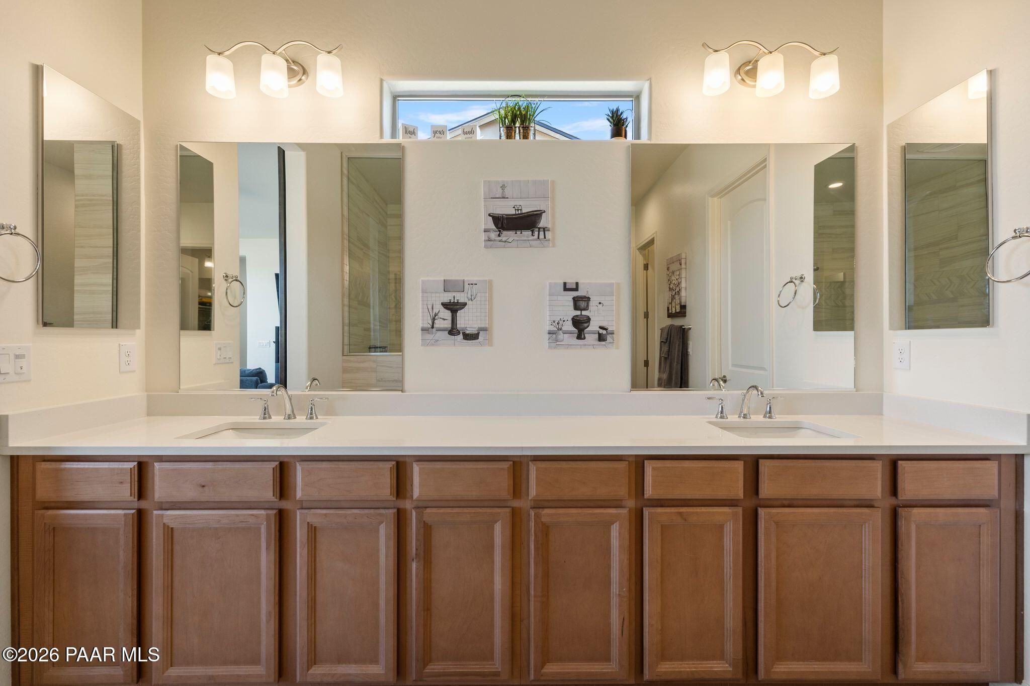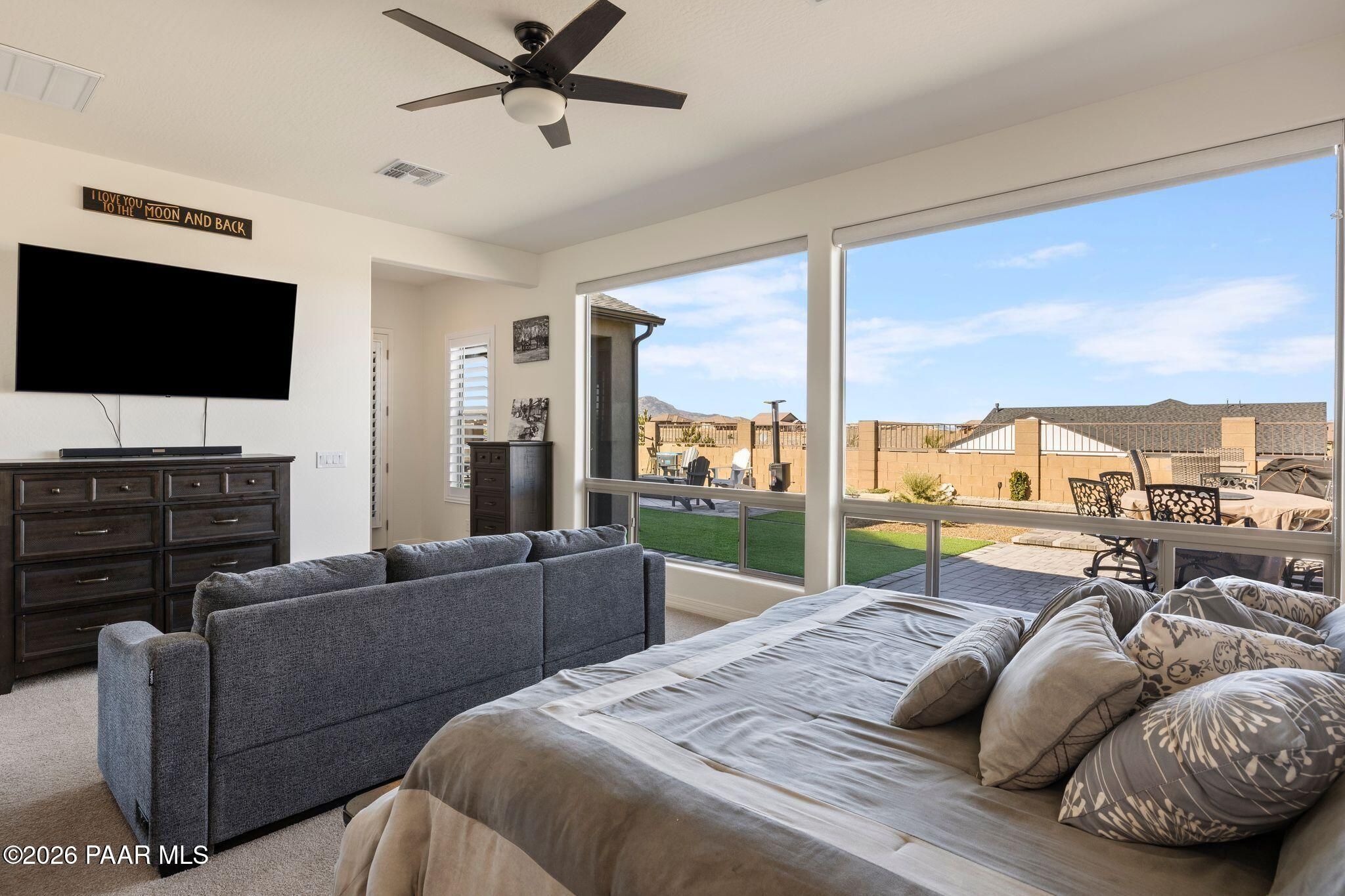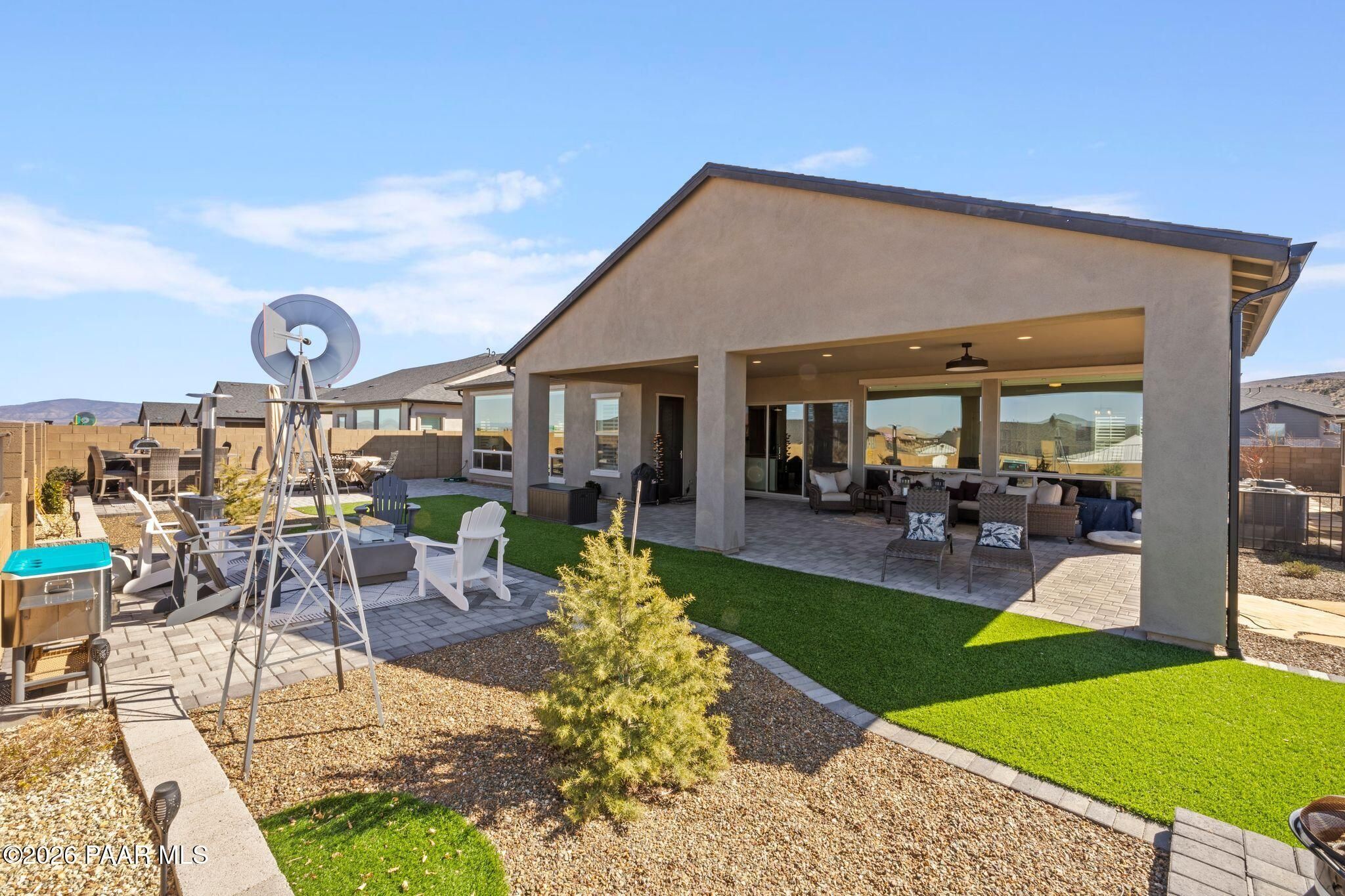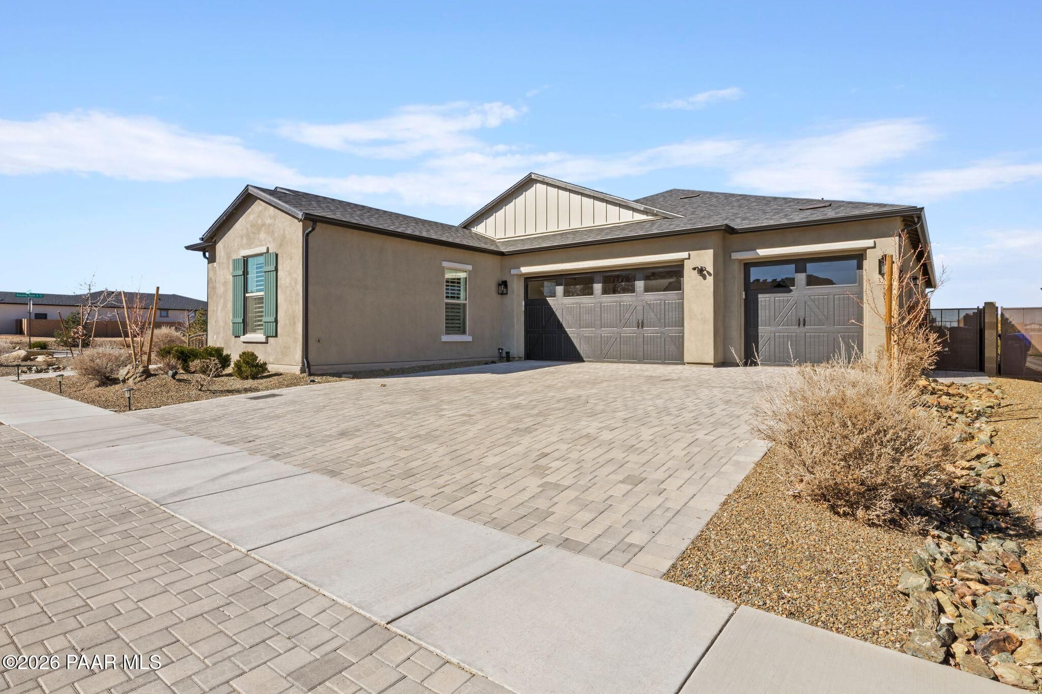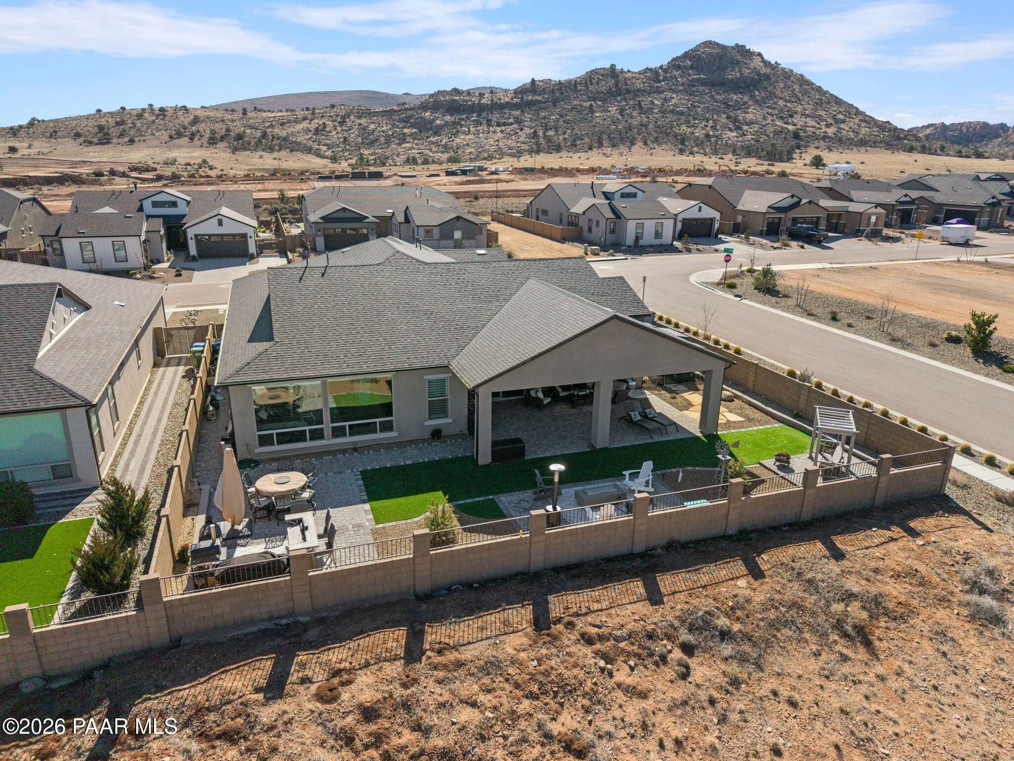 Located in the highly sought-after Granite Dells Estates, this exceptional 3-bedroom, 3.5-bath home sits on a corner lot in a quiet cul-de-sac and showcases luxurious finishes throughout. Each bedroom features its own en suite bath, plus a convenient half bath for guests. A welcoming front courtyard and beautifully landscaped outdoor spaces set the tone for refined Arizona living.The light-filled great room features 12-foot ceilings, striking wood beams, and a dramatic floor-to-ceiling stone fireplace. Expansive windows perfectly frame views of the backyard and Granite Mountain. The chef's kitchen offers quartz countertops, 5-burner gas cooktop, abundant cabinetry, and a butler's pantry, ideal for entertaining.The spacious primary suite includes dual vanities, an extra-large walk-in shower, his and her walk-in closets, and walls of windows that flood the space with natural light. Additional highlights include a flex space for office or dining, an oversized laundry room, epoxied garage floors, and an EV charging port.Enjoy an entertainer's backyard with an oversized covered patio and breathtaking views. The Granite Dells community offers unmatched scenery, miles of hiking and biking trails, and a resort-style pool, gym, pickleball courts, and clubhouse with social events and community classes-delivering a lifestyle unlike any other subdivision.