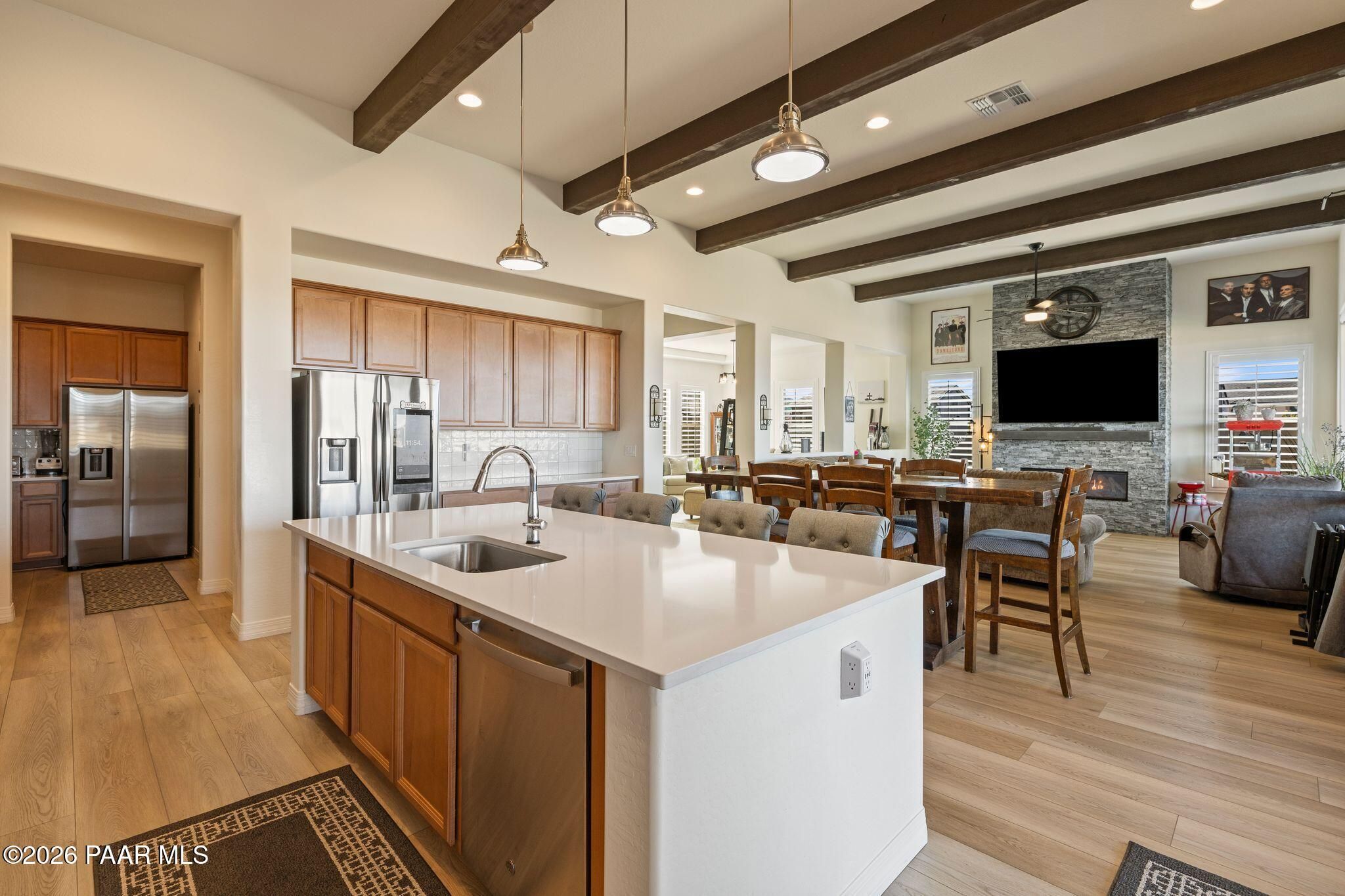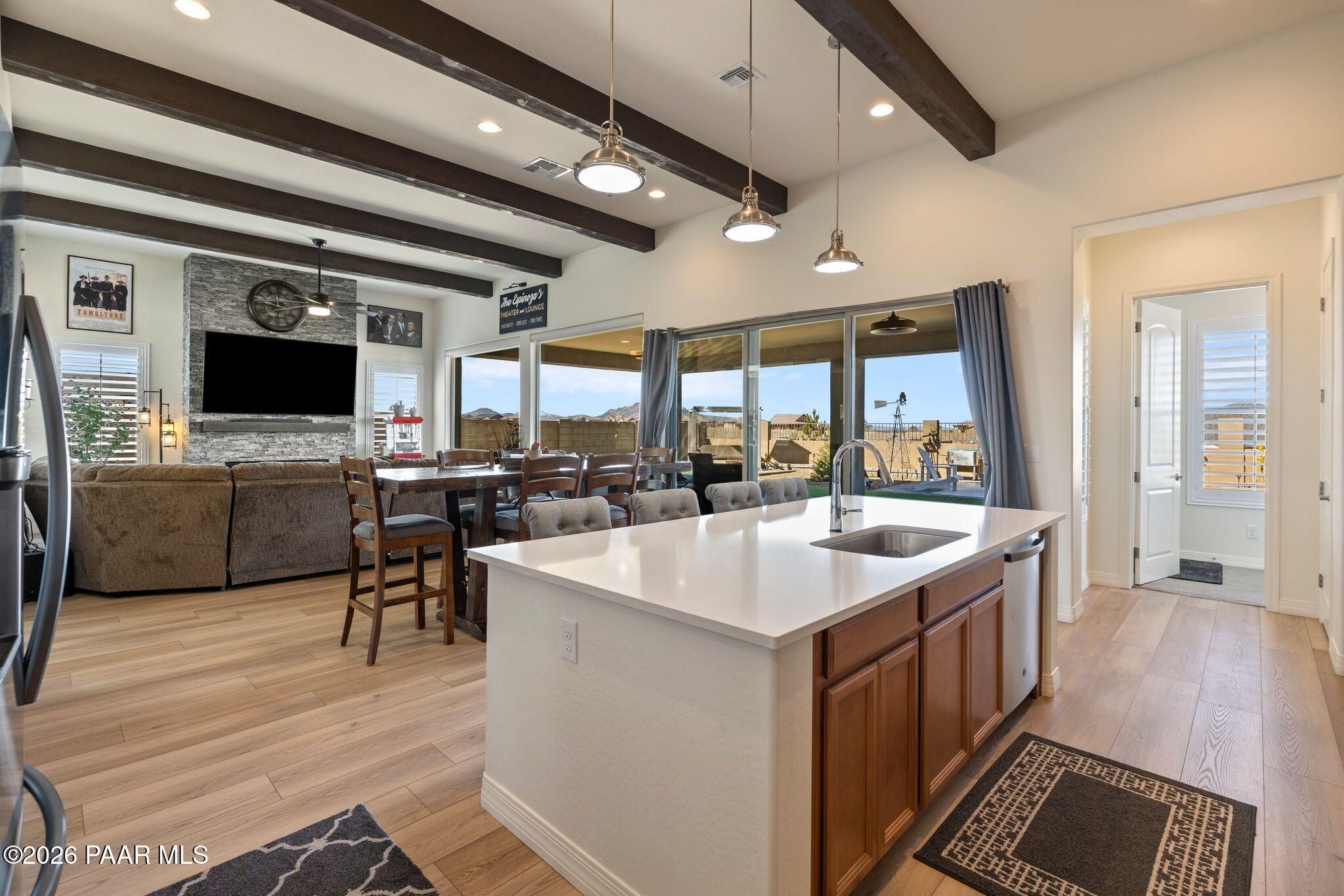 - Beamed Ceilings, Ceiling Fan(s), Kitchen/Dining Combo, Kitchen Island, Living/Dining Room, Pantry, Quartz Countertops, High Ceilings, Walk-In Closet(s), Washer/Dryer Hookup