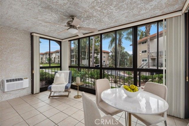 Fabulous VILLA PUERTA floorplan tastefully updated to modern expectations. Located inside Gate 7 & 9 on an elevated street with direct access via parking garage with elevator. Step through the double door entry to discover a bright, spacious living room and dining area featuring smooth ceilings, a large picture window, dual sliders and LVP flooring. IT GETS BETTER with an additional glass enclosed patio featuring its own A/C unit and ceiling fan. This additional square footage makes this unit very versatile whether hosting a bridge game or enjoying a good book. The kitchen has white shaker cabinets including an added pantry cabinet and pantry closet, newer stainless-steel appliances, ample countertop space, recessed lighting and tile backsplash. Short on closets, the primary ensuite features a full wall of closets with mirrored doors in addition to the two additional closets in the bath area. The room is spacious and bright and can handle a king size bed. White shaker vanity and separate tub/shower combo round out this room. The guest bedroom has a large window and ample closet space. The guest bathroom with stall shower with new vanity and wall cabinet storage. This remarkable home is ideally situated in the premier 55+ adult community with its impressive amenities including a 27-hole championship golf course, 9-hole executive course, tennis and pickleball, lawn bowling, gyms, swimming pools, horse stables, art studio and classes, an 800 seat Auditorium w/live entertainment, Jewelry Center, Computer Center, Photography Center, Equestrian Center, 3 Fully Equipped Fitness Centers, 5 Pools, 8 Clubhouses, ACBL Bridge games 6-7 days a week and over 200+ clubs and organizations. Dues include trash, water, landscaping, building maintenance and building insurance, Free Transportation Service, security patrol and so much more. Close to Laguna Beach and convenient shopping and medical. Must be 55 years old to live in Laguna Woods Village which is rated as one of the TOP 55 PLUS RETIREMENT COMMUNITIES IN SOUTHERN CALIFORNIA. Join the Active Ageless in 'Camp' Laguna Woods Village where the amenities can keep you young.