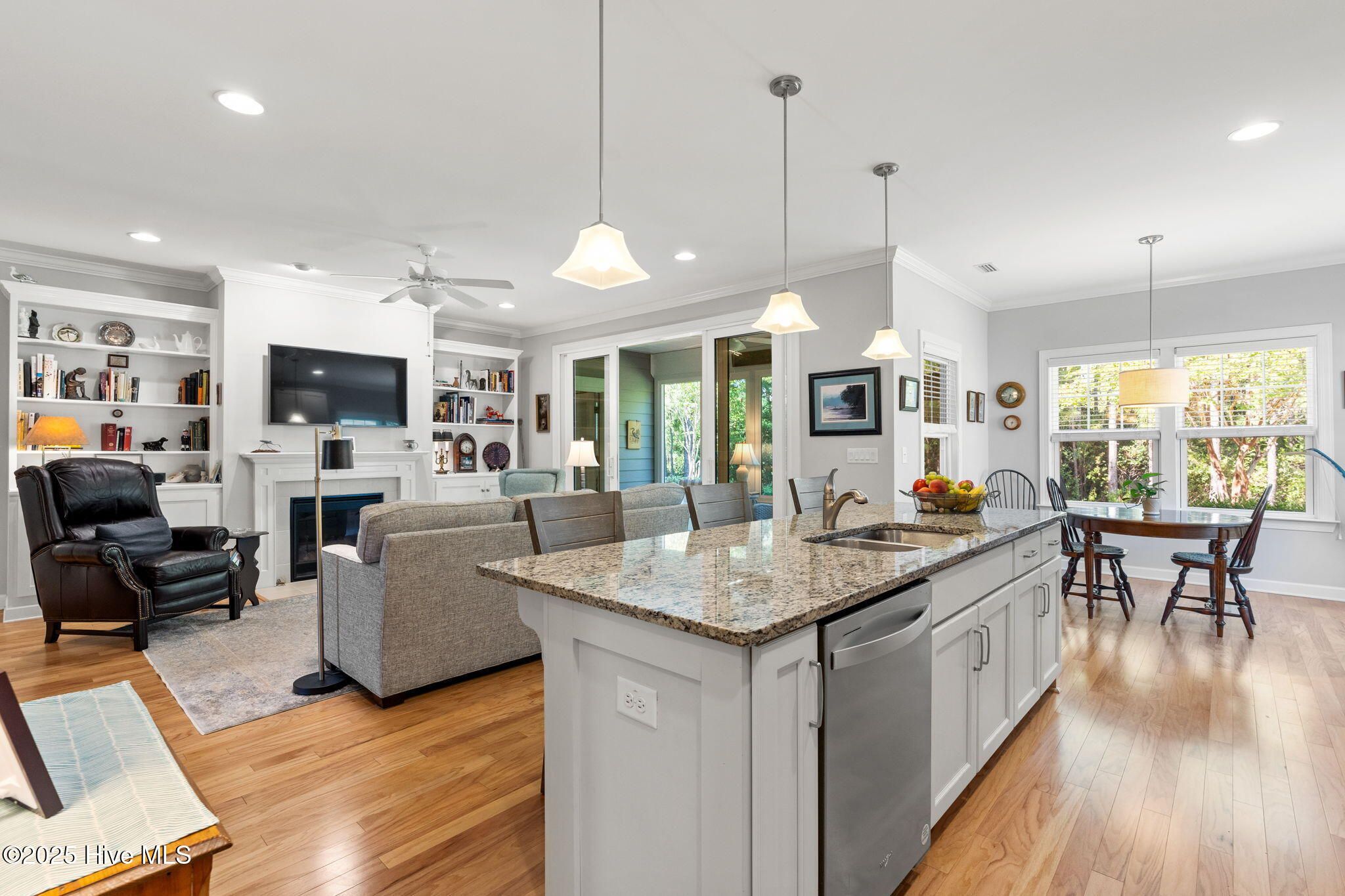 - Master Downstairs, Walk-In Closet(s), Entrance Foyer, Solid Surface Counters, Bookcases, Kitchen Island, Ceiling Fan(s), Pantry, Walk-In Shower, Kitchen/Dining Combo, Separate/Formal Dining Room