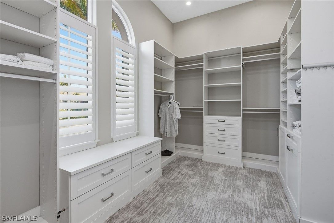 - Breakfast Bar, Built-in Features, Bedroom on Main Level, Bathtub, Closet Cabinetry, Separate/Formal Dining Room, Dual Sinks, Entrance Foyer, Eat-in Kitchen, French Door(s)/Atrium Door(s), High Ceilings, Kitchen Island, Multiple Shower Heads, Custom Mirrors, Main Level Primary, Pantry, Separate Shower, Cable TV, Vaulted Ceiling(s), Bar, Walk-In Closet(s)