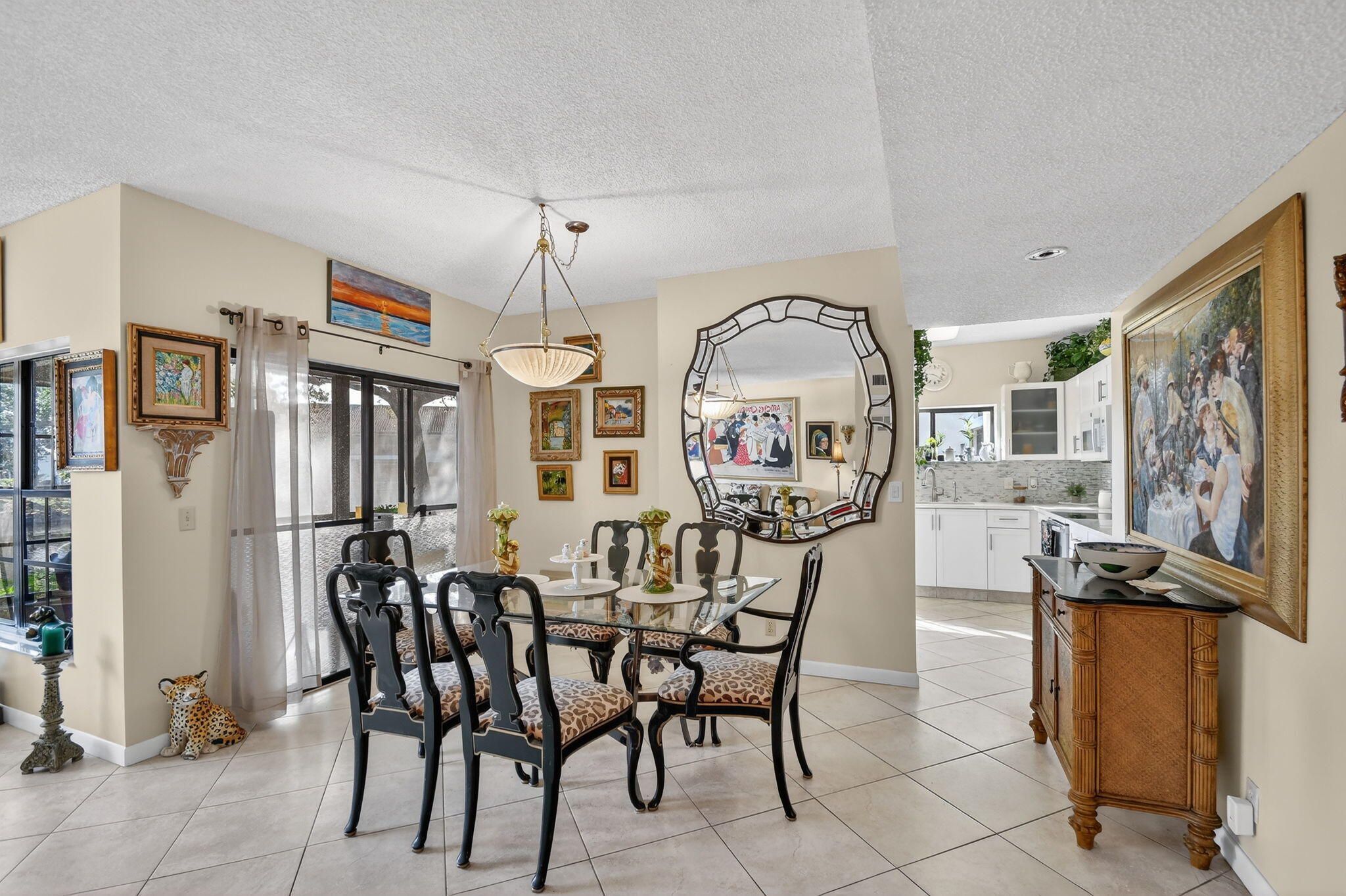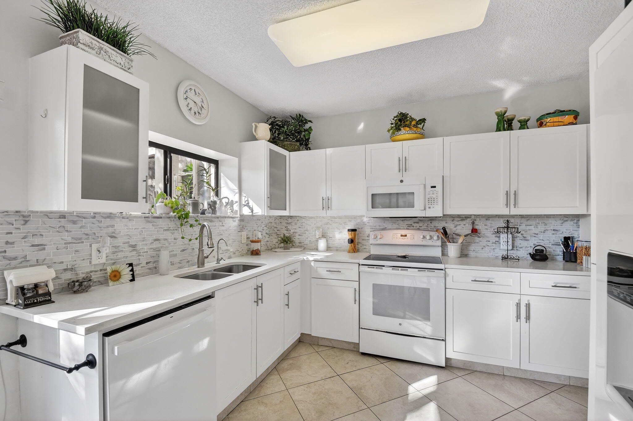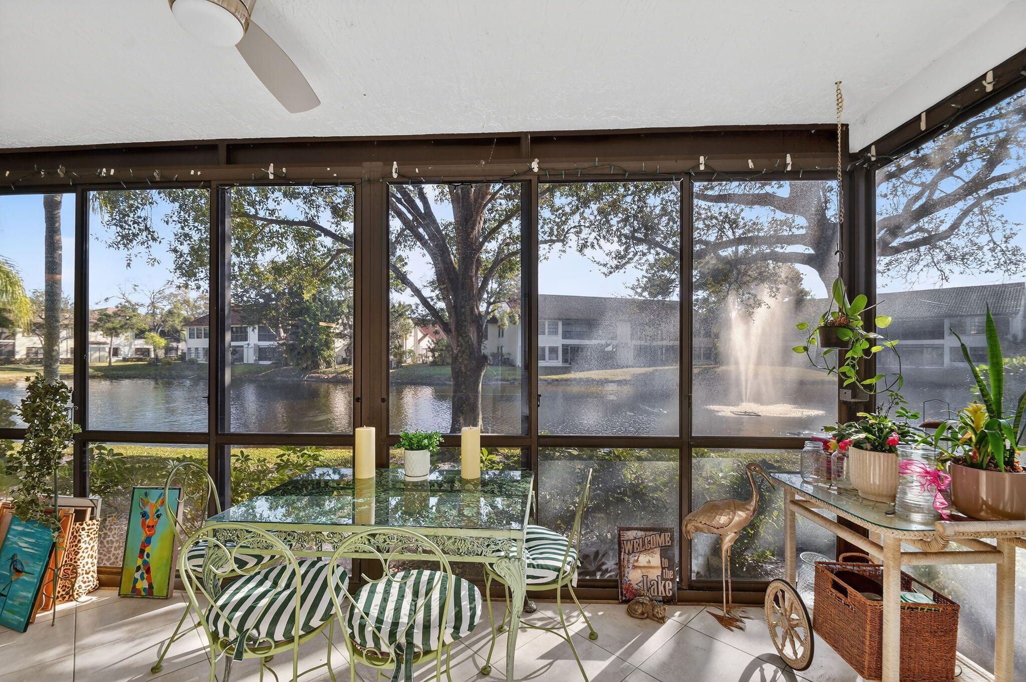 Experience refined lakefront living in this elegantly updated 3 BR, 2BA residence. Wake up to tranquil water views framed by three shimmering fountains, creating a resort like ambiance right in your backyard and home. Inside, sleek tile flooring, contemporary bathroom vanities, and a sunlit eat in kitchen elevate everyday comfort. A charming breakfast nook and premium water filtration system add thoughtful touches. Residents also enjoy an inviting clubhouse ideal for gatherings and relaxation. A truly serene retreat, beautifully upgraded and ready to impress. Must see to this beauty.