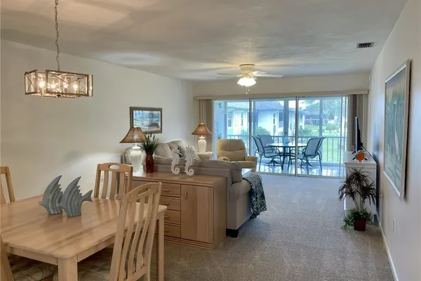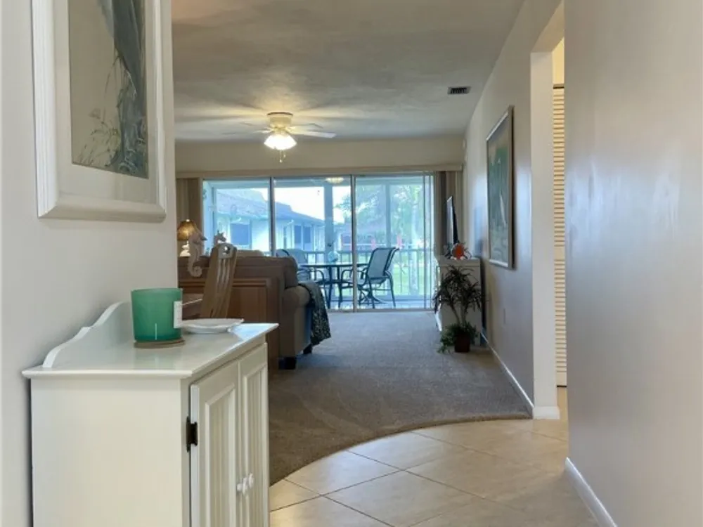 Welcome to this fun, friendly and highly sought after community, perfect for both year-round or seasonal living! Affordable HOA fees with an extensive list of inclusions, no special assessments, and located in Flood Zone X500, which does not require flood insurance. The interior has been freshly painted and carpeted throughout, creating a move-in-ready space; comes mostly furnished. Ideally located just minutes from shopping, golf courses, beaches, and downtown Naples, this beautifully updated 2nd-floor unit offers an exceptional indoor-outdoor living experience. The sliding glass-enclosed lanai adds extra air-conditioned living space and provides serene views of the tranquil pool and courtyard. Additional conveniences include an in-unit washer/dryer, assigned covered parking, and a separate storage closet. Plus, your small furry friend is welcome in this expanded living area, which boasts peaceful views of the landscaped ground. This is truly a hidden gem in Naples!