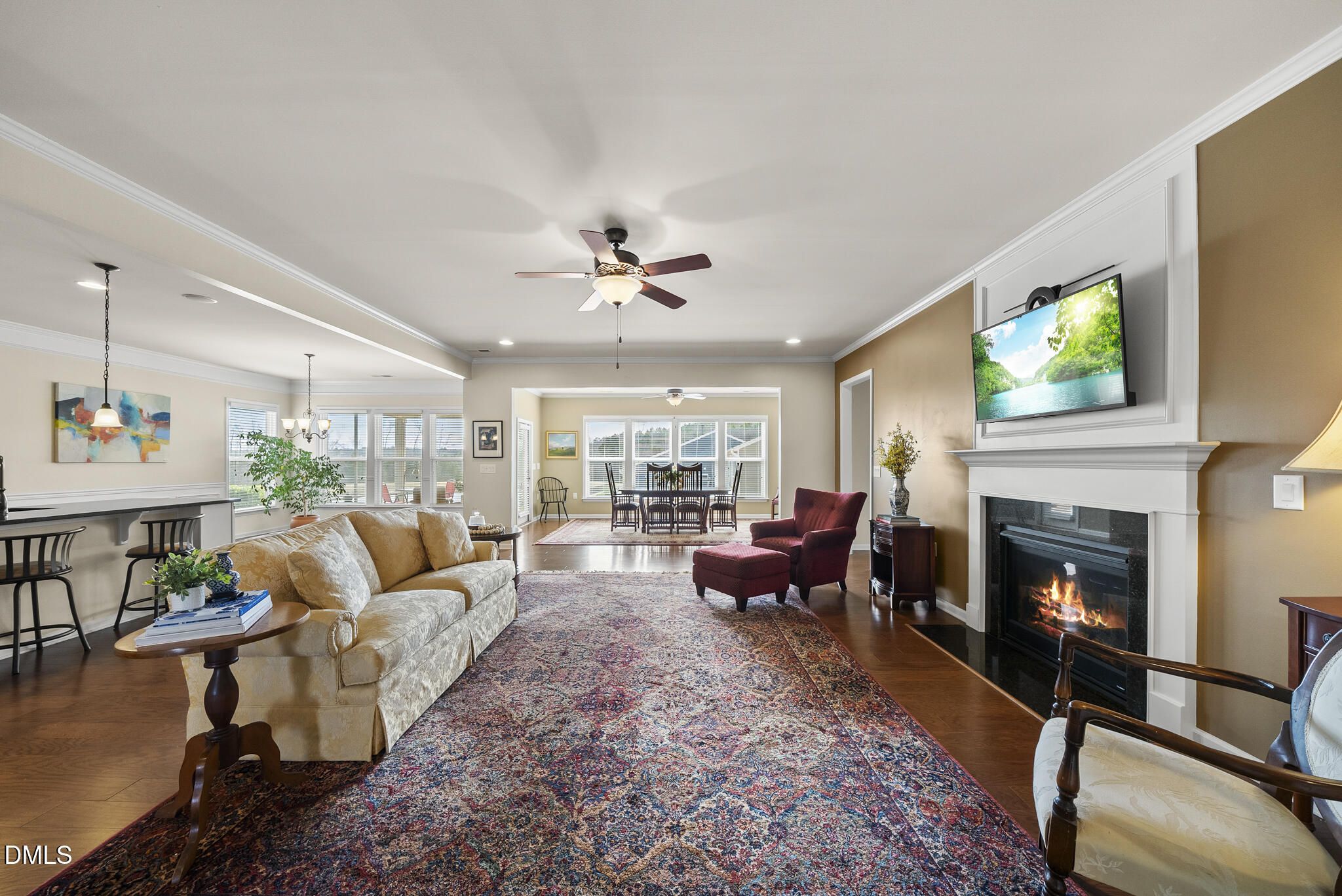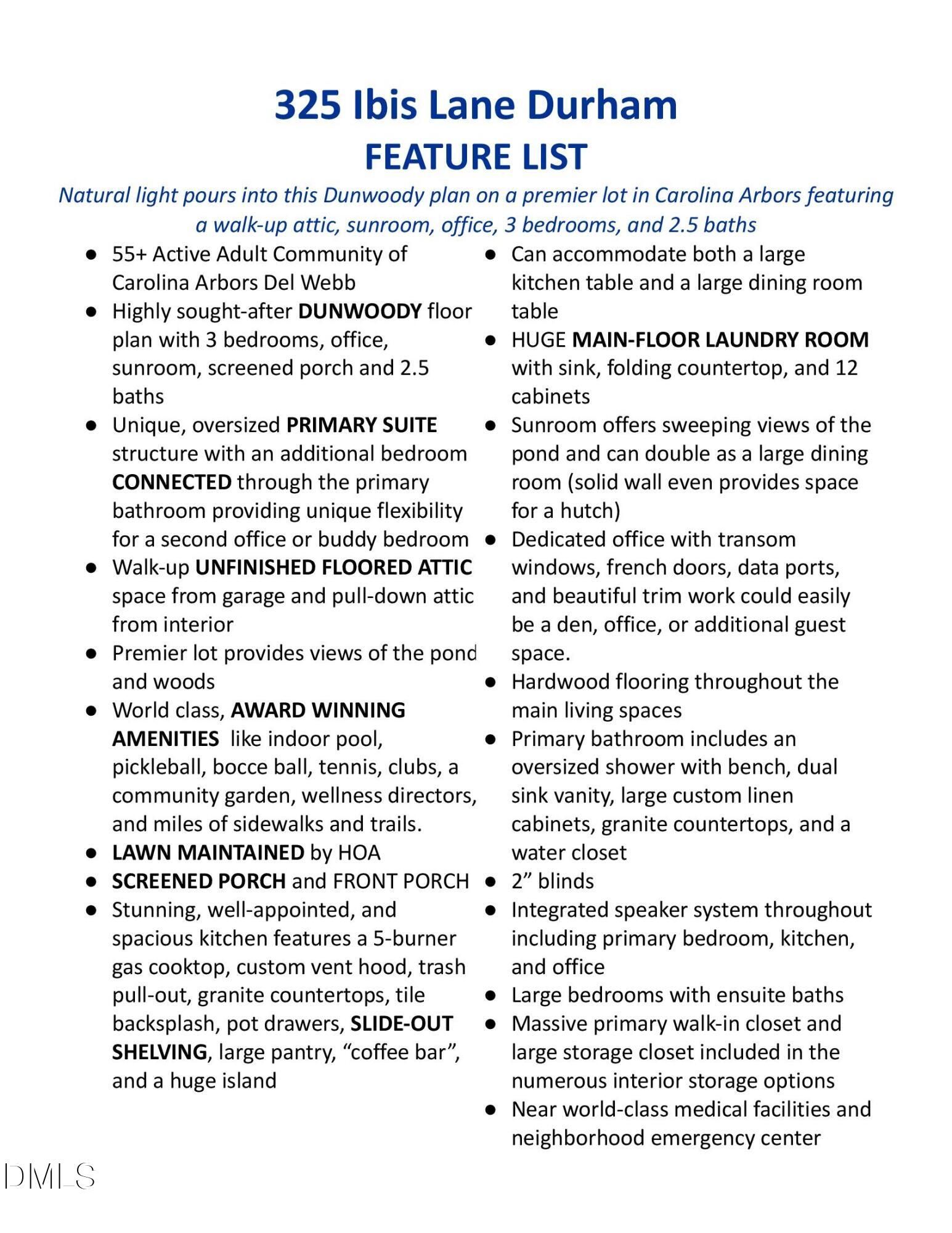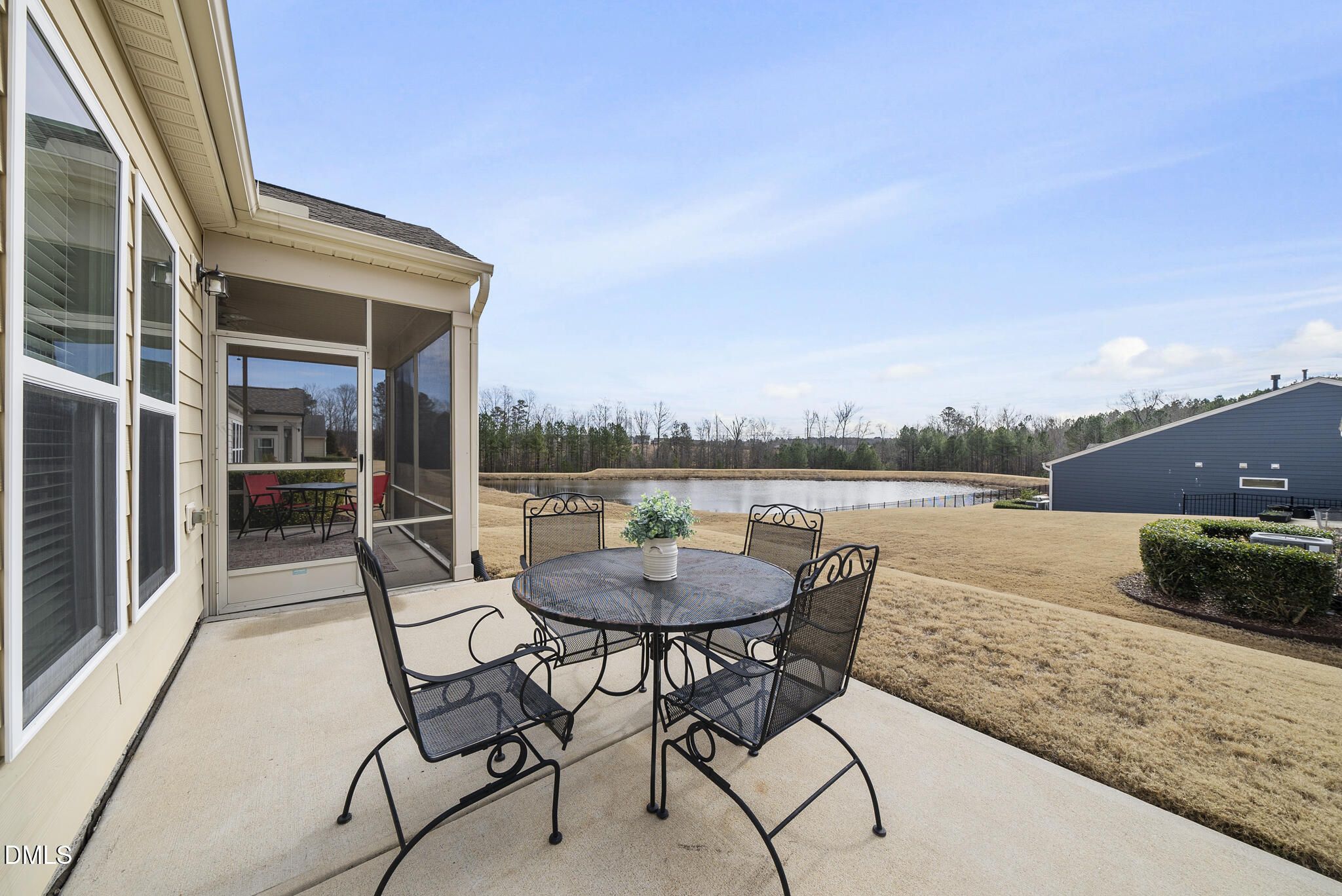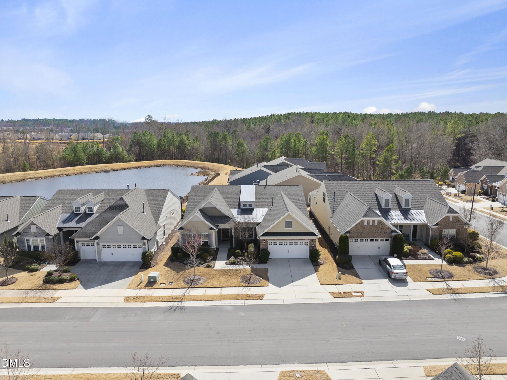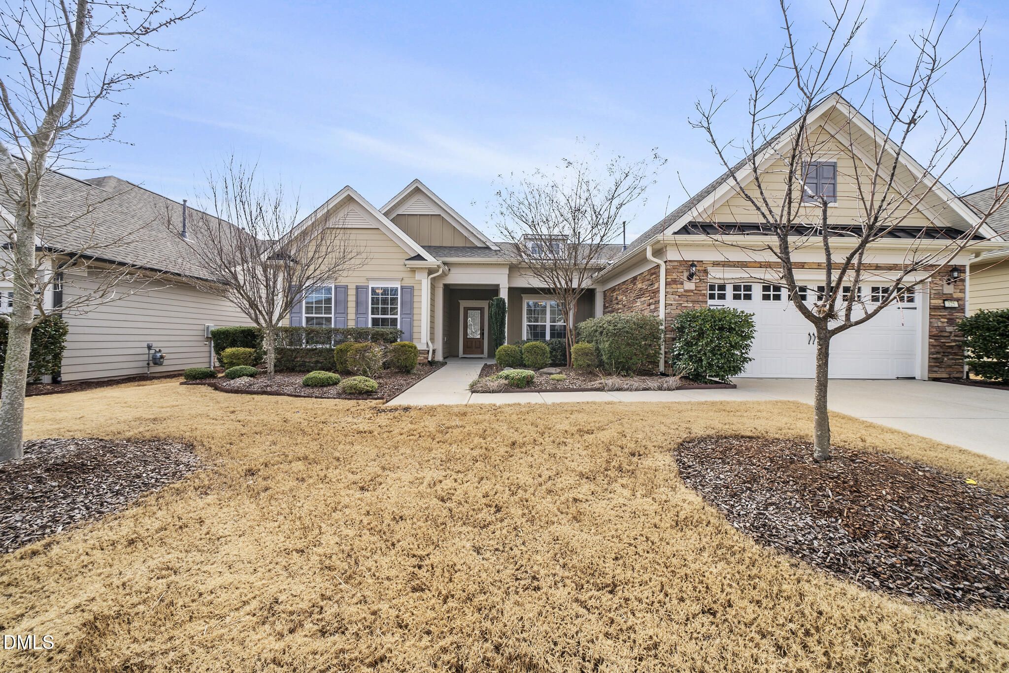 Over 2,700 square feet of exceptional single level living on a premier pond view lot in one of the Triangle's most sought after 55+ communities. In the award winning community of Carolina Arbors, lifestyle is everything. Residents enjoy a vibrant social calendar, indoor pool, pickleball courts, walking trails, and a beautifully designed clubhouse that make this neighborhood so beloved. The highly sought after Dunwoody plan offers an expansive yet intuitive layout, providing generous gathering spaces balanced by private retreats and remarkable storage, all on one level. The primary suite feels truly substantial, and its adjoining flex bedroom with access from both the hallway and primary bath provides exceptional flexibility without disrupting flow. Natural light fills the sunroom and main living areas, drawing your eye toward peaceful pond and wooded views. Whether enjoying quiet mornings on the screened porch or hosting friends with ease, the home feels both open and grounded. Beyond the neighborhood, you are just minutes from the conveniences of Brier Creek and the greater Raleigh-Durham region, offering world class medical care, exceptional dining, arts and cultural venues, and renowned educational institutions. This is single level living without compromise. Spacious, refined, and thoughtfully designed for the way you want to live now.