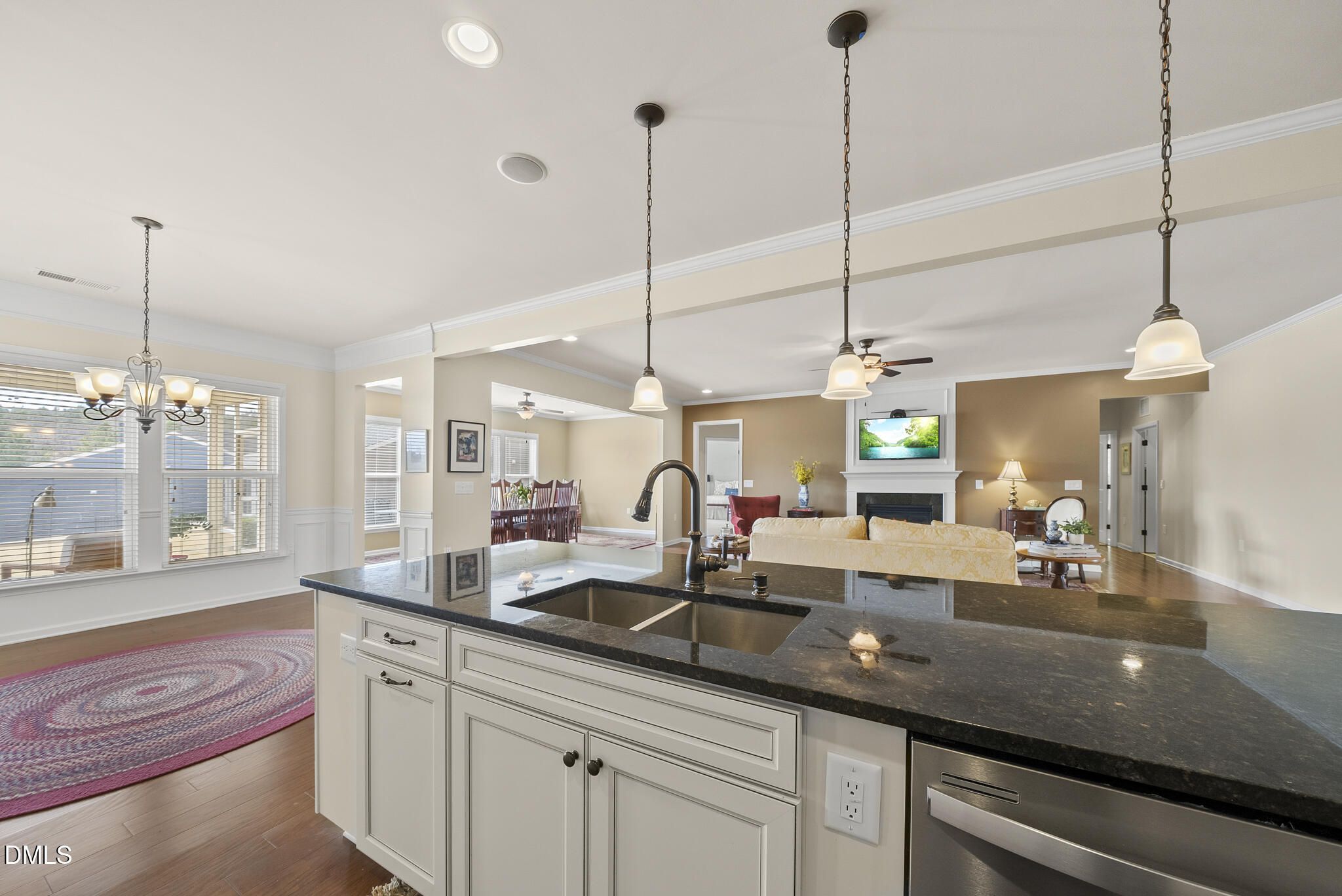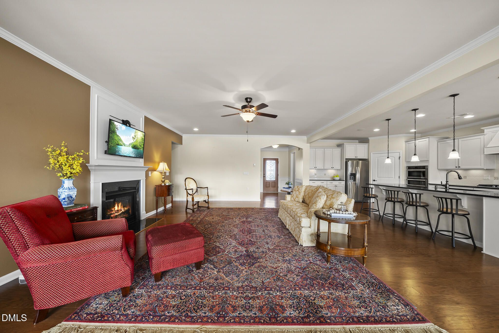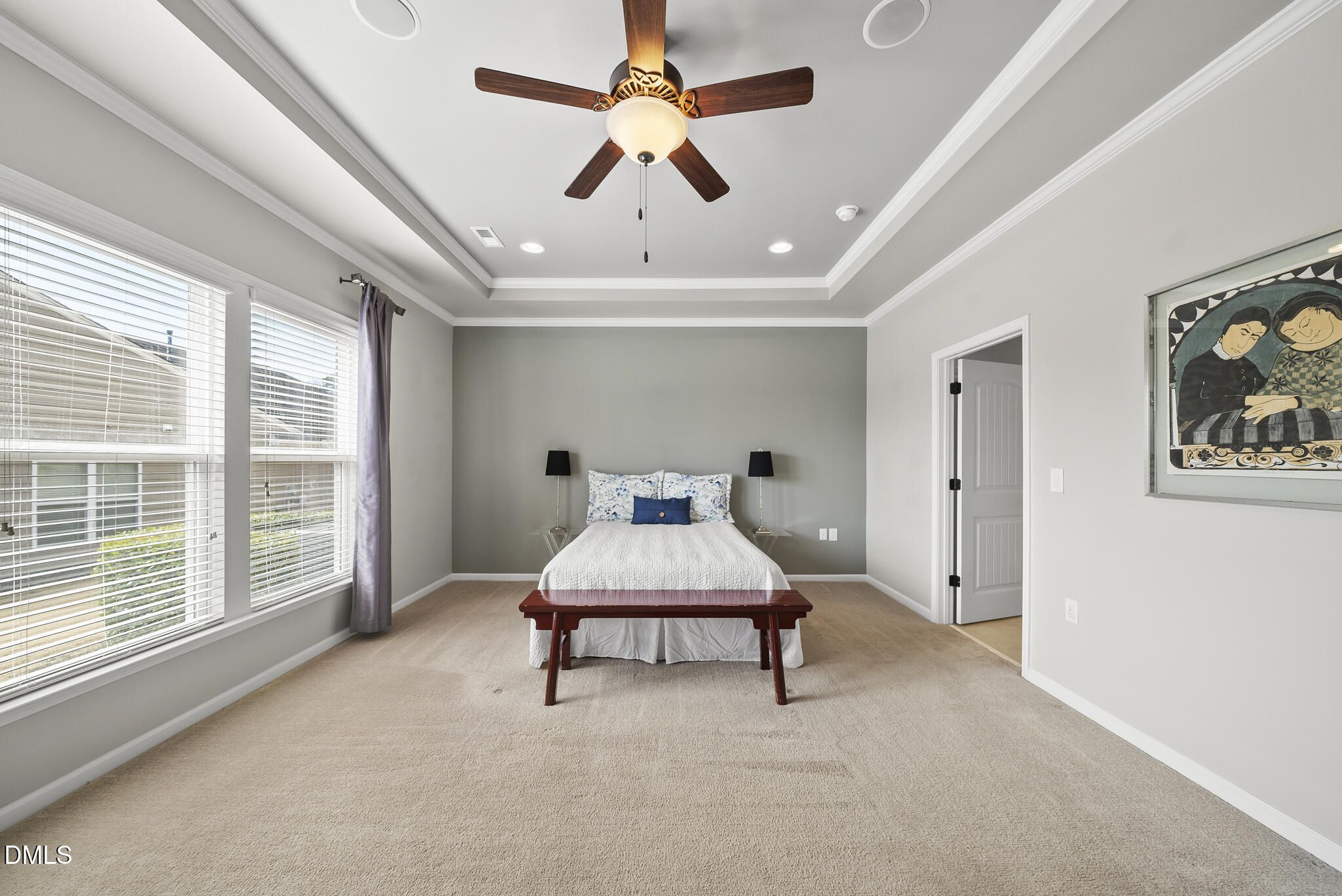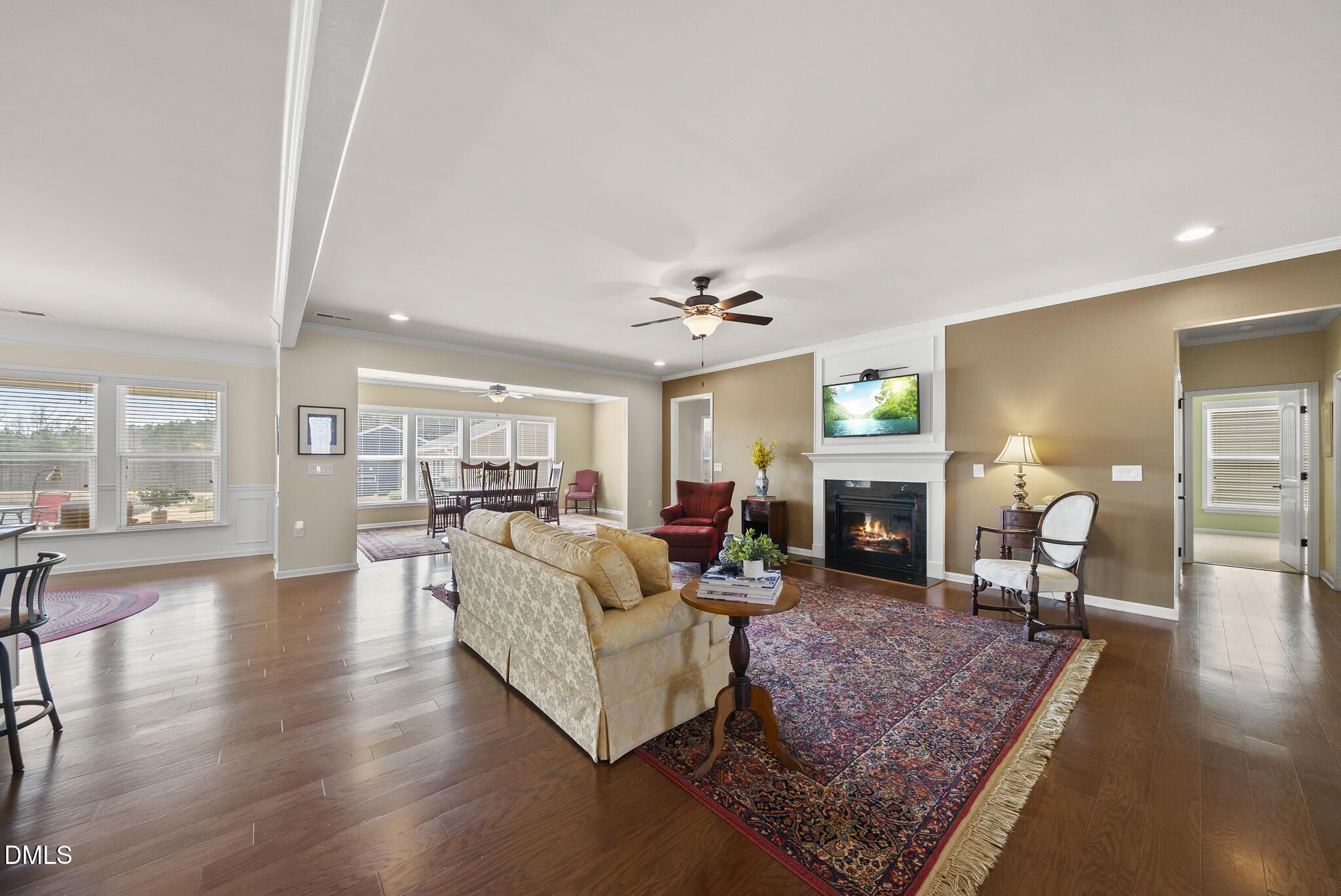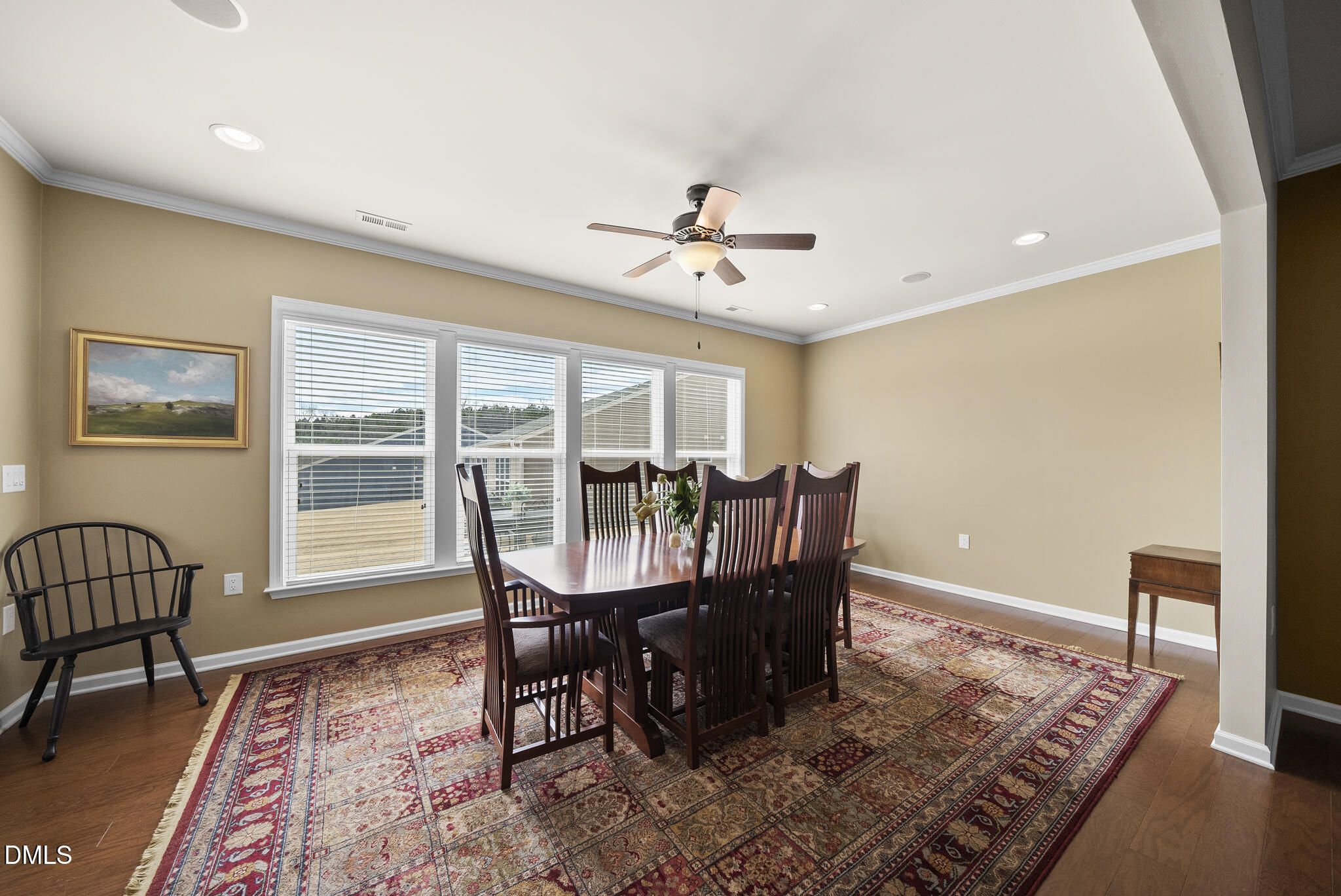 Over 2,700 square feet of exceptional single level living on a premier pond view lot in one of the Triangle's most sought after 55+ communities. In the award winning community of Carolina Arbors, lifestyle is everything. Residents enjoy a vibrant social calendar, indoor pool, pickleball courts, walking trails, and a beautifully designed clubhouse that make this neighborhood so beloved. The highly sought after Dunwoody plan offers an expansive yet intuitive layout, providing generous gathering spaces balanced by private retreats and remarkable storage, all on one level. The primary suite feels truly substantial, and its adjoining flex bedroom with access from both the hallway and primary bath provides exceptional flexibility without disrupting flow. Natural light fills the sunroom and main living areas, drawing your eye toward peaceful pond and wooded views. Whether enjoying quiet mornings on the screened porch or hosting friends with ease, the home feels both open and grounded. Beyond the neighborhood, you are just minutes from the conveniences of Brier Creek and the greater Raleigh-Durham region, offering world class medical care, exceptional dining, arts and cultural venues, and renowned educational institutions. This is single level living without compromise. Spacious, refined, and thoughtfully designed for the way you want to live now.