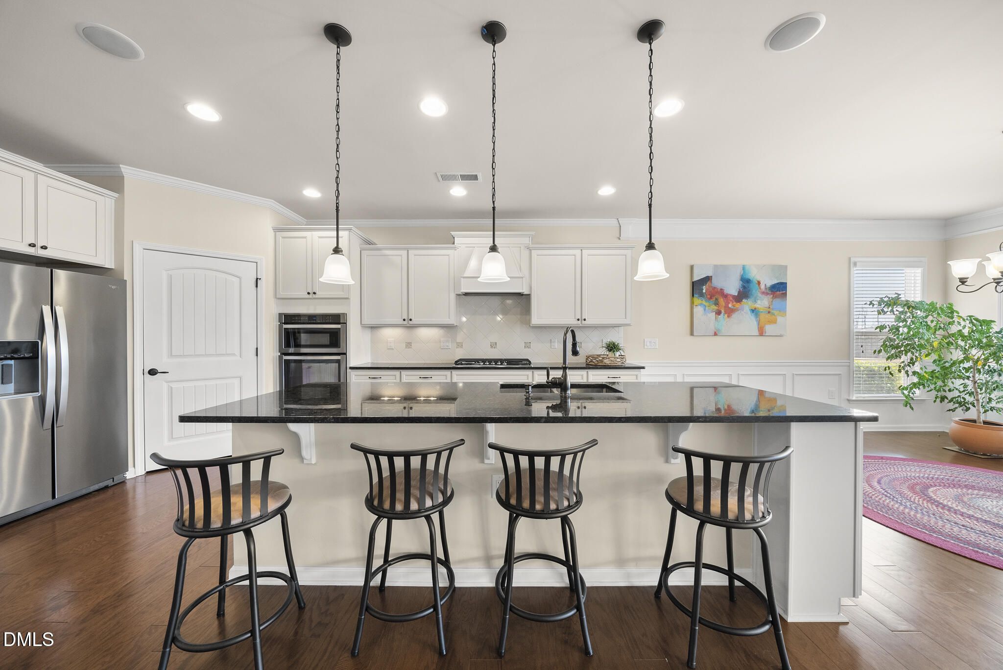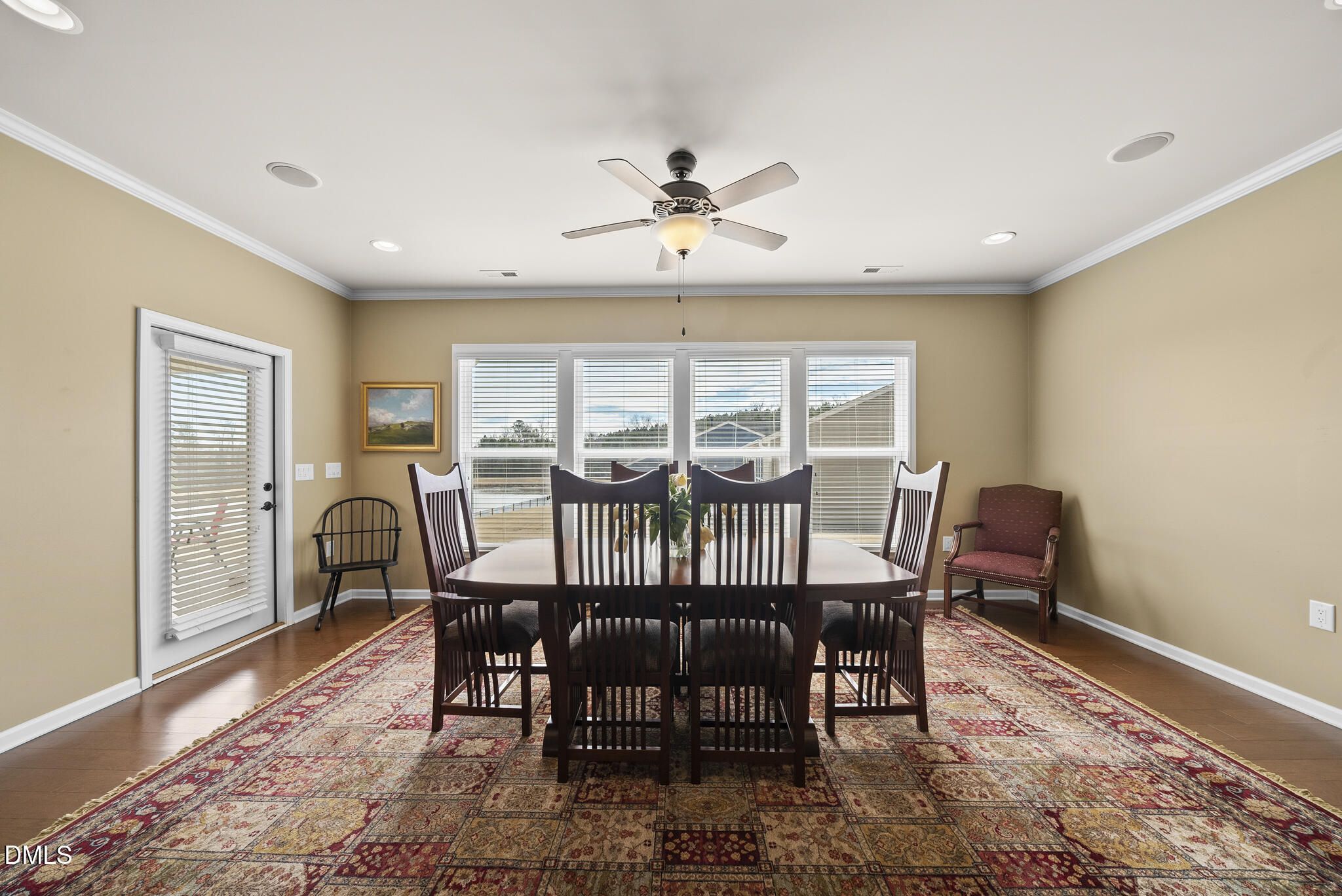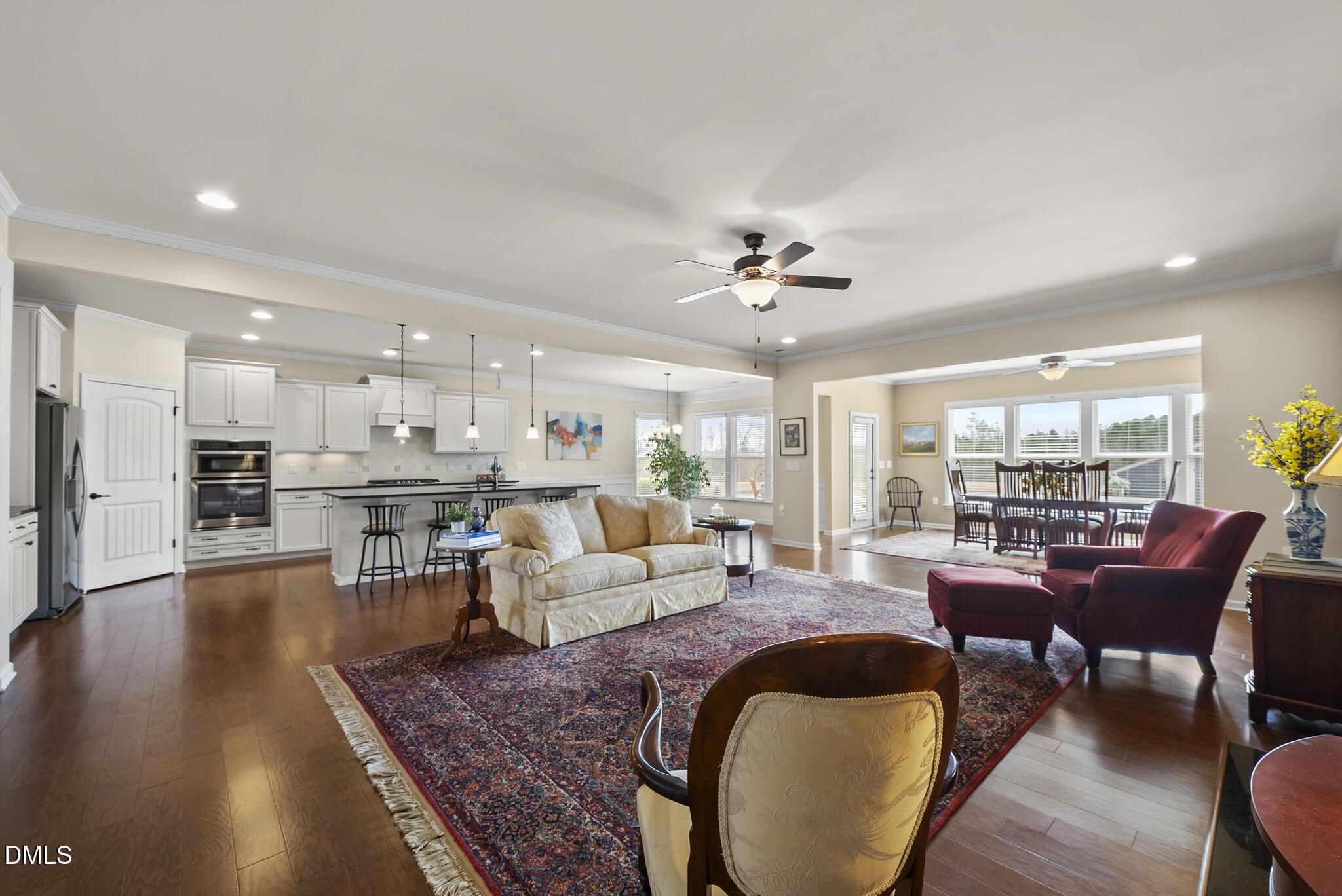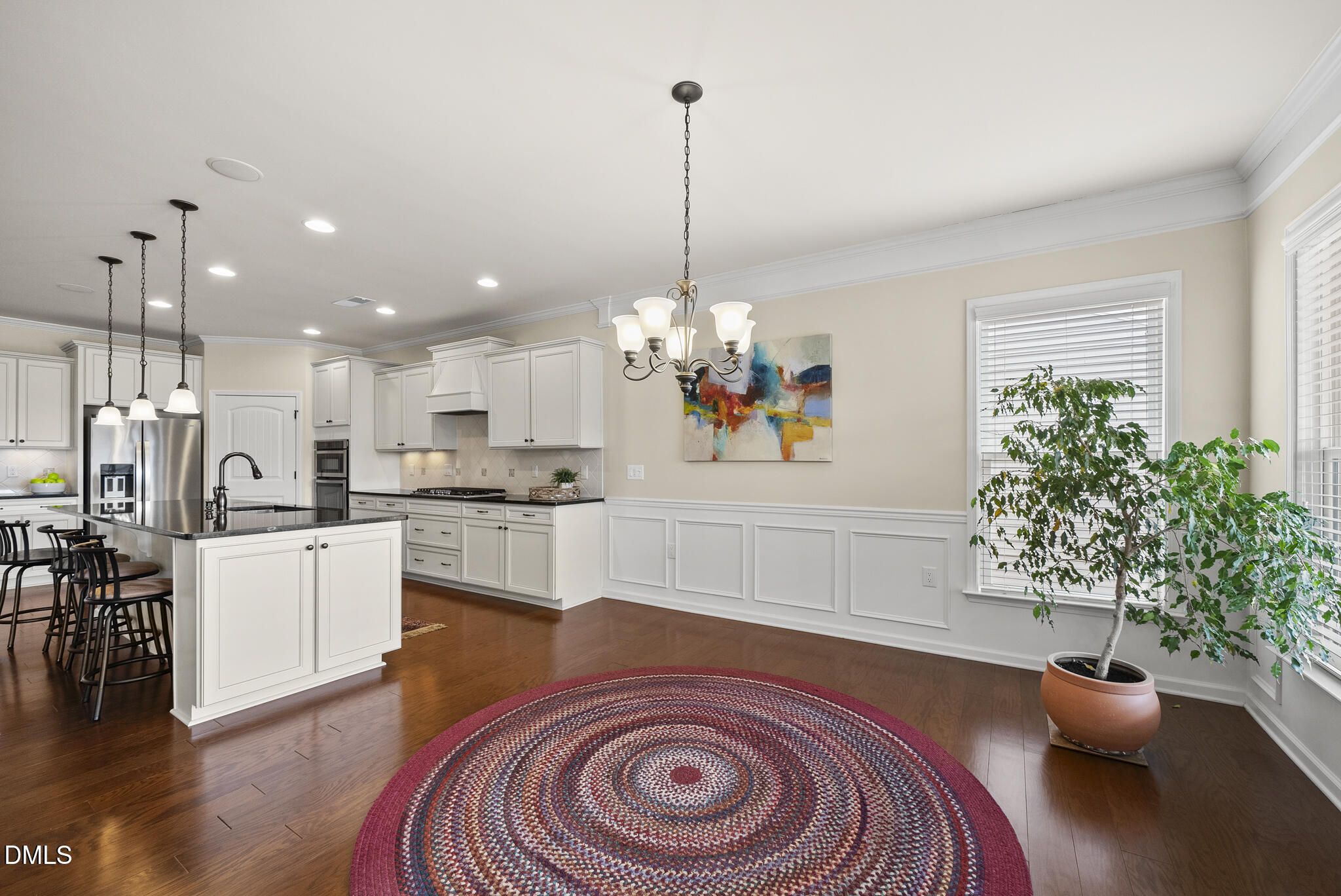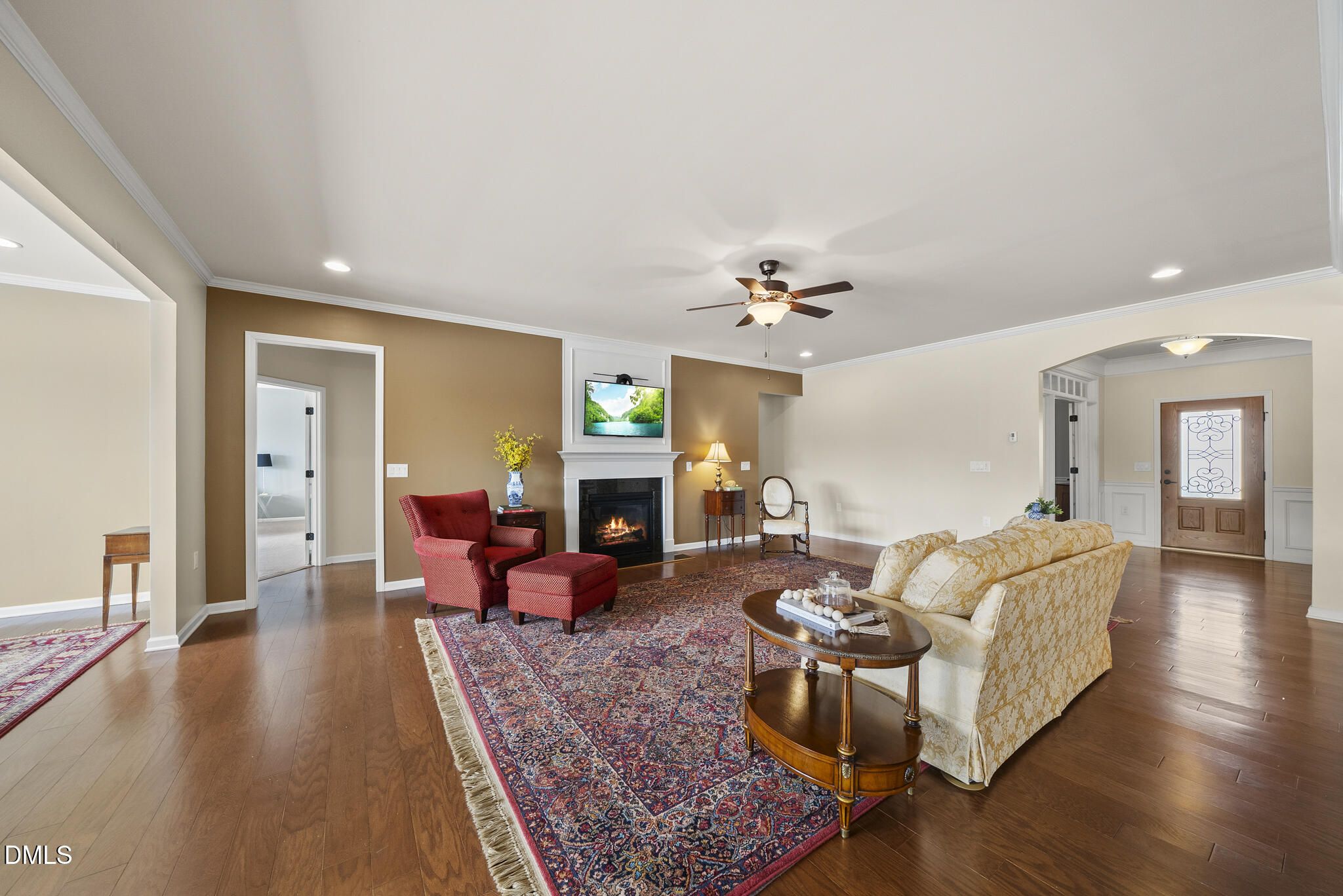 Over 2,700 square feet of exceptional single level living on a premier pond view lot in one of the Triangle's most sought after 55+ communities. In the award winning community of Carolina Arbors, lifestyle is everything. Residents enjoy a vibrant social calendar, indoor pool, pickleball courts, walking trails, and a beautifully designed clubhouse that make this neighborhood so beloved. The highly sought after Dunwoody plan offers an expansive yet intuitive layout, providing generous gathering spaces balanced by private retreats and remarkable storage, all on one level. The primary suite feels truly substantial, and its adjoining flex bedroom with access from both the hallway and primary bath provides exceptional flexibility without disrupting flow. Natural light fills the sunroom and main living areas, drawing your eye toward peaceful pond and wooded views. Whether enjoying quiet mornings on the screened porch or hosting friends with ease, the home feels both open and grounded. Beyond the neighborhood, you are just minutes from the conveniences of Brier Creek and the greater Raleigh-Durham region, offering world class medical care, exceptional dining, arts and cultural venues, and renowned educational institutions. This is single level living without compromise. Spacious, refined, and thoughtfully designed for the way you want to live now.