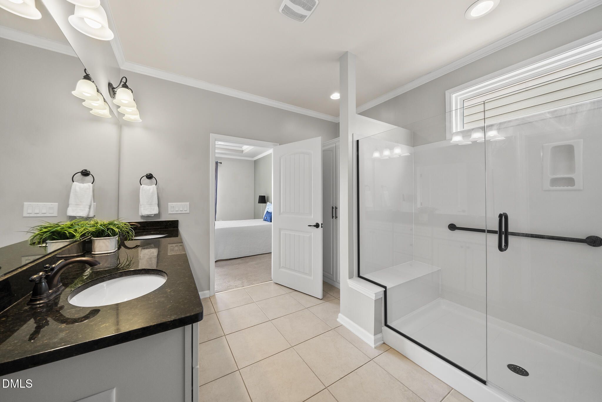 - Crown Molding, Double Vanity, Eat-in Kitchen, Entrance Foyer, Granite Counters, In-Law Floorplan, Kitchen Island, Kitchen/Dining Combo, Living/Dining Room, Open Floorplan, Pantry, Recessed Lighting, Multiple Primary Suites, Separate Shower, Smooth Ceilings, Storage, Walk-In Closet(s), Walk-In Shower, Water Closet(s), Wired for Data, Wired for Sound