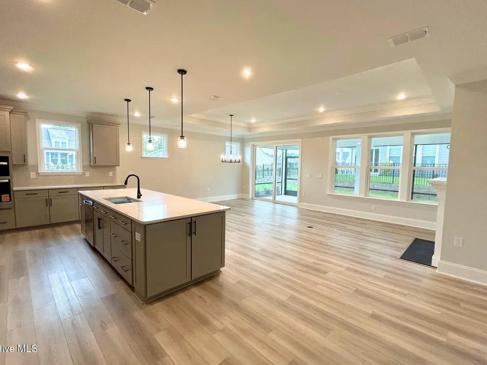 AMAZING CORNER HOMESITE! GOURMET KITCHEN! GAS FIREPLACE! TRAY CEILINGS! EXTRA-LARGE SCREENED-IN PATIO... all this plus much more and only 8 miles to Carolina Beach! The Haven at Riverlights awaits you! By esteemed builder, Pulte, you will love this Palmary floor plan that sits at 1,858 sq. ft. with 2 bedrooms, 2 full bathrooms, a versatile flex-room and a large screened-in patio! Your gourmet kitchen is designed with a stunning, upgraded layout, finished with grey cabinets, white quartz countertops, tile backsplash, Whirlpool stainless-steel gas appliances, and a large island. The large gathering space has been upgraded to include a tray ceiling, gas fireplace, and sliding glass door to your patio, all comfort and style enhancing features! The owners' suite is located off the main gathering space and includes a spacious bathroom with a dual-sink vanity and walk-in shower with tile surround. The secondary bedroom and second full bathroom sit toward the front of the home offering privacy from room-to-room. Some additional features include upgraded interior trim, pull-down attic storage, a 2-car garage, whole house gutters, and Smart Home technology. You don't want to miss out on this home or the great opportunity to live in Riverlights! See you soon!
