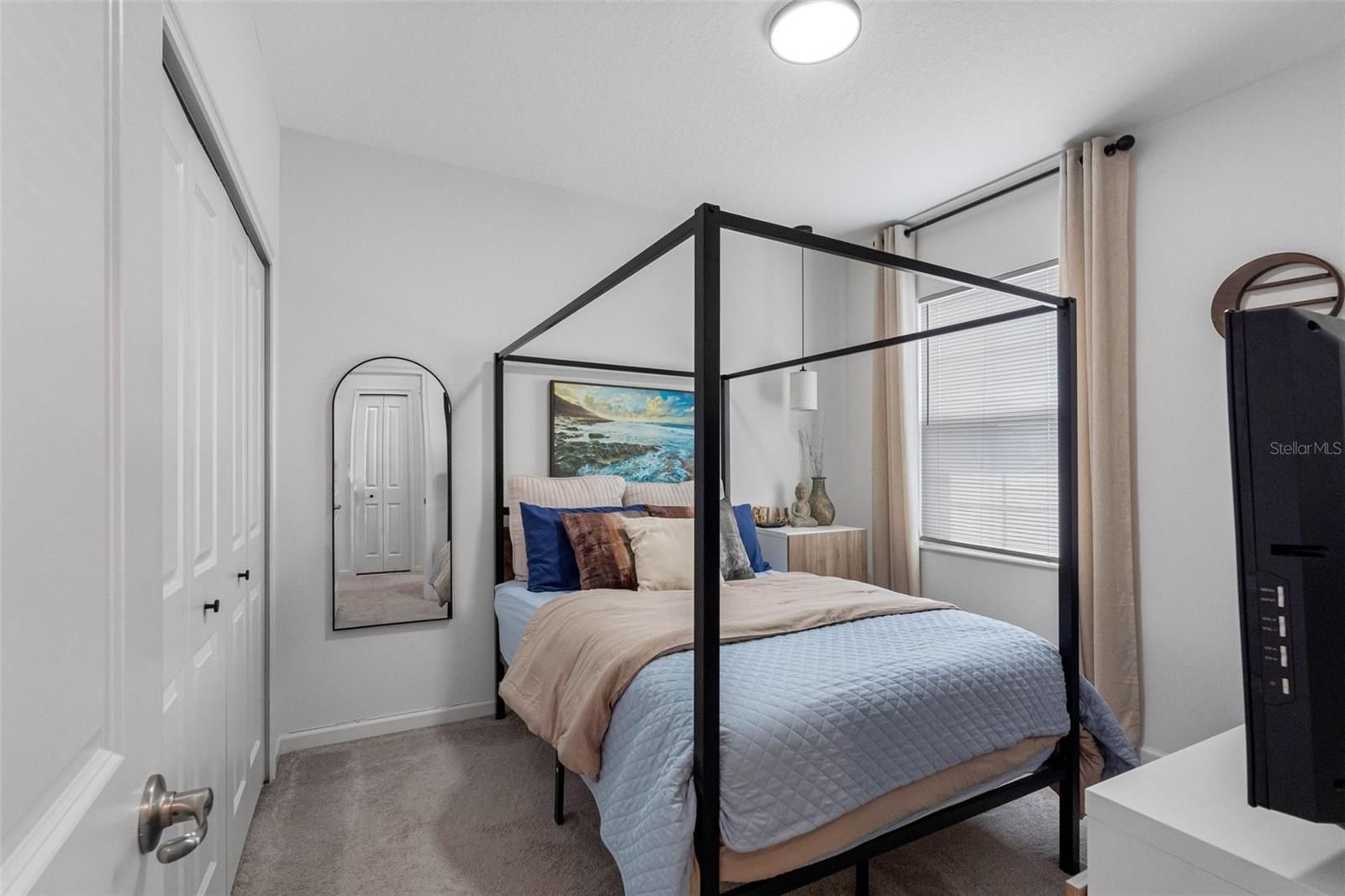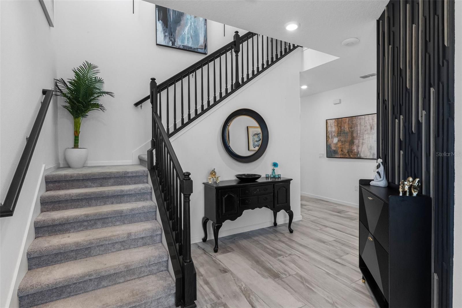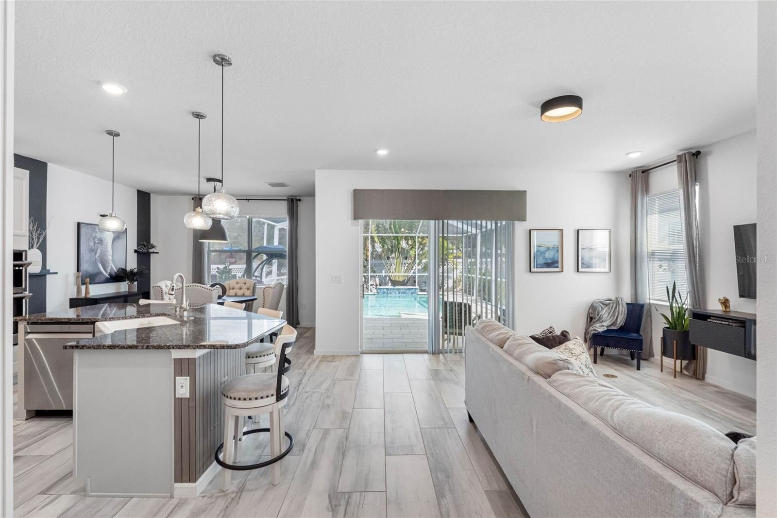 Gorgeous pool home in the gated resort-style community of MiraBay is now ready for a new owner! This well appointed home features many upgrades and designer touches you won't find in your average new construction home. This home boasts 4-bedrooms, 3-baths, a 2 car garage and 2,532 sq ft heated/3,202 SqFt total under roof. There is a bedroom on the first floor currently used as an office with a full bath and 3 bedrooms and a generous sized loft on the second floor with 2 additional bathrooms. This practically new home, built in 2022 by Park Square homes offers a gourmet kitchen, dining, living room open concept with sliders making indoor/outdoor entertaining a breeze. Enjoy beautiful quartz countertops, large format tile backsplash, farmhouse sink, stainless steel appliances, 42" soft gray wood cabinetry, stainless vented hood, gas cooktop and island with counter height seating. The downstairs has soft gray tile throughout. Enjoy swimming year round in your screened-in, heated salt-water pool with shell lock pavers, generous sized covered lanai, mature landscaping and vinyl privacy fence. The staircase has beautiful accent handrails inviting you upstairs to the generous sized loft showcasing a beautiful statement window with views of green space. The spacious master retreat features double door entry, a gorgeous wood coffered ceiling, a walk-in closet with an organization system, an en-suite bath with quartz counters, double sink wood vanity, loads of storage and a gorgeous walk-in shower glass enclosure with elegant floor to ceiling tile. Two more spacious bedrooms are past the loft and share a dual vanity full size bath. Give yourself the gift of resort-style living in MiraBay where you will have access to two pools, an impressive clubhouse, a fitness center with fitness classes, café, lounge, water sports vessels, walking trails, playgrounds, basketball, tennis, and pickleball courts. Golf cart friendly community with friendly neighbors and community events. Make an appointment today so you can start living the lifestyle you deserve.