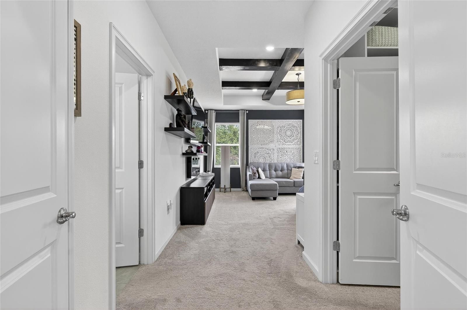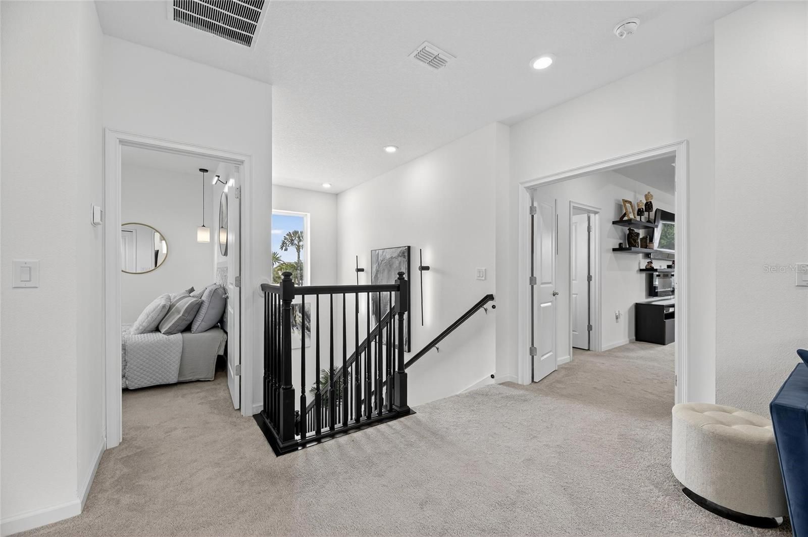 325 Shore Crab Way | 4 Bedrooms | 3 Bathrooms | 2,532 Sq Ft | Pool Home | Corner Lot 325 Shore Crab Way is a 4-bedroom, 3-bath, 2,532 sq ft pool home on a corner lot in the gated waterfront community of Mirabay. Built by Park Square Homes, the Barcelona floorplan blends comfort and style with an open layout that flows easily to the outdoor living space. The backyard retreat features a sparkling heated saltwater pool with a sun shelf and water feature, creating the perfect setting to cool off, entertain, or simply relax in privacy. Inside, the kitchen showcases quartz countertops, a custom backsplash, 42-inch cabinetry, upgraded lighting, stainless steel appliances including a Samsung refrigerator, and a sleek curved center island with seating for four and custom wall trim. Wood-look tile planks run throughout the main floor, where the kitchen, dining, and living areas connect seamlessly, all with unobstructed views of the new pool. Custom wall features and upgraded fixtures enhance the living and dining spaces. A flexible main-floor room works as an office or 4th bedroom, paired with a full bath. Upstairs, the spacious primary suite includes a coffered ceiling, statement wall, upgraded lighting, a massive walk-in closet, and an en-suite bath with dual vanities and a large walk-in shower with floor-to-ceiling tile. The second floor also includes a versatile loft, laundry room, and two additional bedrooms. As a Mirabay resident, you’ll enjoy resort-style amenities: two pools, clubhouse, a 24-hour fitness center, café, lounge, walking trails, playgrounds, basketball, tennis, and pickleball courts, plus access to watersports equipment. The neighborhood is golf-cart friendly, and the waterfront setting means breezes and sunsets are part of everyday life. If you’re looking for a home that pairs laid-back Florida living with thoughtful upgrades, 325 Shore Crab Way is ready to welcome you. Schedule your private showing today and discover why Mirabay living is so sought after.
