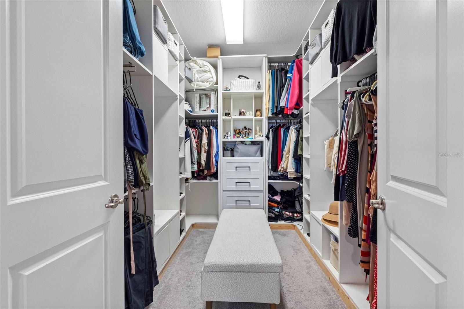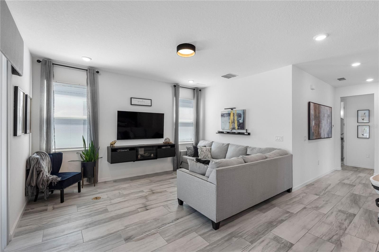 - Ceiling Fan(s), Coffered Ceiling(s), High Ceilings, Kitchen/Family Room Combo, L-Shaped Dining Room, Living/Dining Room, Open Floorplan, Upper Level Primary, Smart Home, Solid Surface Counters, Split Bedrooms, Thermostat, Tray Ceiling(s), Walk-In Closet(s), Window Treatments