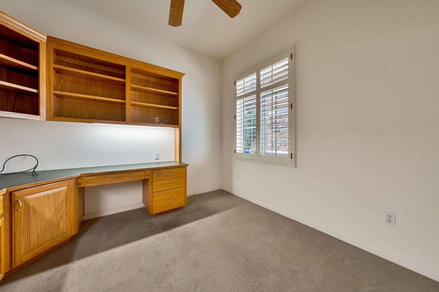 Welcome to Sun City Roseville This home boasts of spacious double door entry & opens to formal living/dining & is appointed with crown molding. Chef's Kitchen features plenty of cabinet space & cabinet pull-outs & overlooks the family room making this a perfect spot for entertaining. Family room has gas burning fireplace & access to beautiful well maintained enclosed patio & backyard. Primary suit is light & bright w/backyard access & features adjoining Bath with spacious walk-in closet, mirrored doors, dual sinks, soaking tub & walk-in shower. Guest suite is located at opposite end with private Bath & walk-in closet. Spacious office can be used as a 3rd bedroom. Plenty of storage in this full 3 car garage & cabinets and newer HVAC. Custom features plantation shutters, crown molding, ceiling fans. This home has beautiful curb appeal and large backyard with patio. Enjoy the amenities of Sun City including golf, gym, pool, pickleball, tennis, restaurant & much more. Some photos have been virtually staged