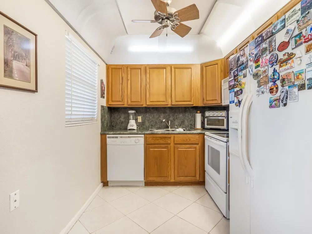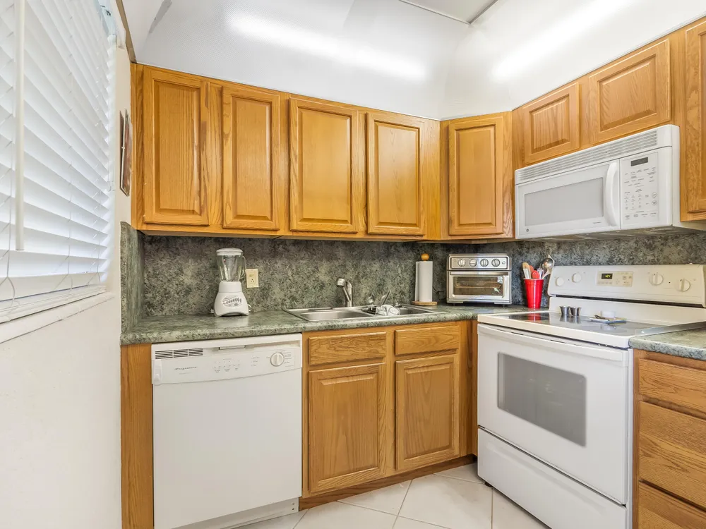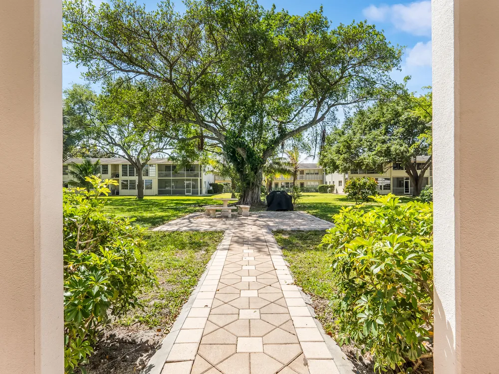 Enjoy the comfort and convenience of this bright, sunlit ground-floor corner unit, featuring tile flooring throughout, an updated kitchen, and a cozy patio overlooking a serene garden. Nestled in a lively 55+ community, this home offers access to an impressive range of amenities, including 24/7 gated security, a community bus, heated swimming pools, tennis and pickleball courts, a craft room, clubhouse, cafe, billiards room, theater, on-site dining, shuffleboard, and bocce ball courts. Perfectly located just minutes from beautiful beaches, popular restaurants, and shopping destinations, this is the ideal spot for those looking to enjoy an active, social lifestyle.