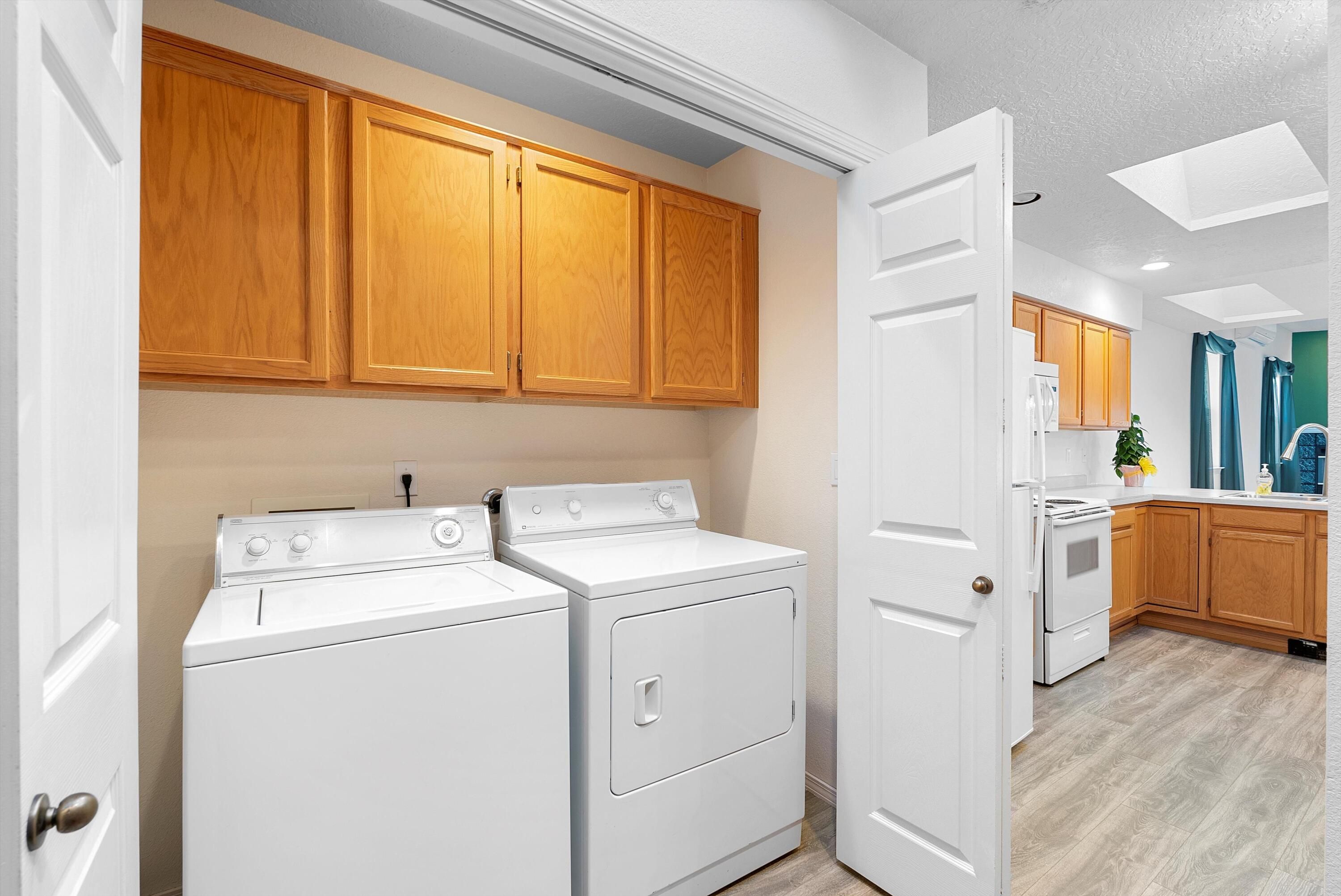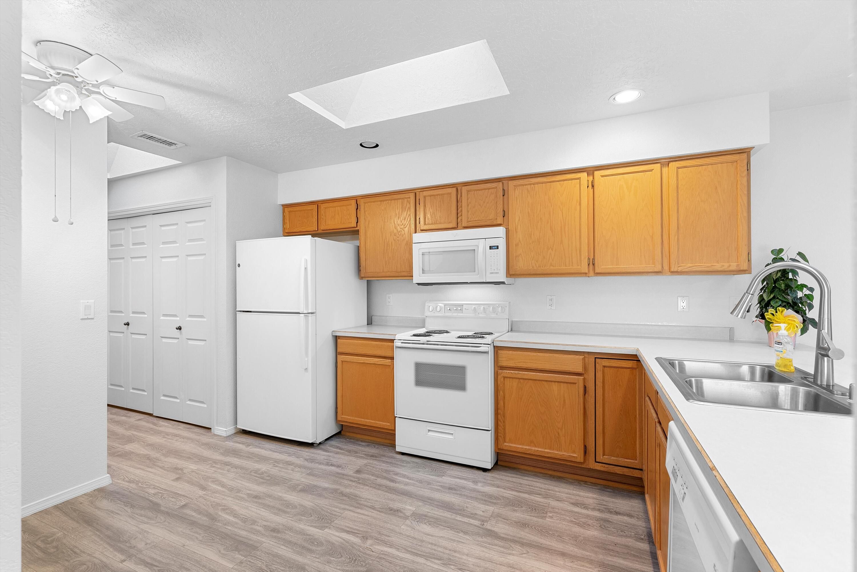 Welcome to this beautiful home in The Esplande, a vibrant 55+ community! This well-maintained home features two spacious bedrooms and two full bathrooms. Skylights fill the home with natural light, creating a warm and inviting atmosphere throughout. Perfect for comfortable living and easy entertaining! A must see for anyone looking to live in the heart of Rio Rancho. *New Windows 2024* *New kitchen flooring 2025* *Mini-split installed 2022* *roof maintenance 2025*