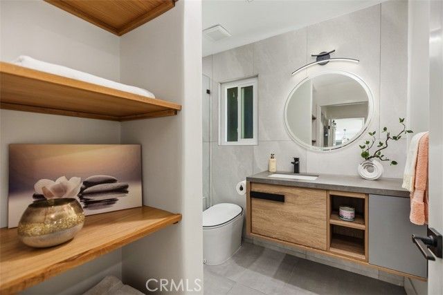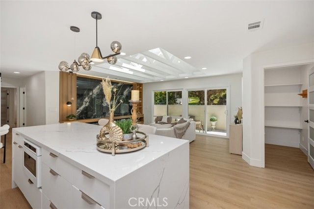 Experience unparalleled luxury in this impeccably remodeled, move-in-ready home that seamlessly blends sophistication with modern comfort. From the moment you step inside, you're greeted by an abundance of natural light and breathtaking media/fireplace wall that creates an inviting and serene ambiance. The sunny patio serves as a versatile space, perfect for relaxation or entertaining guests. The home's transformation includes a comprehensive renovation featuring central HVAC and a series of bespoke architectural enhancements. Notably, the living room boasts a stunning skylight and a custom wood and tile media surround, complemented by tailored lighting solutions. The residence exudes warmth and elegance throughout. The gourmet kitchen is a chef's dream, equipped with custom cabinetry, quartz countertops, and top-of-the-line appliances and fixtures. A generous waterfall-style island provides ample counter space and serves as a central hub for social gatherings. Retreat to the luxurious master suite, thoughtfully designed en-suite bathroom features a spacious, custom-tiled shower and premium appointments, offering a spa-like experience. Additional highlights include abundant built-in storage solutions and a conveniently located stackable washer and dryer in the hall closet. Parking is easily accessible, adding to the home's convenience. Residents of Laguna Woods Village enjoy access to an array of exceptional amenities, including golf, swimming, tennis, and a vibrant selection of clubs and social activities, all within a premier 55+ community. For a comprehensive view of this remarkable home, please click on the 360 Virtual Tours (VT) link.