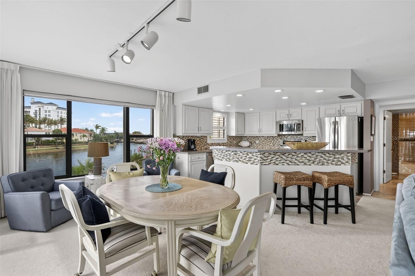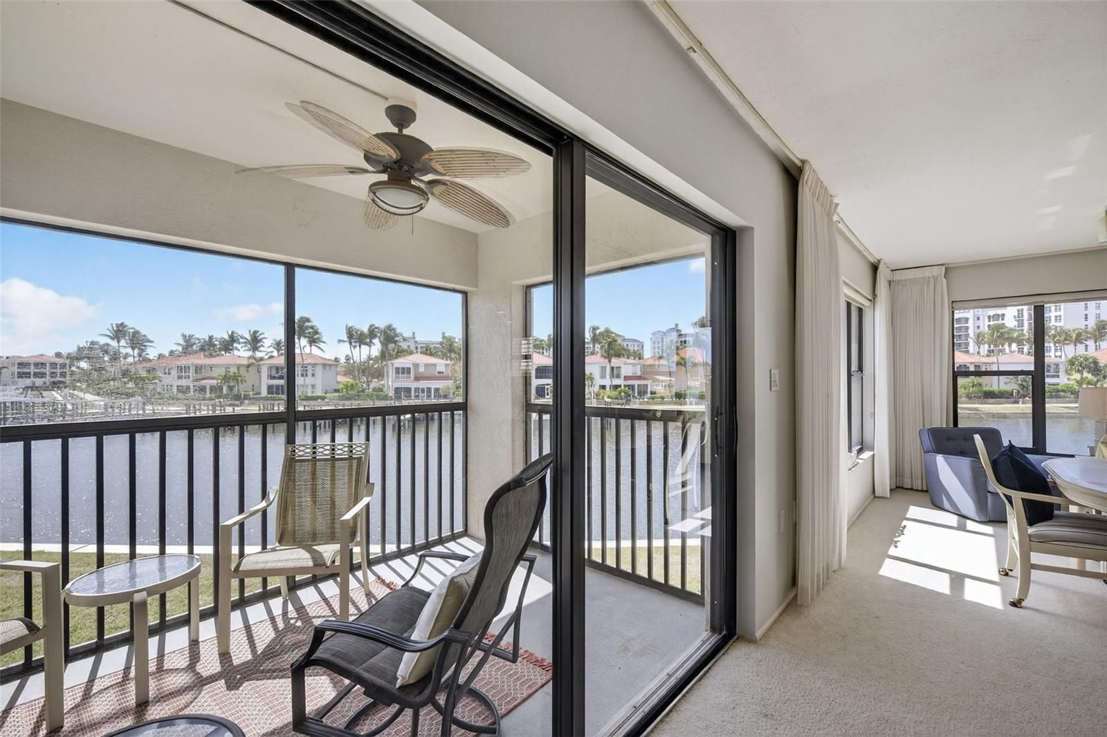 MARINA NORTH SHORE/BURNT STORE MARINA - SPECTACULAR PANORAMIC WATER VIEWS FROM THIS CORNER UNIT LOCATED AT THE END OF BUILDING 3, ON THE 2ND FLOOR IN MARINA NORTH SHORE. THIS CONDO OVERLOOKS THE DOCKS & THE WATERWAY OUT TO CHARLOTTE HARBOR, WHICH GIVES YOU A LONG DISTANCE VIEW PLUS YOU HAVE A CLOSE UP VIEW OF THE WATER FROM THE GREAT ROOM, PRIMARY BEDROOM & LANAI. IT IS A BEAUTIFUL 2 BEDROOM, 2 BATHROOM CONDO THAT IS TURNKEY FURNISHED WITH 1516 FEET UNDER A/C WITH TRAVERTINE TILE IN THE FOYER, KITCHEN & BATHROOM. Condo is located on the 2nd floor (there is an elevator in the middle of the building). It is a split bedroom floor plan that has 2 Bedrooms (with the possibility of having 2 Primary Suites), 2 Bathrooms, 2 Lanais & an assigned carport with electric to charge your golf cart. It is light & bright. Being an end unit, you have additional side windows, which gives you the feeling of living in a single family home. The Screened entryway leads you into the foyer where there is a large storage closet & then into the spacious great room. Kitchen has lots of cabinets with granite counter tops, Stainless Steel appliances & new recessed lighting. Primary Bedroom is 14x16 with a private entrance out to the lanai overlooking the waterway. Primary Bath has a large shower & a long vanity with dual sinks. Guest Bedroom is on the other side of the condo with the guest bath right outside the guest bedroom door. (If you close the pocket door from the great room it gives your guests privacy & makes this area a 2nd primary suite). The guest bedroom also has its own lanai where your guests can enjoy some alone time. There are roll down hurricane shutters for inclement weather. Boat docks & dry Dockage are available for lease thru Safe Harbor & you can request a boat slip close to your condo. Burnt Store Marina is a gated community famous for being the largest, deep water marina in Southwest Florida with direct access to Charlotte Harbor & the Gulf. It is 10 nautical miles from Boca Grande Pass & then you are out in the Gulf. You can go anywhere in the world by water from this location. All the buildings at Marina North Shore were examined by a structural engineer in 2021 & repairs were made, if needed. The buildings passed the Milestone report in 2024 with no repairs necessary. The report will be good for 10 years. Cats or dogs are allowed. Rules are either one large dog up to 100 lbs. or 2 small dogs totaling 100 lbs. Enjoy resort living where you can join the golf course (which includes a restaurant & activities) & a separate membership to the fitness center with classes, tennis courts, pickle ball & a resort style pool. The Waterfront restaurant overlooks the marina & there is an outside tiki bar that includes entertainment. The ship store sells essential items & includes a deli with an ice cream parlor. Marina North Shore is a peaceful place to live year round or during the winter months.