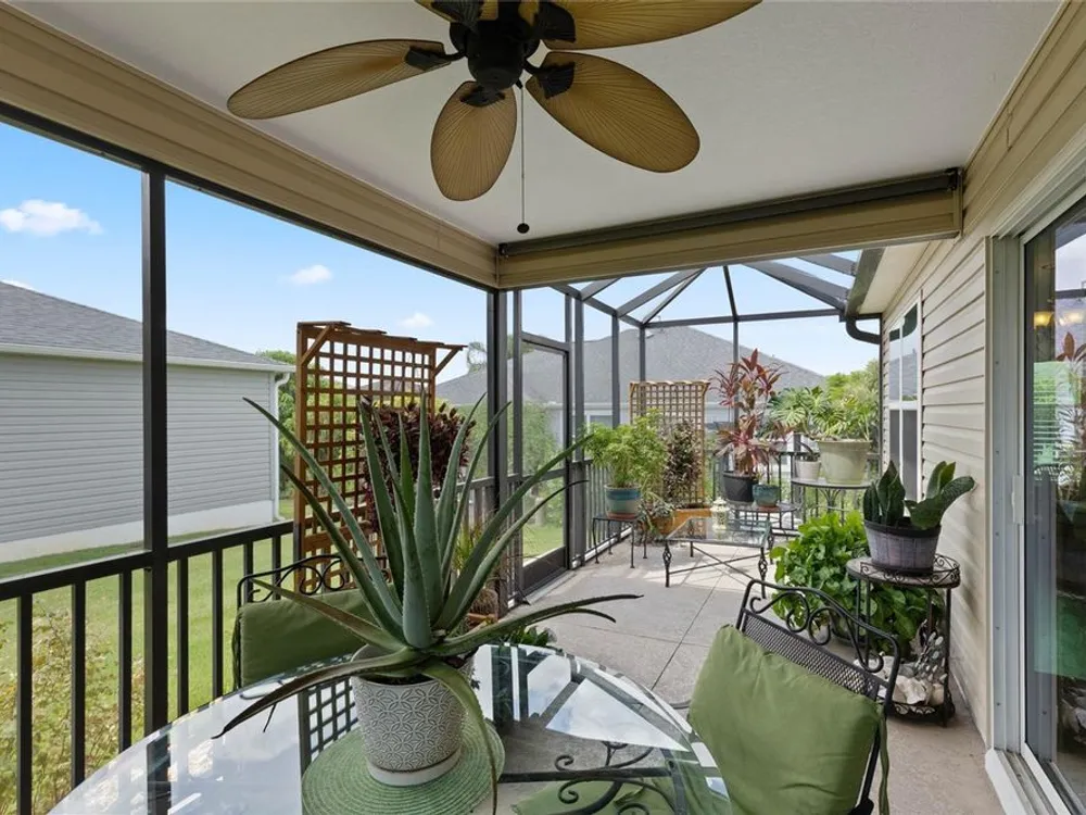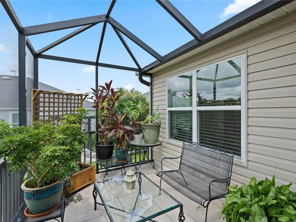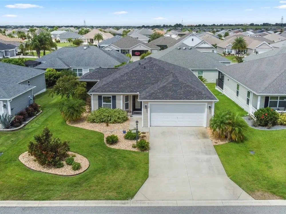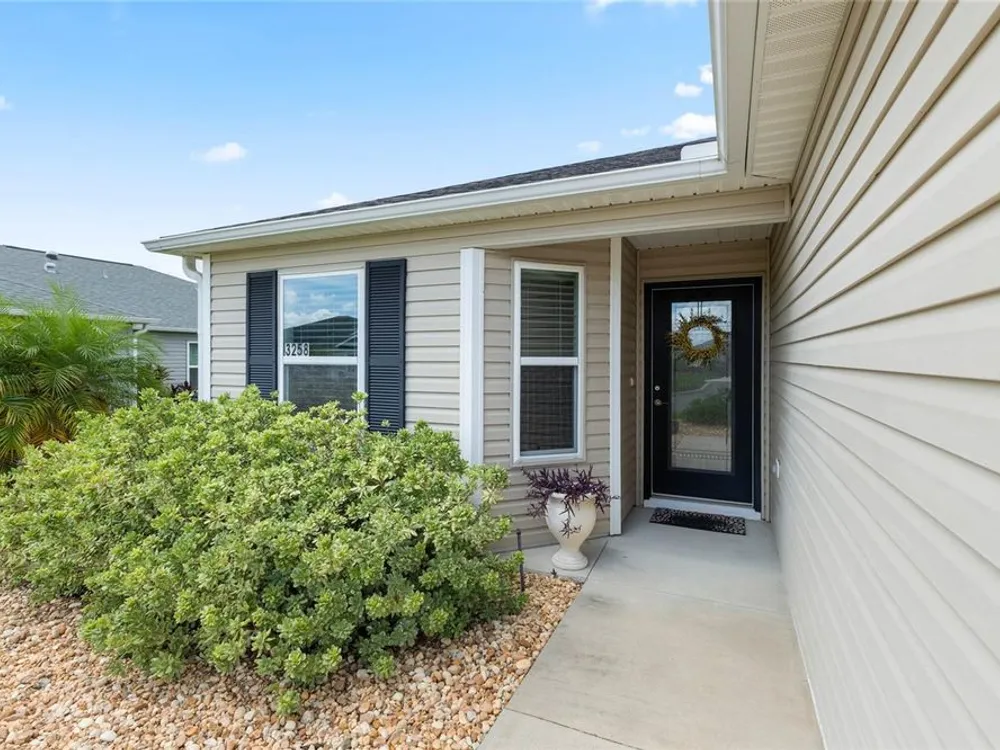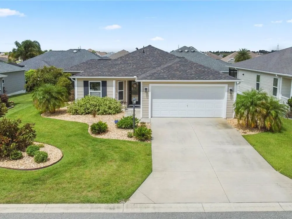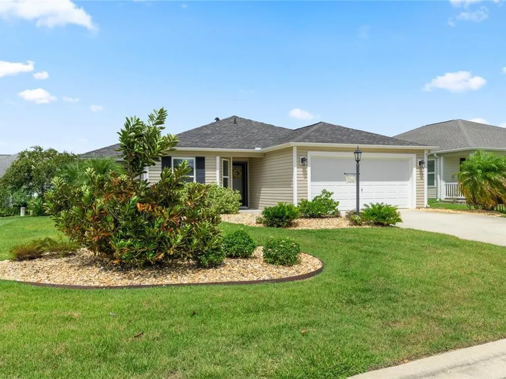 Welcome to this beautifully maintained 3 bedroom, 2 bath home located in the desirable Villages of Fruitland Park. The owner’s suite includes a walk-in closet complete with a closet system, en suite bath with double vanity separate from the toilet and shower area. This split bedroom plan provides flexibility with an attractive barn door which creates a private suite for your guests using the second bedroom and bath. The third bedroom/office is to the left of the foyer area. This open concept floor plan offers a spacious living/dining area and a modern kitchen with a pantry, more than ample cabinet space and intimate eat in area. Enjoy outdoor living with the extended birdcage perfect for relaxing and entertaining. This AT EASE model home had a roof installed in 2020, a sealed and painted garage floor, professional landscaping with irrigation and your choice of Xfinity or Spectrum as your internet provider. Conveniently located near shopping, centrally located between Brownwood and Sumter Landing - this move-in ready home offers comfort, style and a prime location. Taxes: Fire $233. Maintenance: $651. Bond Pmt: $1,651. Bond Balance: $18,900. Real Estate Taxes: $2,587. Golf cart available separately.