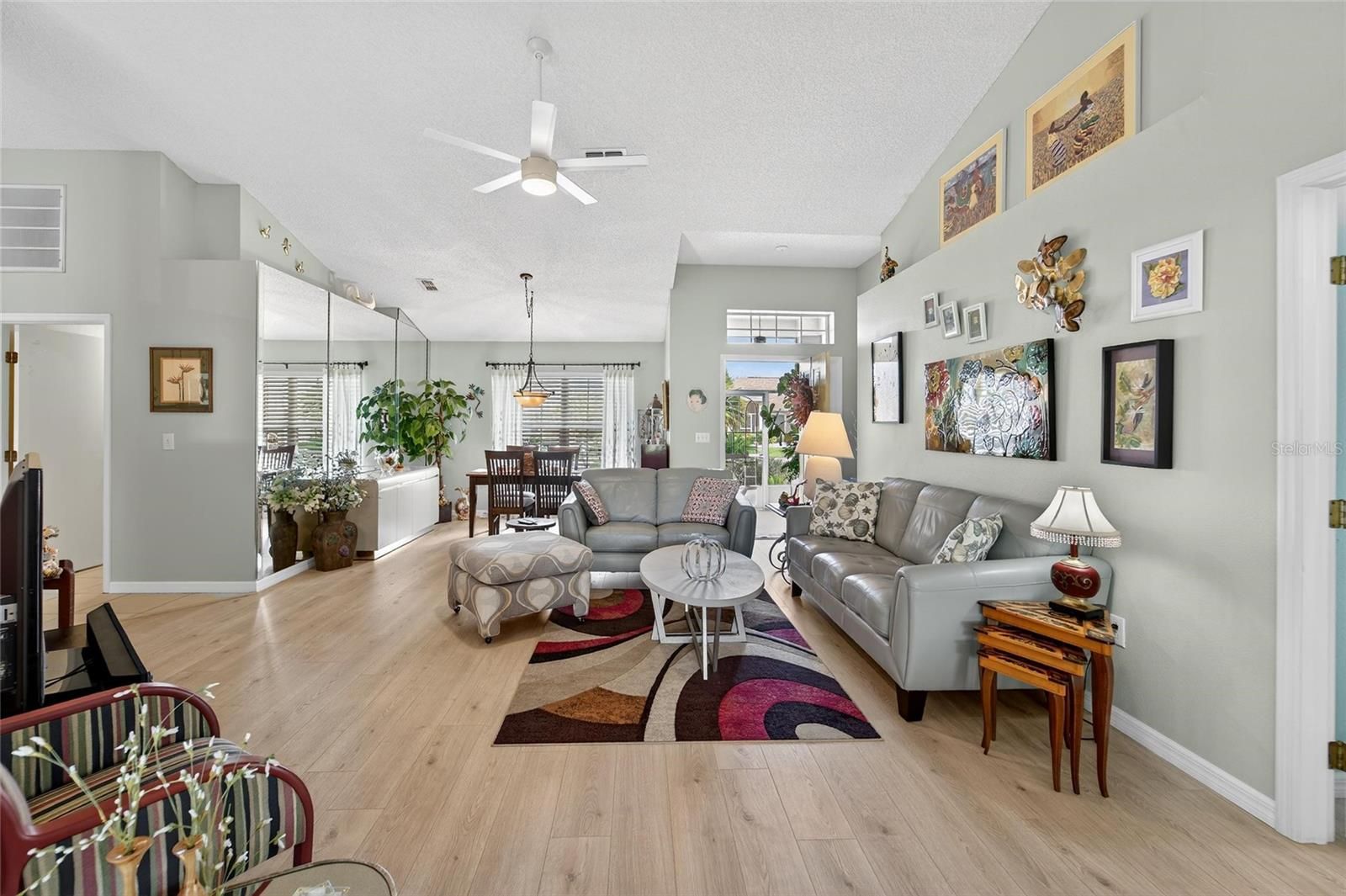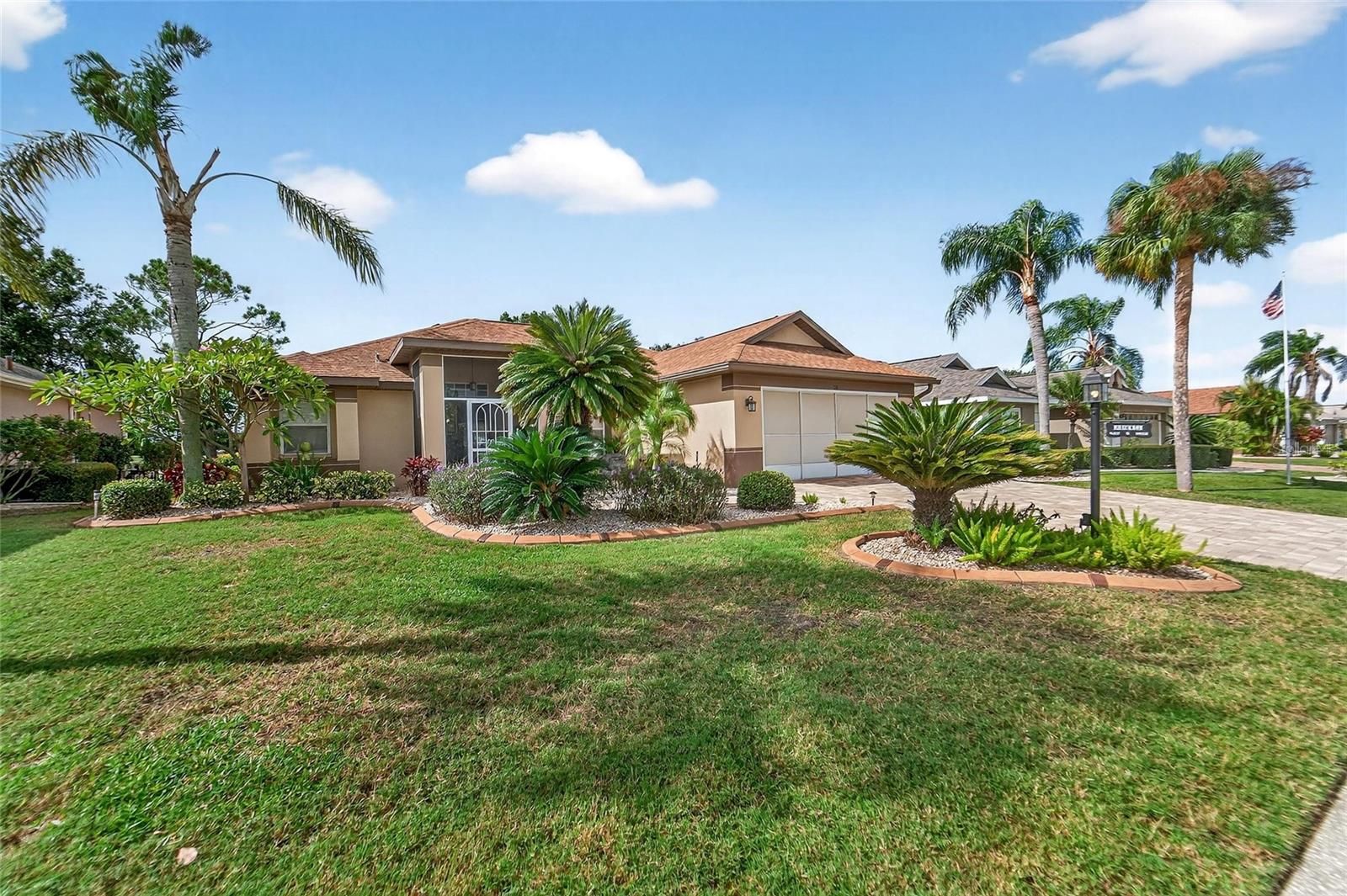 **HUGE PRICE IMPROVEMENT** Welcome to your dream home located in the vibrant 55+ community of Sun City Center, Florida! This exceptional two-bedroom, two-bath residence features a thoughtfully designed split layout, perfect for both relaxation and entertaining. As you approach the home, you’ll be greeted by a stunning paver driveway and a broad sidewalk that leads to a fully enclosed front porch, providing a serene space to enjoy the outdoors. The perimeter of the landscaping is elegantly enhanced with modern concrete edging, creating a polished and inviting curb appeal. Step inside to discover solid surface flooring throughout, seamlessly connecting the main living areas. The updated kitchen is a culinary delight, providing loads of storage space, showcasing stainless steel appliances, newer shaker-style cabinetry, and exquisite granite countertops. A cozy eat-in breakfast nook invites you to enjoy your morning coffee in comfort. The main rooms boast vaulted ceilings, adding an airy and spacious feel to the home. The primary bedroom is a true retreat, featuring vaulted ceiling and Walk-in closets and a beautifully remodeled en-suite bathroom complete with an expansive walk-in shower, perfect for unwinding after a long day. Venture outside to the lanai, which is mostly covered and adorned with vaulted ceilings and tile flooring. This tranquil space overlooks the number one hole of the Caloosa Country Club golf course, providing picturesque views and an ideal setting for entertaining or simply enjoying the Florida sunshine. Now it's time to sit back and relax, with the charming, secluded screened-in lanai that is under vaulted roof, perfectly shaded with the gorgeous greenery. Appreciate the breathtaking views, delightful scenery, wildlife, and the Florida Sunshine and breeze all from your own home! Sun City Center is an active 55+ community that offers wonderful amenities, including indoor/outdoor pools & spas, a well-equipped fitness center, library, a community hall, meeting rooms, arts/crafts, outdoor sports, golf, and more, all located within a short golf cart ride. Not only is Sun City Center a community where you can meet and make lifelong friends fast, it's also a short drive away from some of our nation's best-rated Gulf Beaches, Disney, MacDill Air Force Base, Orlando, Tampa, Sarasota, Clearwater, Saint Petersburg, etc. This one will not last long. Hurry up and book your exclusive showing.