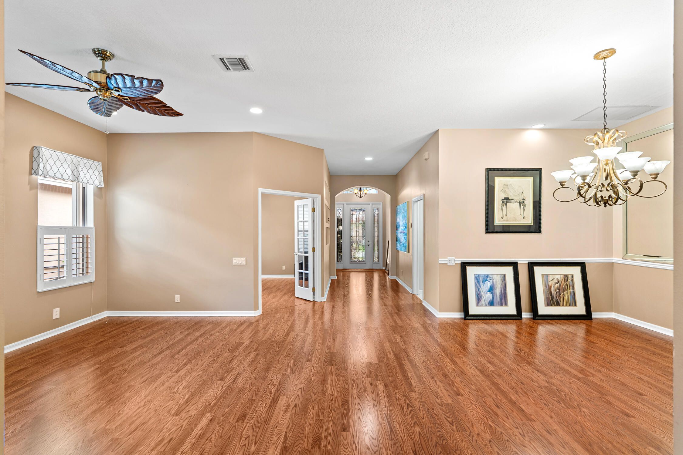 Welcome to your ideal 55+ lifestyle in Cascades! A screened entry with beveled glass front door opens to this beautiful home, featuring double French doors to the den with decorative drywall detail, a large island kitchen with stainless steel appliances and extra cabinetry, and a huge expanded patio for privacy and entertaining. The home has been recently replumbed and includes an efficient Trane HVAC system. Cascades offers a resort-style 55+ lifestyle with a 26,000 SF clubhouse including a ballroom, media room, 3 card rooms, billiards, craft center, and library. Enjoy resort-style pool and spa, fitness center, 10 lit Har-Tru tennis courts, 9-hole golf, shuffleboard, and bocce. The HOA fee covers yard care, irrigation maintenance, cable TV, 24-hour guard, and monitored home security, along with a wide variety of clubs and activities. Conveniently located near I-95, shopping, restaurants, and medical facilities, this home is perfect for those who want comfort, convenience, and an active lifestyle.