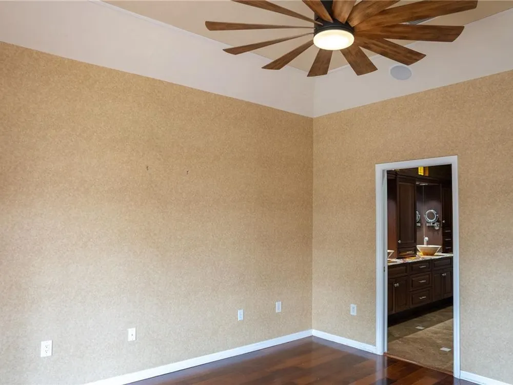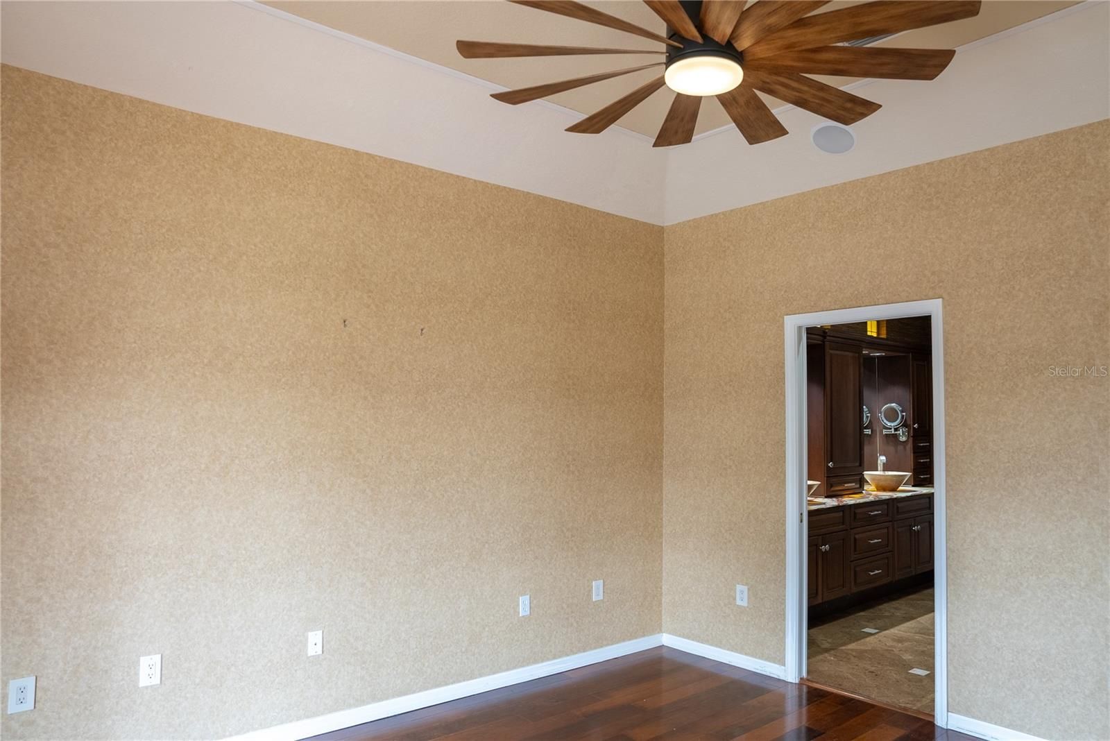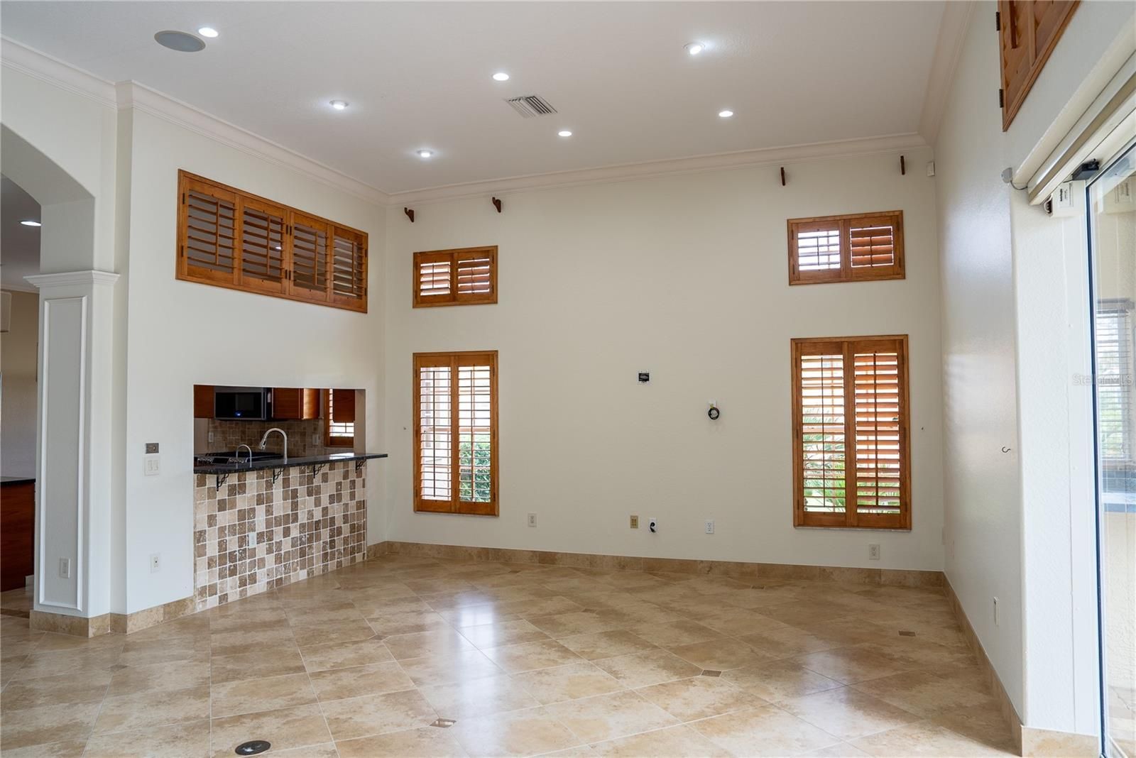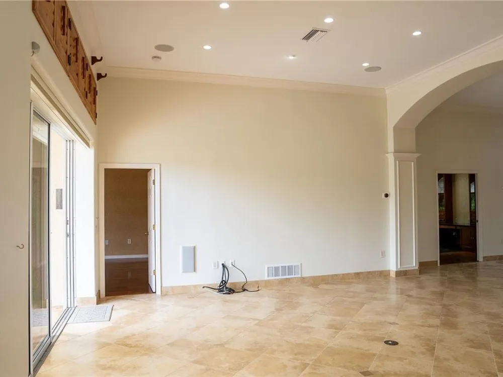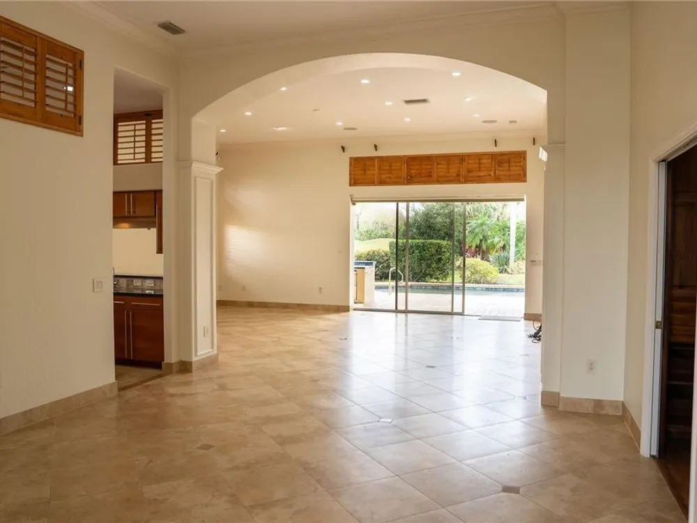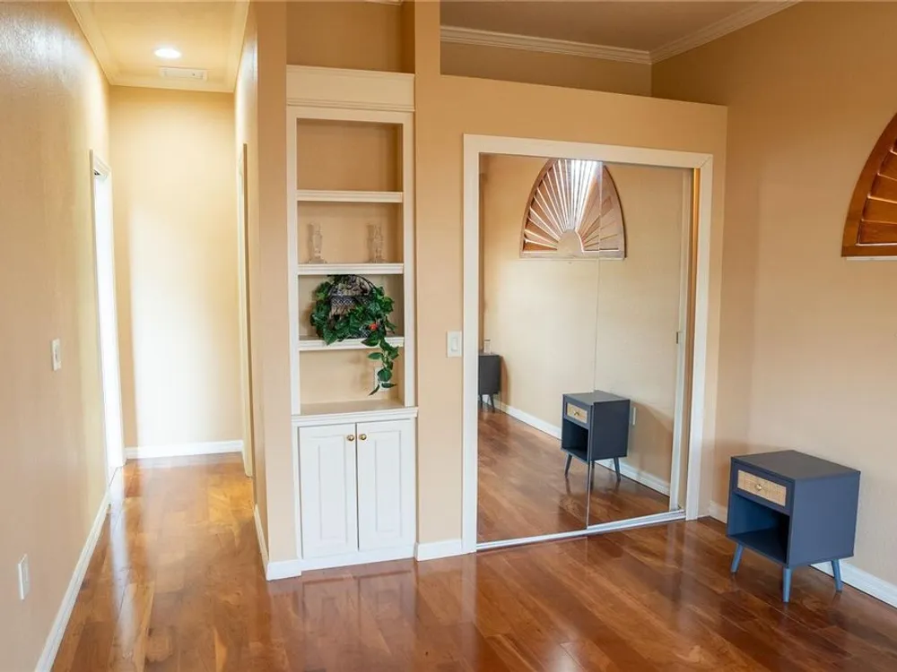 - Built-in Features, Ceiling Fan(s), Crown Molding, Eat-in Kitchen, High Ceilings, Solid Surface Counters, Solid-Wood Cabinets, Split Bedrooms, Stone Counters, Walk-In Closet(s), Window Treatments