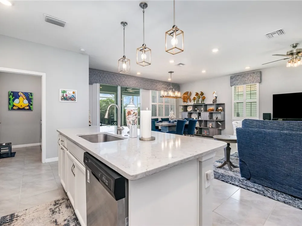 This Amazing Clifton model DR Horton Built home has all the bells and whistles. 2 bedrooms plus flex and 2 full baths, Waterfront, Pool home. Open floor plan. custom backsplash, soft close doors and slideouts on kitchen cabinets. quartz countertops in kitchen and baths. impact windows and doors plus screen doors on slider doors, plantation shutters throughout, plus window cornices installed in living room and guest bedroom. all custom wood built in's in all closets and pantry. Upgraded carpet in bedrooms, custom laundry room. Newer lighting throughout, beautiful enclosed pool and spa, with picture window. built in front patio. Generac whole house generator plus it also powers the pool and spa as well, Whole house surge protector, epoxy floor in garage, and shelving. furnishings negotiable. NO FLOOD INSURANCE required. Low HOA's includes Lawn Maintenance, Cable, Internet, Clubhouse with Heated Pool, Tennis, Pickleball and Fitness Center. This FRIENDLY Inviting community will make you feel right at home.