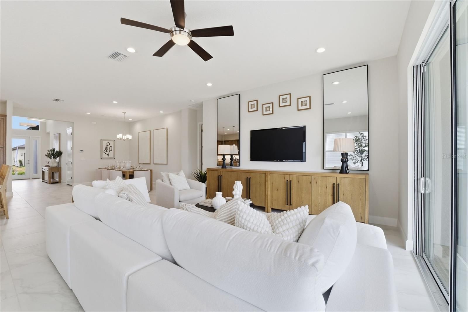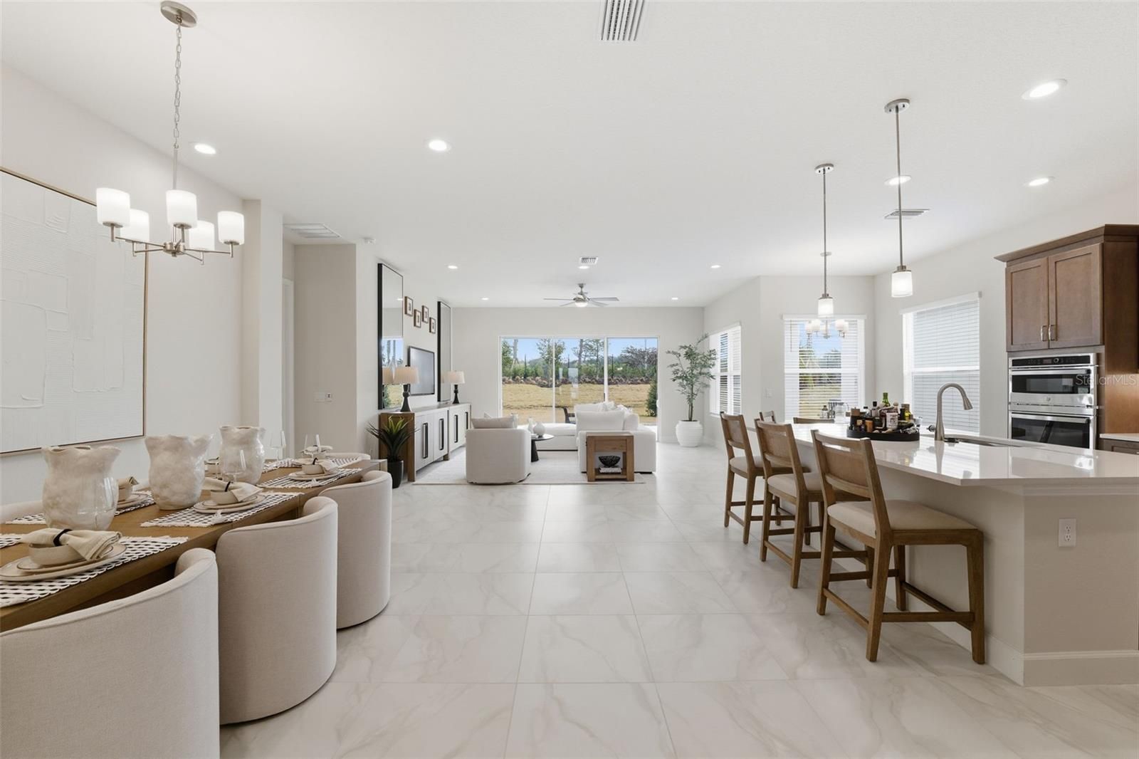New Construction | Fully Furnished Spec Home. Experience the pinnacle of 55+ resort style living at Valencia Ridge, a gated community in Wesley Chapel. This Claudia model perfectly balances sophistication with practicality, featuring an open-concept living and dining room layout with 3 spacious bedrooms, a versatile den, 3 full baths and a two car garage. The heart of the home is a chef’s kitchen, complete with a large island, gas range, stainless chimney hood, under-cabinet lighting, quartz countertops, stylish quartz backsplash and premium appliances. Every detail has been considered—including free furniture, recessed lighting, upscale flooring and faux-wood blinds to a fully equipped laundry room. Included in this homes is designer lighting and window treatments that serve as statement pieces that elevate the home's ambiance. An earth tone color scheme for the home is a versatile, nature-inspired palette—encompassing browns, tan and beige colors designed to create a warm, calming, and grounded atmosphere. This timeless design approach brings organic, muted hues and textures to enhance comfort and connectivity with nature throughout living spaces. The upgraded interior paint color emphasizes that the home has a custom, finished look. We frame these "inclusions" as high-value designer upgrades that provide a seamless, move-in-ready experience. Now featuring a $22,919 builder incentive already applied to the list price, this is a rare opportunity to own a professionally furnished home in the Gulf Coast’s premier active 55+ community. Move-in immediately and start enjoying our world-class amenities and social calendar today. Your best chapter starts here!