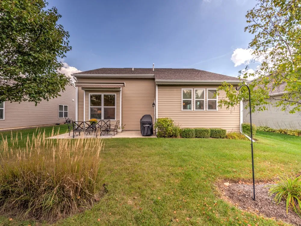 Live the Lifestyle You've Earned in the Grand Dominion 55+ Resort-Style Community. Welcome to this beautifully maintained and thoughtfully upgraded ranch home in the highly sought-after Grand Dominion active adult community. Designed for effortless living and peaceful enjoyment, this light-filled 2-bedroom + den, 2-bath home offers the perfect blend of comfort, style, and convenience. Step inside and be welcomed by an open, airy floor plan featuring beautiful hardwood floors throughout, recessed lighting, and custom window treatments that add a touch of elegance to every room. The east-west exposure fills the home with natural light all day long. The expanded primary suite is a true retreat, featuring a large walk-in closet with built-in organizers, a luxurious en-suite bath with a brand-new custom Kohler walk-in shower, and a serene view of your private patio-perfect for morning coffee or evening relaxation. The kitchen is bright and cheerful with white 42" cabinetry, newer pendant lighting above the central island ideal for entertaining family and friends. Step outside to your private patio with sunny western exposure, a lovely space to BBQ, dine alfresco, or unwind under the retractable sun setter awning. Additional highlights include: New AC 2025, Hot water heater 2024, customer Kohler walk-in shower 2024, newer washer and pendent lights, Furnace 2020. Enjoy all that Grand Dominion has to offer-resort-style amenities, walking trails, clubhouse activities, fitness center, indoor/outdoor pool, and a warm, welcoming community of active adults. This is more than just a home-it's a lifestyle. Schedule your private showing today and see why so many are choosing to call Grand Dominion home.