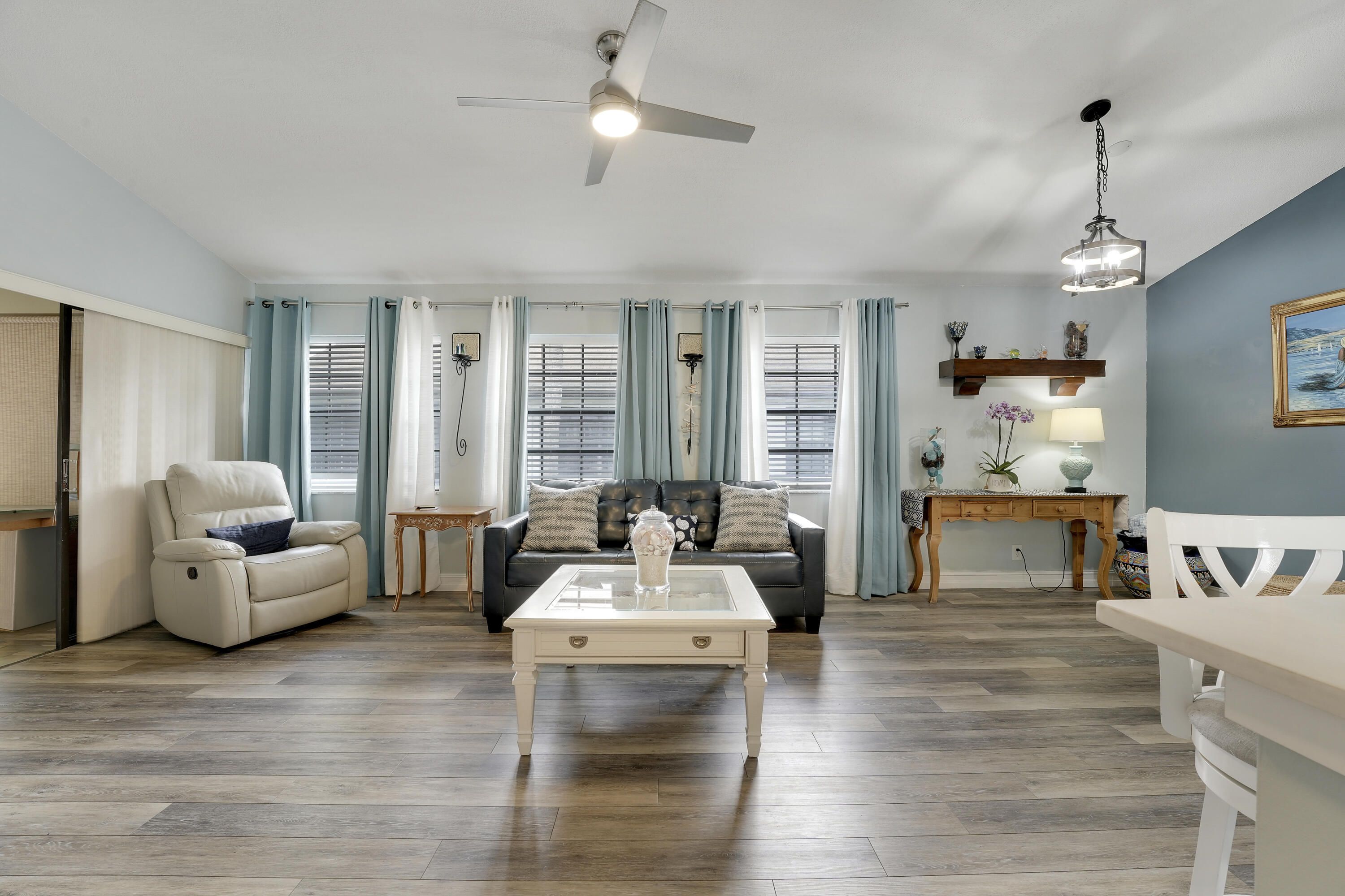Updated 2BR/2BA second-floor condo in a desirable 55+ Lake Worth community. Features vaulted ceilings, laminate wood flooring throughout, updated kitchen with modern cabinets and appliances, and a spacious living area filled with natural light. Enjoy a large screened lanai perfect for relaxing and taking in the Florida breeze or maintain under air for year round use. NEW AC 2023, NEW Roof 2024, Building Freshly painted 2025 HOA includes Water, Cable & Internet. Community Heated Salt Water Pool, Fitness room, Pickle Ball, Tennis & Numerous Clubs & Activities. Gas Grills also provided for your convenience at Picnic Area . Conveniently located near shopping, dining, medical facilities, and beaches.