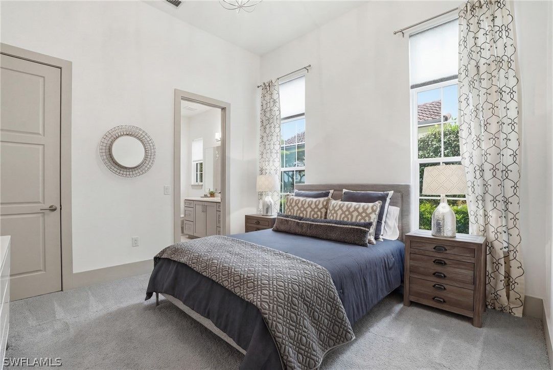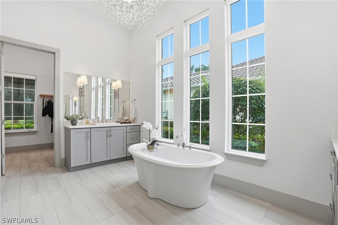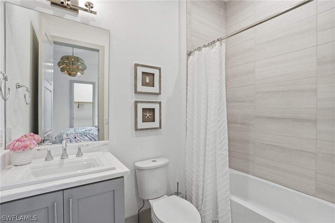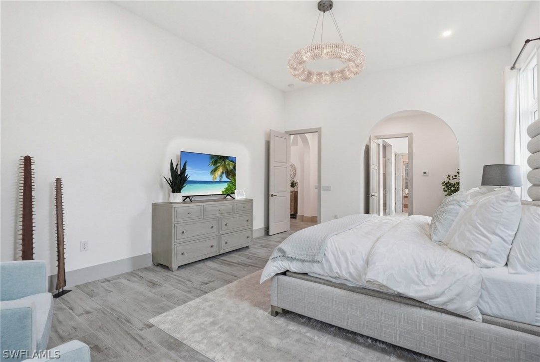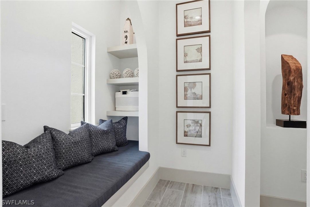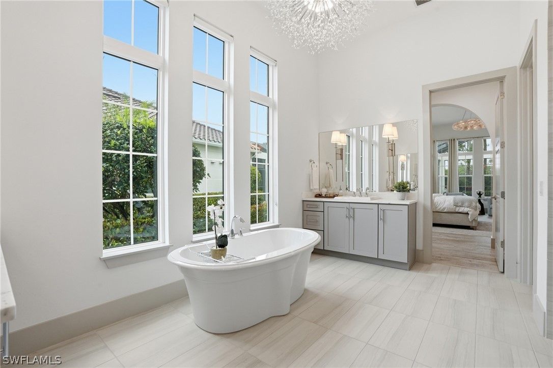 Stunning luxury coastal living in the highly sought-after Marsh Cove section of Fiddler’s Creek. Ideally located on Tavolara Lane and perfectly positioned to capture beautiful WATER and GOLF course views, this nearly 1/2-acre property blends sophisticated coastal style with quality craftsmanship and thoughtful design throughout. Offered turnkey, the home features over 3,500 square feet of living space with 4 bedrooms + den, 3 full baths, 1 powder room, and 1 pool bath. From the moment you arrive, grand arched entry doors set the tone for the coastal elegance found throughout. Inside, the light-filled great room showcases soaring vaulted ceilings with shiplap detailing, an accent wall, and a designer chandelier. From the charming built-in reading nook in the front hall to the custom window treatments and lighting throughout, every detail has been thoughtfully considered, creating a warm and inviting atmosphere. Beautiful wood-look tile flooring with rich grain runs throughout most of the home, offering the warmth of wood with effortless maintenance, while arched architectural openings add character and style. The chef’s kitchen is a true luxury upgrade, featuring commercial-grade appliances including a 48-inch range, custom hood, and oversized refrigerator. Calcutta quartz countertops, loads of white shaker cabinetry, and a large island complete this exceptional space. The main living areas overlook tranquil water and golf course views, bringing natural light and scenery into the heart of the home. The primary suite is a bright and airy retreat with a luxurious bath featuring a freestanding soaking tub, large glass shower, dual vanities with quartz countertops, a walk-in closet, and generous linen storage. Three additional guest suites are equally well-appointed, while the private den/office with barn doors includes a sleeper sofa, making it ideal for additional guests. Outdoor living is truly impressive. The expansive lanai overlooks peaceful water and golf course views and features a pool and spa with water feature, outdoor kitchen, and multiple seating and lounging areas—perfect for entertaining or relaxing in the Florida sunshine. A convenient pool bath allows easy access for guests without entering the home. Additional highlights include two new AC units, abundant storage throughout, and a spacious three-car garage. Fiddler’s Creek is an award-winning private community offering luxury residences and resort-style amenities set within a beautiful tropical landscape. The 54,000-square-foot Club & Spa features two on-site restaurants, pools, a fitness center, and tennis, pickleball, and bocce courts. Optional memberships for golf, beach, and boating are also available. Conveniently located just minutes from the beaches of Marco Island, 5th Avenue, and a variety of shopping and dining options.