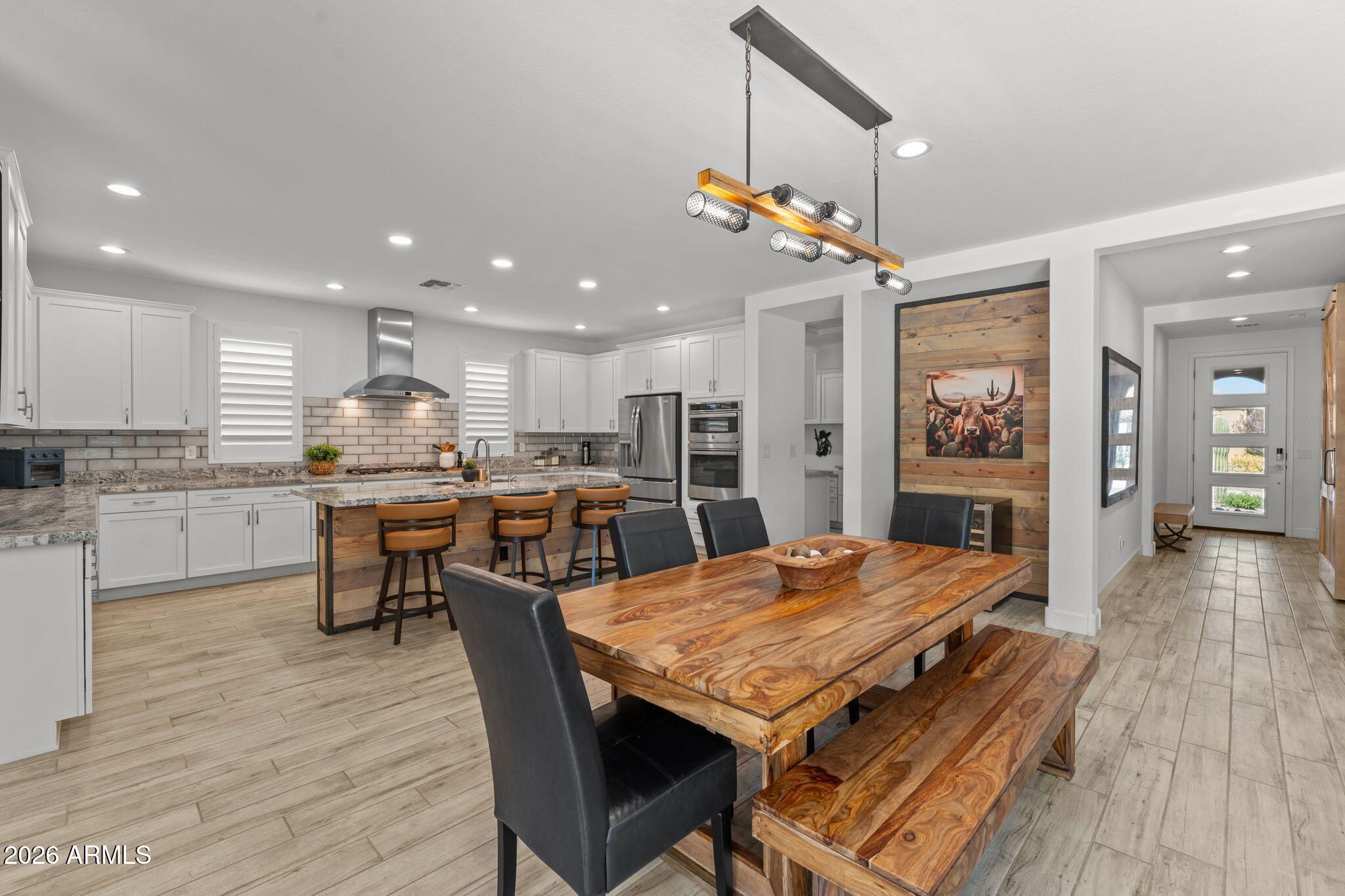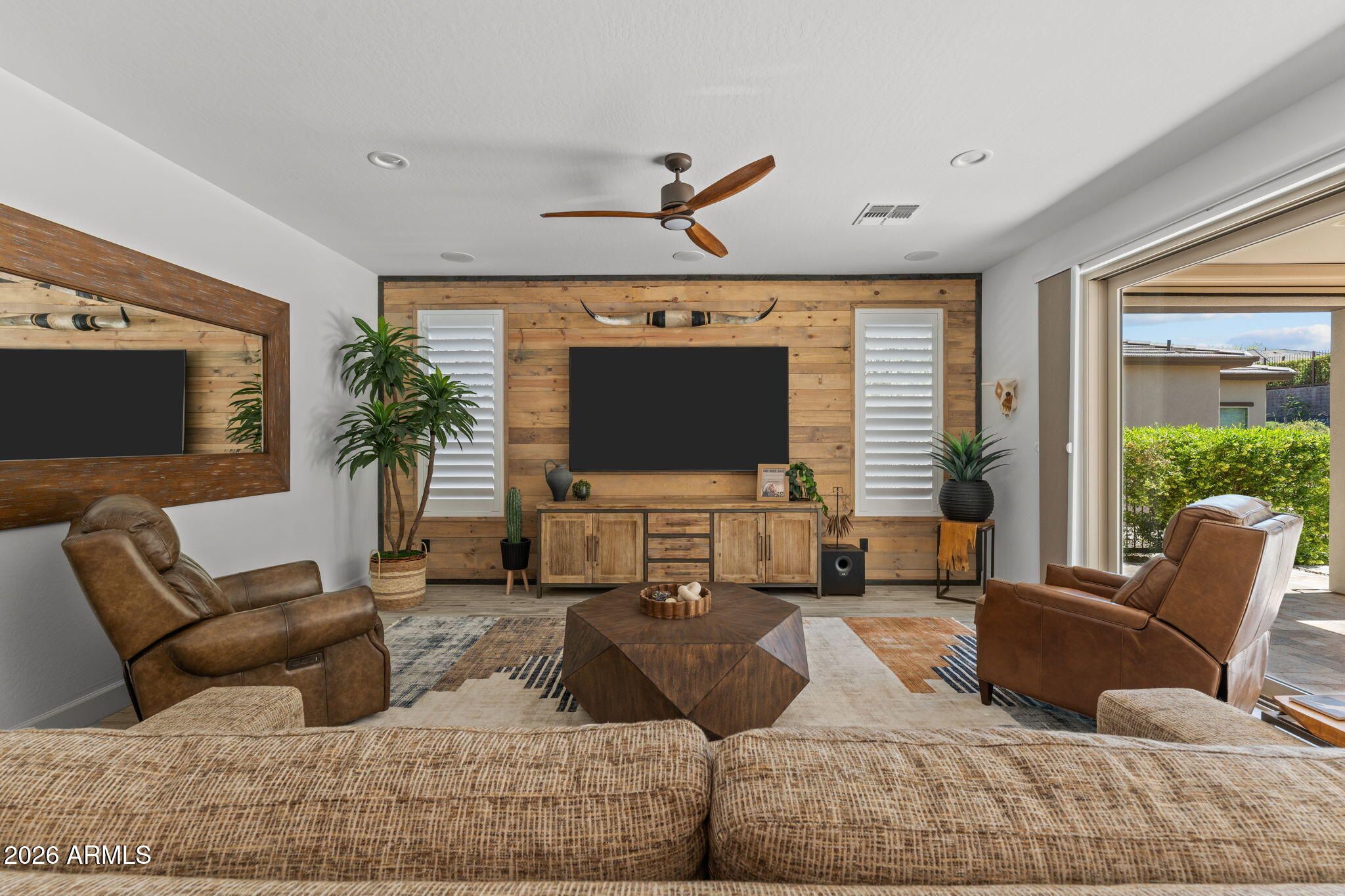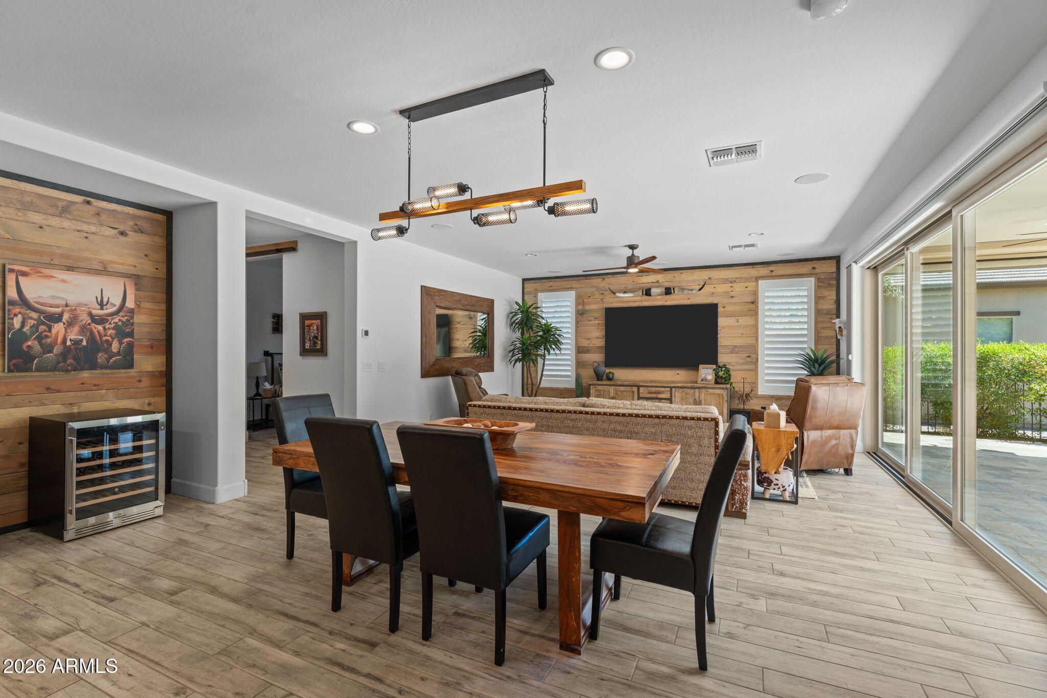 Experience effortless desert luxury in the highly sought-after Wickenburg Ranch community. This beautifully maintained home features fresh interior paint and a bright, open-concept design ideal for both everyday living and entertaining. The well-appointed kitchen flows seamlessly into the main living space, creating an inviting, upscale atmosphere. A versatile den/office offers flexibility as a third bedroom--perfect for hosting guests. Step outside to your private backyard retreat with a covered patio, built-in fire pit for cool Arizona evenings, and newly installed turf for easy, low-maintenance, lock-and-leave living. Enjoy resort-style amenities including golf, dining, fitness, pickleball, and a vibrant social lifestyle.