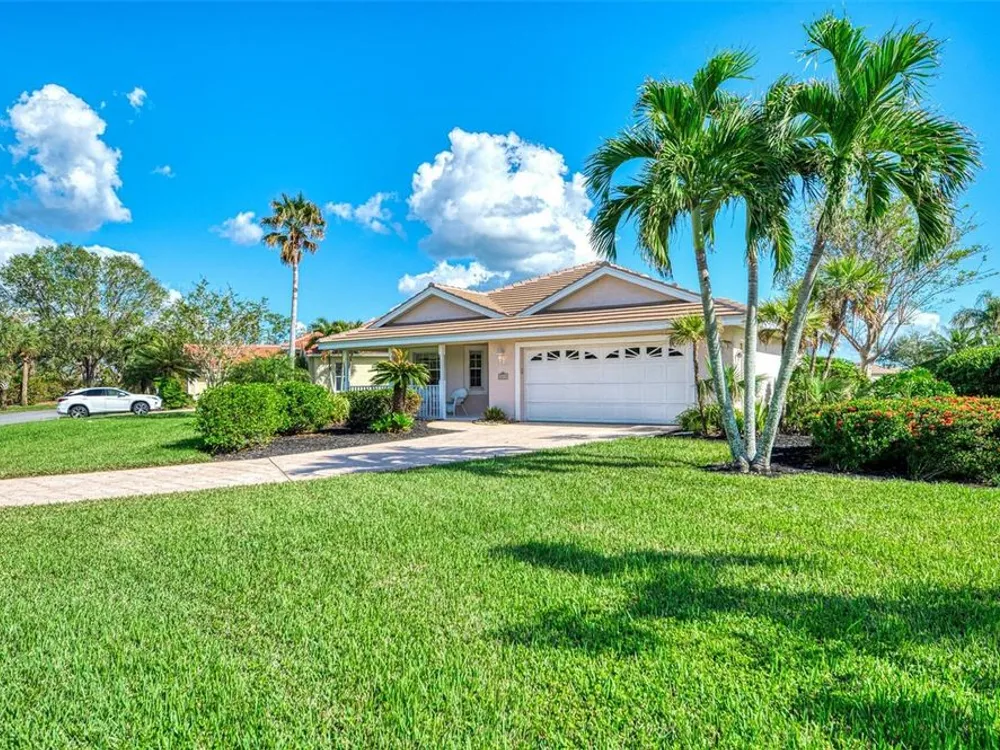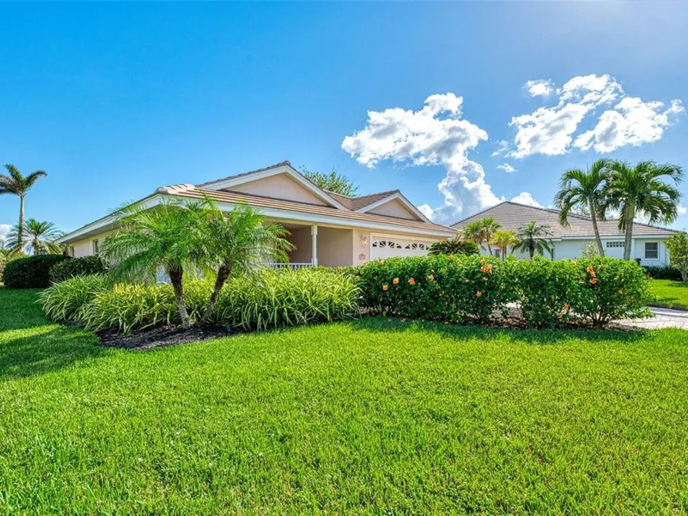 WHY RENT this Season when you can OWN and INVEST in your Florida Lifestyle! Discover lasting value and everyday enjoyment in this charming, thoughtfully designed 3-bedroom home in Bay Ridge, nestled within the desirable Riverwood community and located on one of the largest PREMIUM WATERFRONT LOTS! From the welcoming front porch to the expanded lanai, every space invites you to savor the beautiful Florida outdoors. Start your day with breakfast on the lanai overlooking serene pond views and wind down on the front porch capturing colorful sunsets in a tranquil setting. Inside, the bright open floor plan with high ceilings and abundant natural light creates a cheerful, relaxing atmosphere. The great room flows into a spacious kitchen with a dining nook perfectly positioned to enjoy pond views through a lovely bay window. With three bedrooms (one currently used as a den), two large bathrooms, updated vinyl flooring, and a 2022 tile roof, this home offers both comfort and quality. Additional updates include a newer stove and microwave (2021), refrigerator (2020), and dishwasher (2019), along with an extended 4ft 2-car garage and a decorative concrete driveway. Riverwood offers an exceptional resort-style lifestyle with access to the award-winning Riverwood Golf Course, activity center with lap and resort-style pools, fitness center, pickleball and tennis courts, dog parks, and more. For beach lovers, an exclusive private Riverwood Beach Club on Manasota Key is available (membership based on availability). Conveniently located near Gulf beaches, the Atlanta Braves spring training facility, Charlotte Harbor, and charming coastal towns like Punta Gorda, Englewood, and Boca Grande, this home delivers the perfect blend of Florida’s natural beauty and long-term value. Don’t just rent a vacation—OWN YOUR FLORIDA DREAM at a GREAT VALUE! Call today for a private showing and experience the lifestyle waiting for you in Riverwood.
