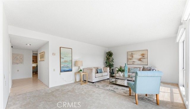 Price improvement! Motivated seller! Bring offers! It is all about the VIEW! Welcome home to a spacious two-bedroom La Brisa in the Seniors community of Laguna Woods (55+)! The expansive great room has panoramic views of city lights, hillsides, blue skies and trees. You are at the top of the hill enjoying the ocean breezes from Laguna Beach, minutes away. Only a few steps up to the front door. You are in a building that is nestled into the hillside. You have no steps from the parking area all the way through the park-like setting of trees and grass leading to the entrances of the buildings. Quiet area. As you enter into the unit, there are a few steps up, you can pick up your mail right outside. You can see the panoramic view as you enter into the great room. Picture windows and a sliding glass door maximizes the enjoyment of the view. No view obstructions as you step out to your private, full-length balcony. Sunshine during the day and starlight at night. Newer carpet and window coverings too! The kitchen could use updating. You enjoy views from the kitchen through the dining room and out to the hills. Plenty of cabinet and counterspace. The refrigerator is included. Very efficient use of space. The two bedrooms have view windows too! You can enjoy the trees in the front of the building and your privacy from your bedroom. There are mirrored closet doors throughout. The second bedroom has a built-in office that includes a Murphy bed for guests or a roommate. There is a newer stackable washer/dryer in the hallway. The primary bathroom has a walk-in shower and a low flush Toto toilet. The hallway bathroom has a tub/shower unit and a low-flush Toto toilet. It has been immaculately cleaned and is ready for you now! DO YOU LIKE TO GOLF? YOU CAN GOLF FOR $17 A ROUND. There are seven clubhouses, five Olympic-size pools with community spas, two golf courses, pickleball, tennis, archery, Bocce Ball, stables with horses you can rent, they offer riding lessons too. Maybe you are interested in the jewelry making classes, the sewing rooms, or the massive woodworking facility? Then there are the art classes, the over 220 clubs to join, the gardening plots, & billiard rooms. If you like live entertainment, check out the programs at Clubhouse 3 and the 800+ person theater. Call agent to get into the gate. HOA requires buyers to submit a tax return or prove they earn $60,000 yearly & assets worth at least $200,000. Buyer to pay $7500 HOA fee+ $400 to Admin fee.