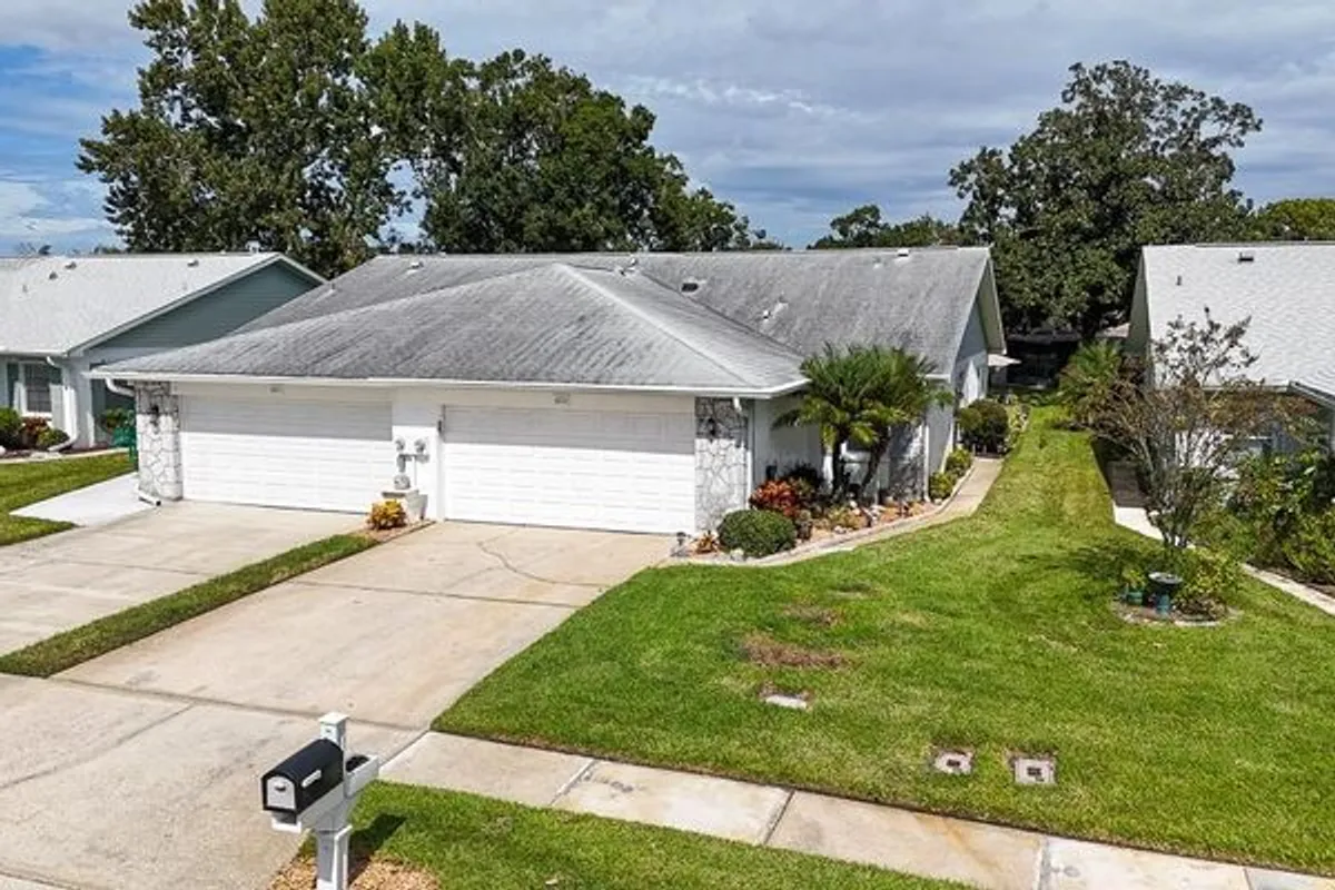 2 Bedroom, 2 Bath, 2 Car Garage End-Unit Villa in 55+ Highland Lakes Community! Welcome to this charming and beautifully updated villa offering exceptional curb appeal, modern updates, and a thoughtful blend of comfort and style. This bright, open home features vaulted ceilings, skylights, and a lockable storm door that brings in natural light while adding security. Updates include the electrical panel, roof and solar tube skylights (2014), water heater, water softener, windows and doors, lanai roof 2019, garage door opener, washer, dryer, and more! The stunning updated kitchen is a showstopper with solid wood cabinetry featuring 42” uppers, elegant glass-front accents (with optional wood inserts), a built-in wine rack, Silestone countertops, stainless steel appliances, undermount sink with high-mount faucet, can lighting, a skytube skylight, and a pass-through window to the dining area—perfect for entertaining! The spacious living and dining area offers rich hardwood cherry floors, crown molding with designer lighting, plant shelves, and custom architectural details that add warmth and character. The primary bedroom is generously sized, featuring hardwood floors, a walk-in closet, and an updated ensuite bath with a solid wood vanity topped with granite, modern lighting, framed mirror, newer toilet, and a glass-enclosed shower with elegant tile and decorative accents. The guest bedroom offers ample space with dual closets, one currently used as a convenient home office area, while the guest bath includes a solid wood vanity with granite counter, designer mirror, modern lighting, and crown molding. Enjoy year-round living in the glass-enclosed Florida room, expanding your space and opening to a rear pavered patio ideal for outdoor cooking, dining, or relaxing in privacy. Additional features include an indoor laundry closet with cabinetry, a renovated garage with pull-down attic access, and abundant storage throughout. Located in the desirable Highland Lakes 55+ community, this home welcomes one pet and offers low-maintenance living with fees covering lawn care, sprinklers, and irrigation water. Basic cable and internet (with two boxes) are available for just $16! Highland Lakes includes the following: Unlimited free golf on our three 9-hole executive golf courses named red, white, and blue. Outdoor clubhouse activities include tennis, pickleball, Bocce, shuffleboard courts, olympic size geothermal heated pool, and spa. The clubhouse has a library, kitchen, gathering room, cards and games, billiards, arts and crafts including woodworking, ceramics, painting, stained glass working, and more. Social activities include almost 100 clubs or groups, activities committee, casual parties, large dinner/dances, shows, and Saturday breakfasts. The rustic lakeside Lodge has a large multi-purpose room with beautiful hardwood floors, stone fireplace, a service kitchen, a panoramic view of Lake Tarpon, geothermal-heated pool and pool deck, a nearby certified butterfly garden, patio, picnic tables and grills as well as a horseshoe pitching pit. RV and boat parking in the RV/Boat Lot is included in the fees. Lake Tarpon is accessible via the boat ramp and there are two pontoon boats available for resident use/activities. This is a great Palm Harbor location served by top schools and is conveniently located near Tampa, St. Petersburg, Tampa International Airport, sporting events, beaches, medical centers, theaters, shopping, dining, and more!