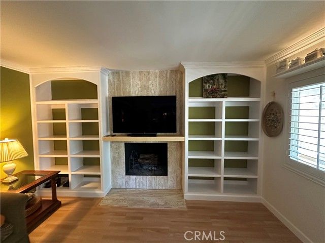 Welcome home to this Upgraded Move-in ready beauty. This Condo is a La Brisa Model in beautiful Laguna Woods within the Third Mutual Group of Homes. The La Brisa Model features 1,145 Square Feet with 2 Bedrooms, 2 Bathrooms and an open floorplan. The Kitchen features Natural Maple Cabinets, Quartz Counters, Separate glass Cooktop, built-in Microwave, and Slide in Oven, and is bright and very light with both recessed and under cabinet lighting. The Flooring is a light wood look vinyl throughout the home. The Living Room Features a floor to ceiling stone faced Fireplace with Custom bookcases on each side. The ceiling has been scraped and features crown molding. The Patio has been built in and provides a wonderful place to enjoy morning coffee and a good book in the afternoon. The bathrooms have been remodeled to include new vanities custom floors, a clawfoot tub and a floor to ceiling tiled shower in the primary. The Bedrooms are oversized and feature the same type of flooring as the other areas of the condo. All the windows have been upgraded to dual-pained glass. The unit also has a full-sized Washer and Dryer. The location of this unit is in a quiet and peaceful area of Laguna Woods with views of the nearby hills and convenient carport parking close by. Laguna Woods is a 55+ gua