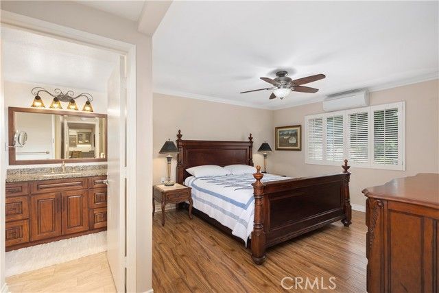 This two-bedroom, two-bathroom condo offers approximately 1,077 square feet of living space. The single-level home is situated within the Laguna Woods 55+ gated community and features the Casa Vista model(lower level).The remodeled kitchen showcases updated finishes and fixtures, providing a functional and modern cooking space. Laminate flooring flows throughout the home. The water heater is newer. Two AC split units have been included for your comfort. The upgraded bathrooms incorporate stylish elements, enhancing the overall comfort and convenience of the home.From the property, residents can enjoy a view of the surrounding hills, offering a tranquil and scenic outlook. Additionally this home is located towards the end of a cul-de-sac. The well-maintained community amenities and secure gated environment contribute to a comfortable and carefree lifestyle. Amenities include: 6 clubhouses, 5 swimming pools, Performing Arts Center, fitness centers, tennis, bocce ball, pickle ball, art(pottery, photography, glass, lapidary, jewelry, painting) and so much more!