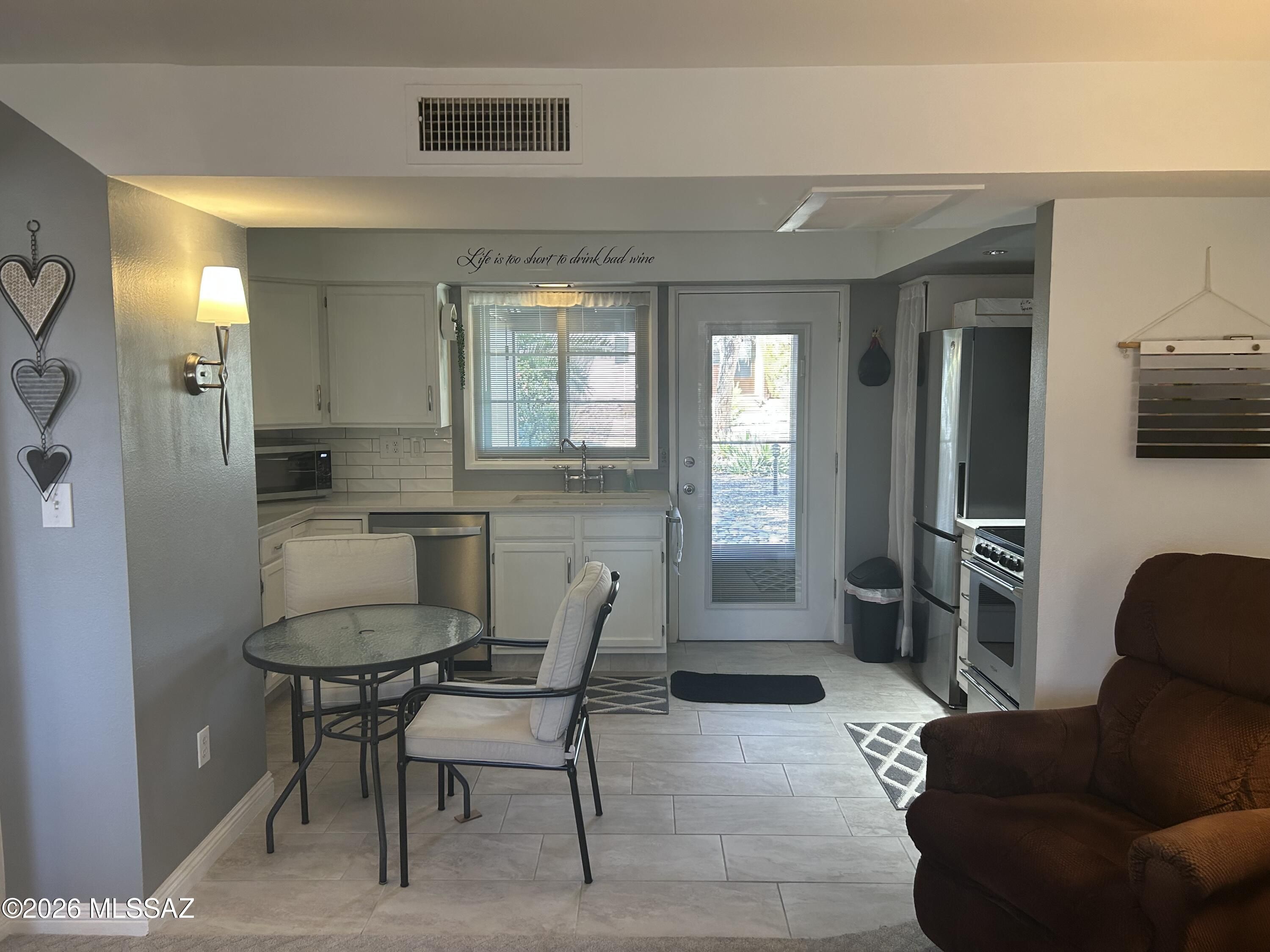 This is one classy villa! So many beautiful upgrades to see which includes stainless steel appliances, including a dishwasher, Anderson windows (except for bedroom), 2 new doors, beautiful tile work on the walls in the kitchen and bathroom, designer carpeting and more. Outdoor shed has been updated to include water & electric for new washer and dryer unit. This is low maintenance living. HOA takes care of all the big ticket items including HVAC, roof, hot water heater, painting outside and all the landscaping & pools. HOA also covers water, sewer and trash. Centrally located so you can walk to restaurants and more.