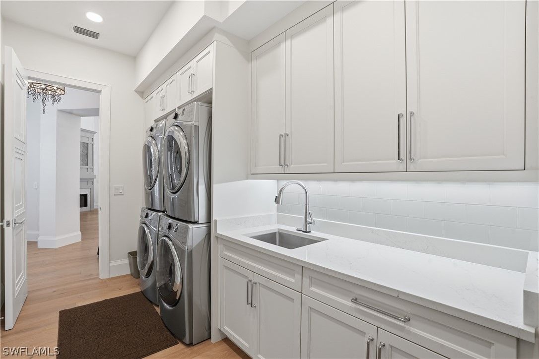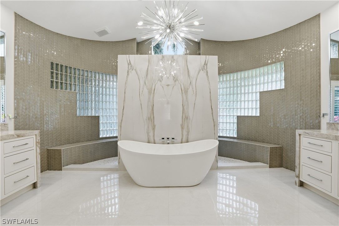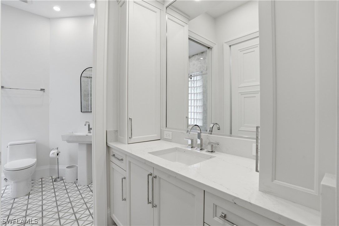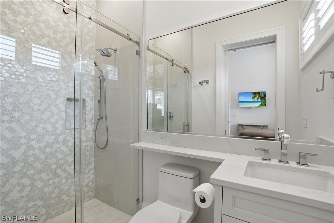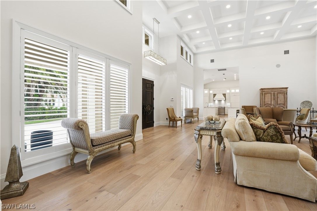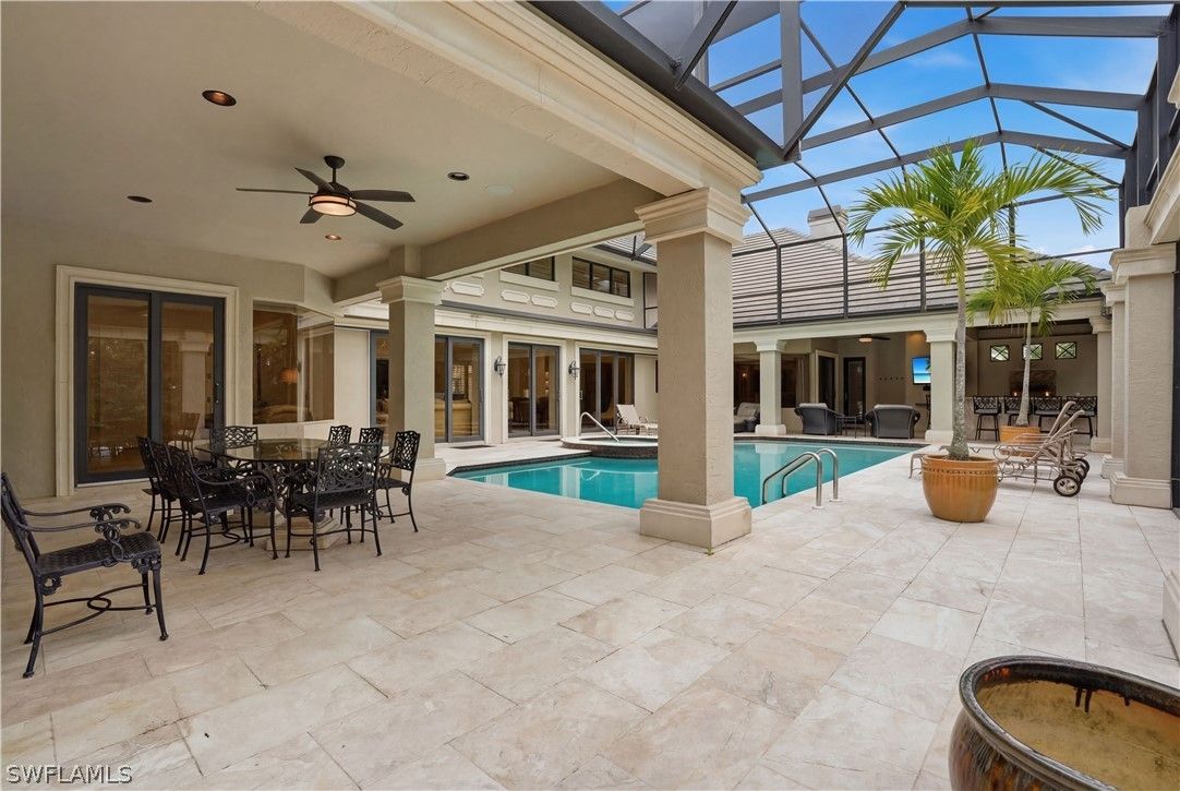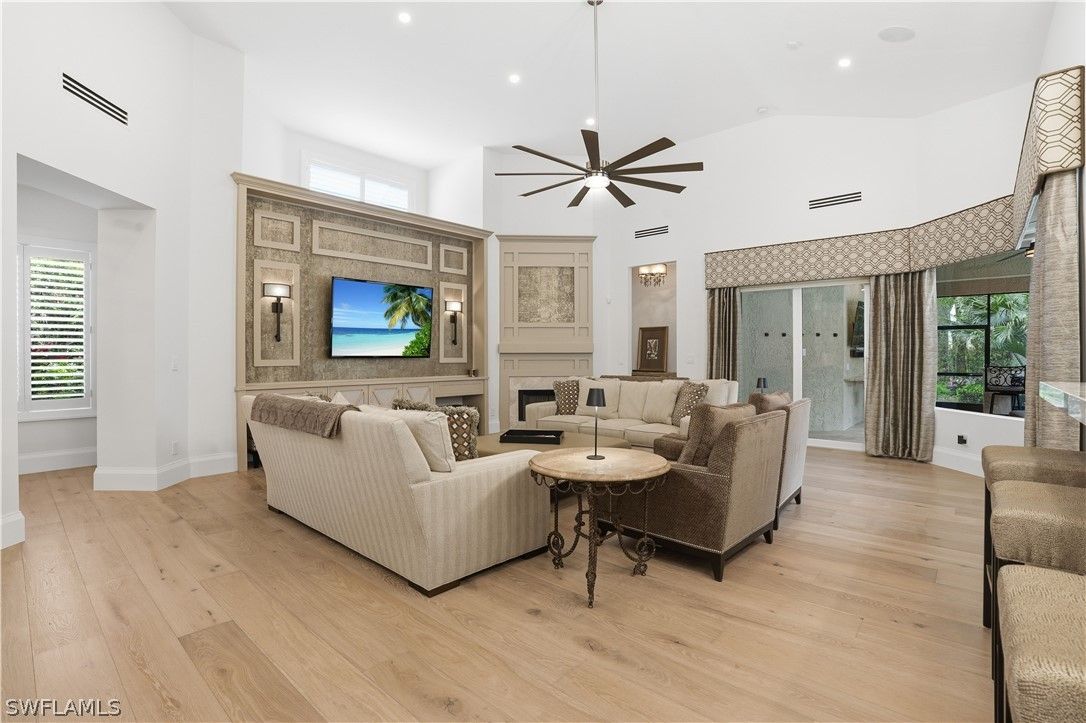 Tucked away on a quiet cul-de-sac in prestigious Bay Colony Shores, this extensively renovated estate sits on an over- sized .39-acre homesite with coveted south eastern exposure and offers an exceptional blend of modern luxury and timeless coastal elegance. This renovated the residence showcases impeccable craftsmanship including French oak flooring throughout the main living areas, marble bathroom floors, all new doors, baseboards, hardware, and full hurricane impact windows and doors. The heart of the home is the spectacular chef’s kitchen featuring dramatic Taj Mahal quartzite double islands, custom cabinetry, built-in banquette seating, a Miele built-in coffee system, water filtration system at kitchen sink, Thermador under-counter microwave, Thermador Refrigerator and separate Freezer. Miele dishwashers, and a Mercury induction cooktop. An impressive separate bar area is designed for entertaining with its own dishwasher, sink, wine cooler, ice maker beverage refrigerator, and abundant storage. Offering five spacious ensuite bedrooms plus an additional powder bath, every bathroom has been beautifully renovated with luxurious marble finishes. The fifth ensuite bedroom also functions as a convenient pool bath. The primary suite is a private retreat featuring a separate sitting area, a dramatic dual-sided fireplace shared with a private office/lounge with beverage refrigerator, and a spa-inspired bath complete with Taj Mahal countertops, a large walk-through shower with multiple shower heads and body sprays, dual bench seating, extensive custom cabinetry, soaking tub, and separate water closet with additional built in cabnitry. Designed for both comfort and entertaining, the home features soaring ceilings that create the presence of a two-story residence and a welcoming family room with fireplace. Outdoor living is equally impressive with a resort-style pool and spa, outdoor kitchen with built-in grill and bar, and expansive entertaining areas overlooking the lush oversized lot. Residents of Bay Colony Shores enjoy an unparalleled amenity package including a private clubhouse offering both formal and casual dining, a state-of-the-art fitness center, and tennis and pickleball facilities. Ownership also includes exclusive access to the renowned Bay Colony Beach Club, where residents enjoy attended beach service, elegant beachfront dining, and sunset cocktails along the Gulf of Mexico. Optional membership opportunities are available at the Bay Colony Golf Club as well as Pelican Bay’s world-class golf offerings. Perfectly positioned just minutes from Waterside Shops, Artis—Naples, Mercato, and the fine dining and boutiques of 5th Avenue South, this exceptional property represents the very best of the Naples luxury lifestyle.