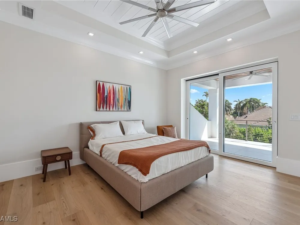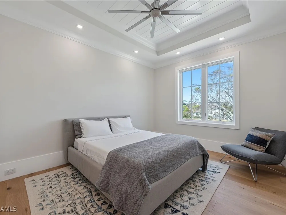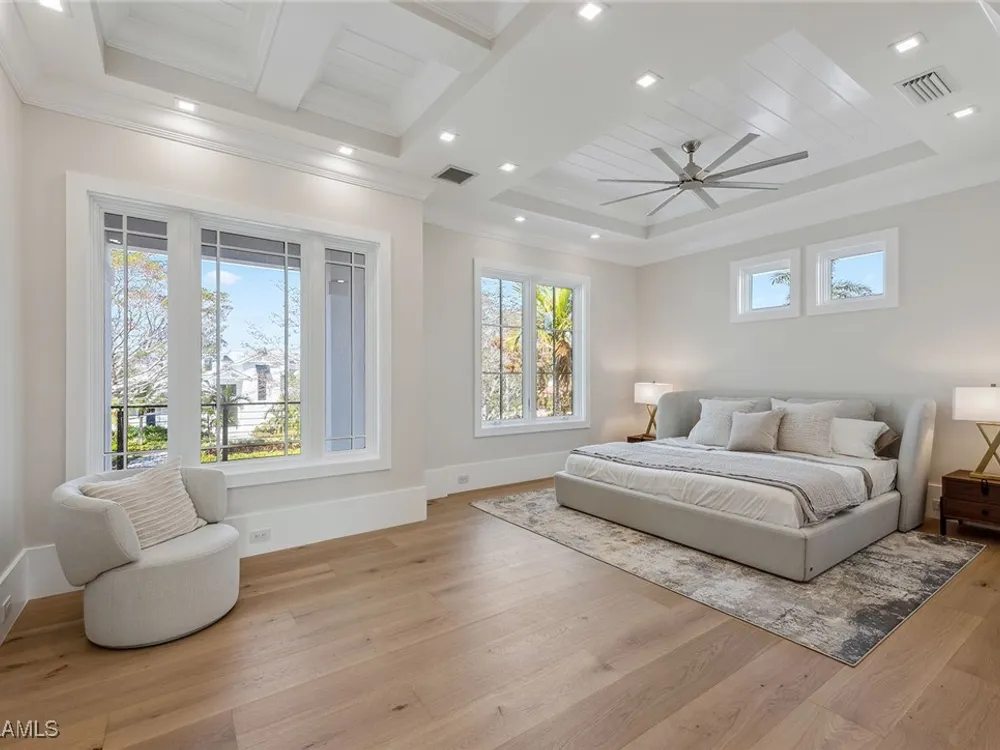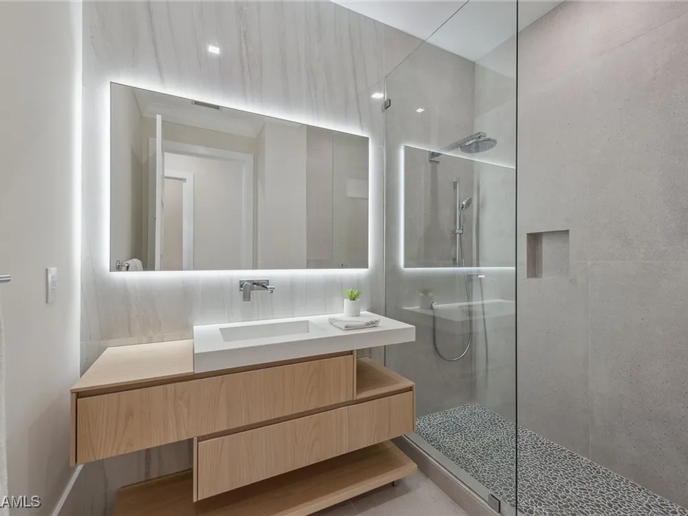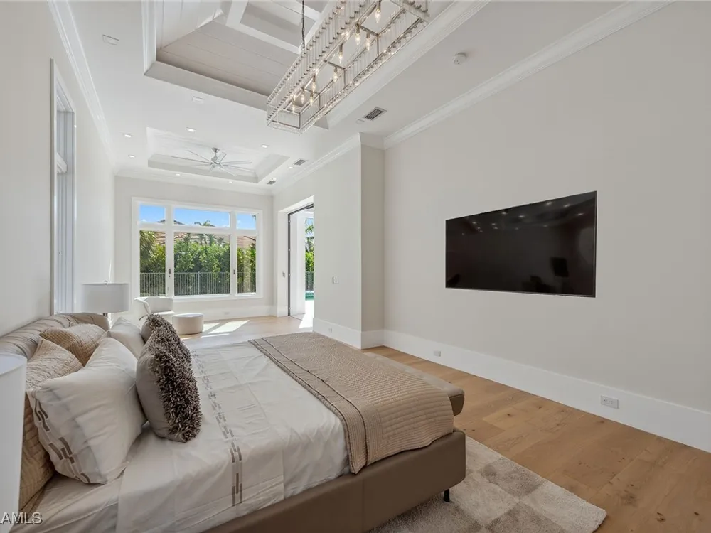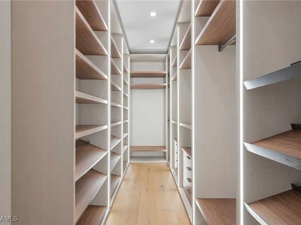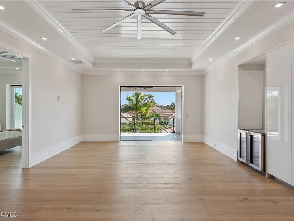 Designed by JMDG Architecture, this luxurious home offers a seamless blend of elegance and function. The kitchen, crafted in Italy by Idea Group, features partially translucent, highest-grade quartz countertops and premium Wolf and Sub-Zero appliances, including a double oven and dishwasher. A spacious walk-in pantry adds convenience. The home's finishes, including those in the baths, are from the renowned brand Porcelanosa, showcasing sophistication in every detail. With five bedrooms, a den and 5.5 uniquely styled baths, this home offers ample space and style. Rolf Benz indoor furniture and Restoration Hardware light fixtures enhance the contemporary design, while all Anderson windows, sliders and a pivot front door add to the home's sleek appeal. Outside, enjoy the poolside fire and water feature, complete with electric hurricane shutters and rolldown screens that provide privacy or keep out bugs. The three-car garage has room for up to three car lifts. A built-in wine cooler, 1,000-gallon propane tank and Pentair water filtration system ensure comfort throughout.