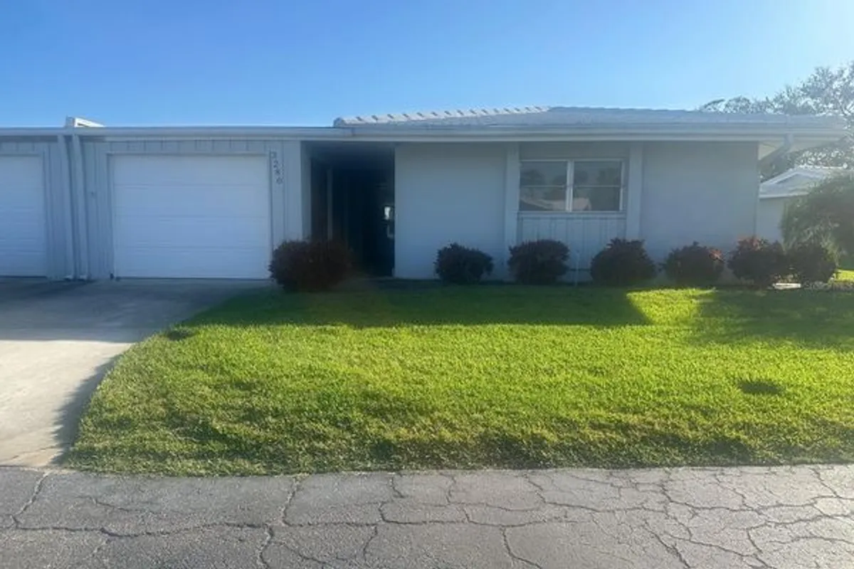 **Lowest listing in community** Recently reduced & partially updated unit offering new lower monthly association fees. Welcome to your dream retreat! Excellent price for your money! This beautifully updated one-story villa is nestled in a serene 55+ community, offering the perfect blend of comfort and convenience. As you step inside, you'll be greeted by a bright and airy open floor plan, highlighted by stunning new waterproof laminate flooring that flows seamlessly throughout the main living areas. Freshly painted interior and new carpets in rooms. The heart of the home is undoubtedly the brand-new kitchen and appliances. It boasts sleek countertops, contemporary cabinetry, and stainless steel appliances. Partially updated baths and an oversized lanai are just some of the great features this corner unit offers. Peaceful and well kept community easy to see! May have pets under 20 lbs***